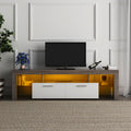 20 Minutes Quick Assembly Brown Simple Modern Tv Stand With The Toughened Glass Shelf Floor Cabinet Floor Tv Wall Cabinet Brown Whitetv Bracket With Led Color Changing Lights For Living Room Brown White Primary Living Space 60 69 Inches 60 69 Inches
