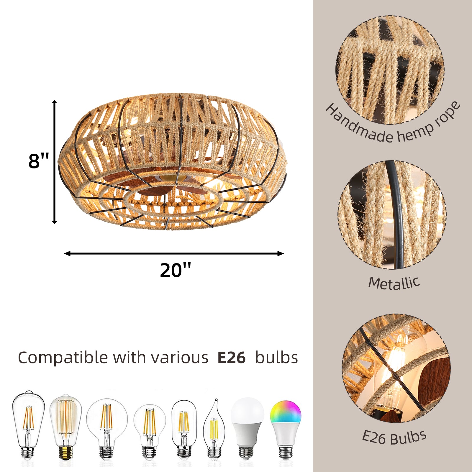 20" Rustic Style Ceiling Fan With Lights Note:No On Bulbs Black Rustic Wicker