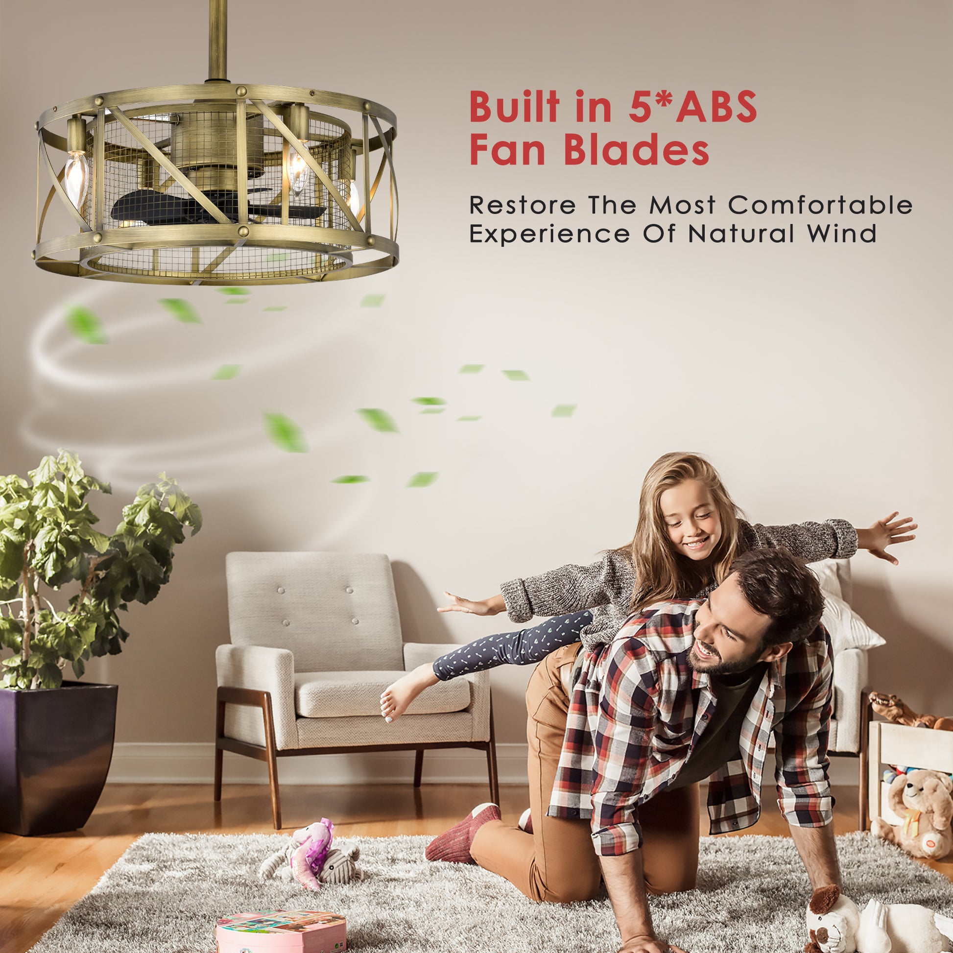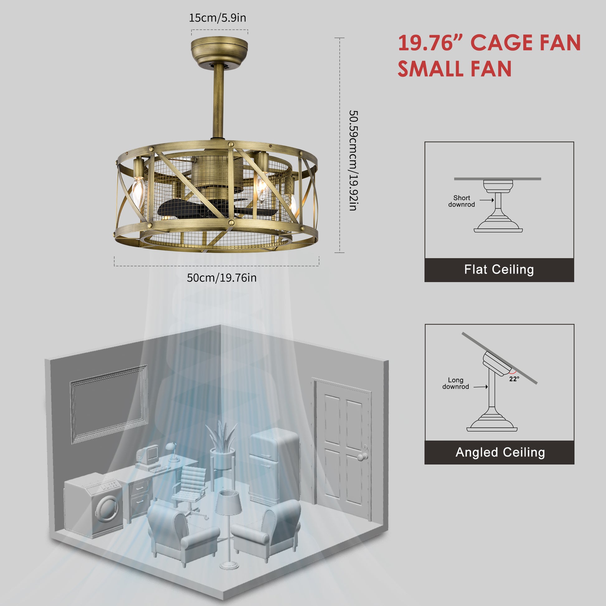 20'' Small Size Ceiling Fan With Kit ,5 Abs Blades Antique Brown Decorate Ceiling Fan Light With Remote Control For Bedroom Antique Brown Abs Metal