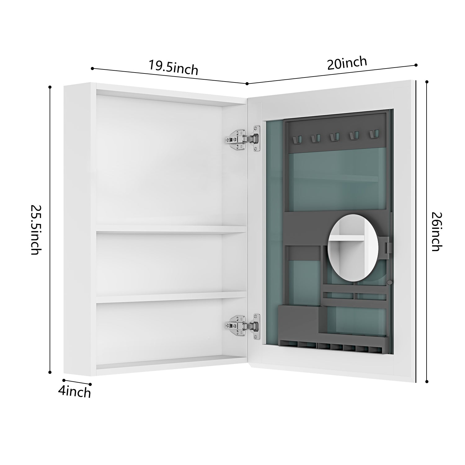 20'' W X 26'' H Bathroom Mirror Medicine Cabinet Wooden Door Medicine Cabinets For Bathroom, Wall Mounted Recessed Or Surface, Bathroom Mirror With Storage, Right Opening Door White Engineered Wood