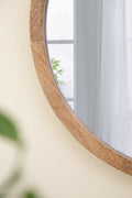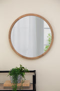 20" X 20" Circle Wall Mirror With Wooden Frame, Wall Mirror For Living Room, Dining Room, Foyer, Bathroom, Office Brown Wood Glass