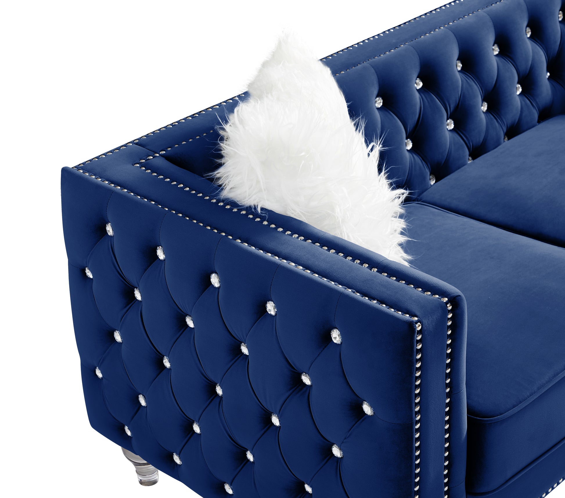 2066 Double Sofa Navy Blue Seat Armrest Navy Blue Velvet
