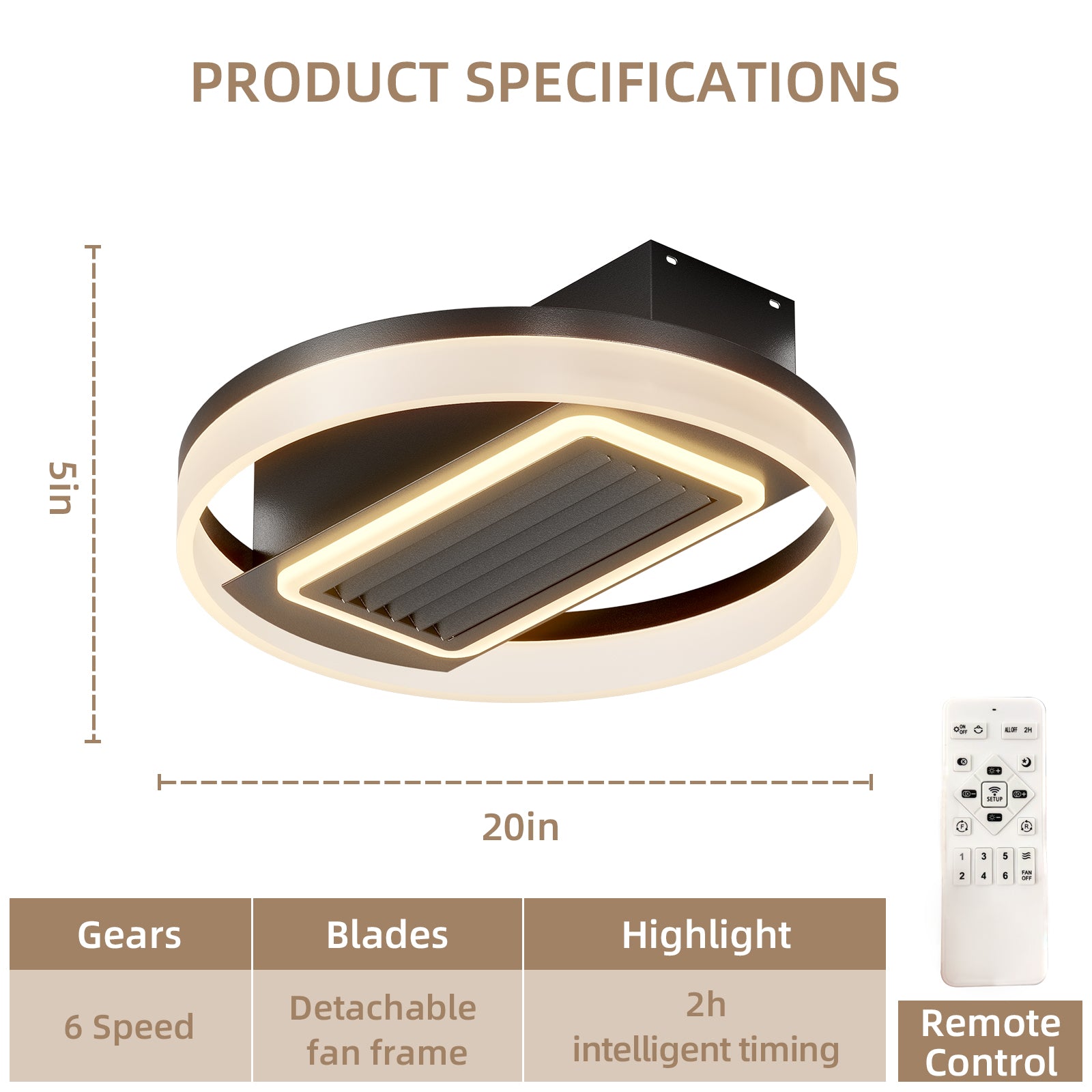 20Inch Modern Leafless Ceiling Fan With Remote Control Removable And Washable, Reversible Motor Black Modern Iron