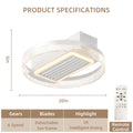 20Inch Modern Leafless Ceiling Fan With Remote Control Removable And Washable, Reversible Motor White Modern Iron