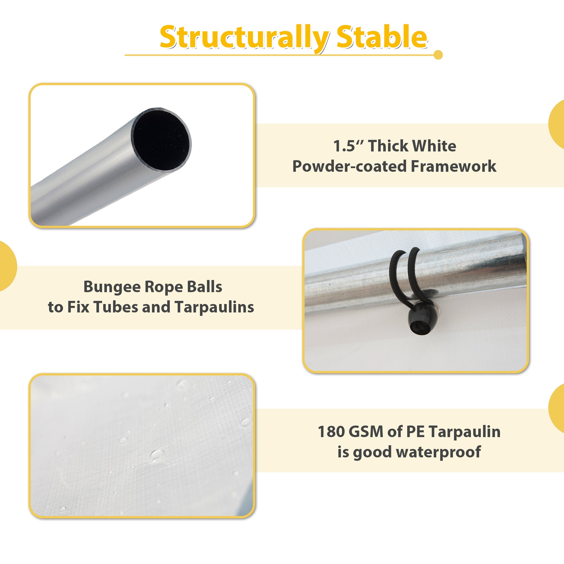 | Cover & Sidewalls material | top cover 180g PE,sidewall 160g Pe,uv protected,waterproof. windproof |