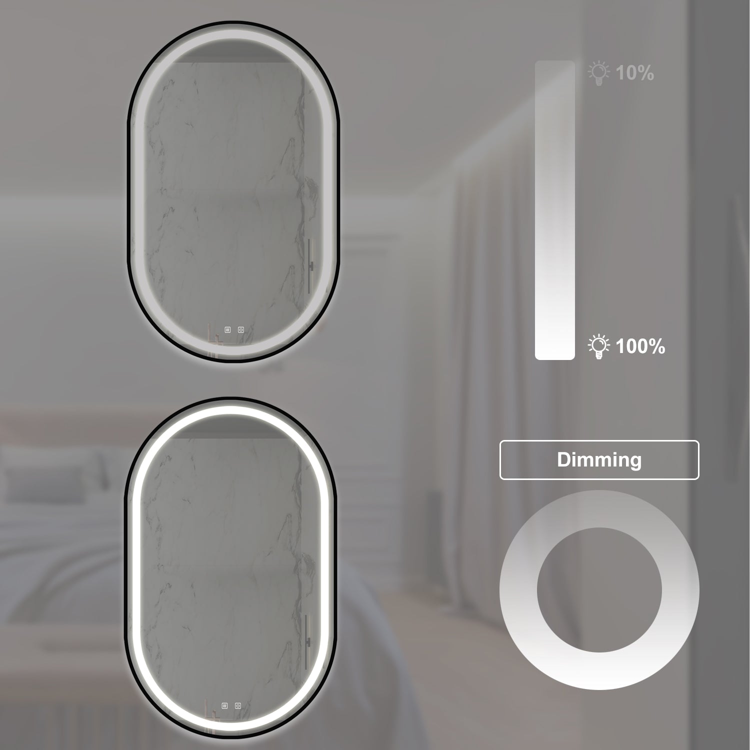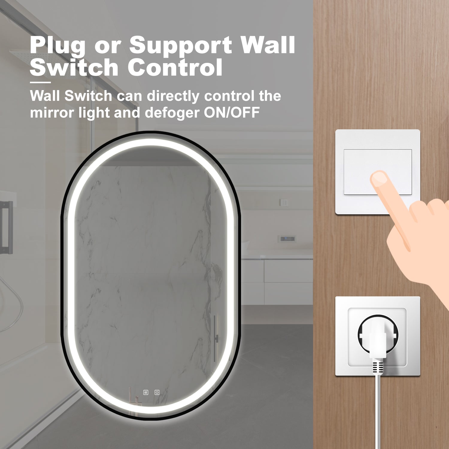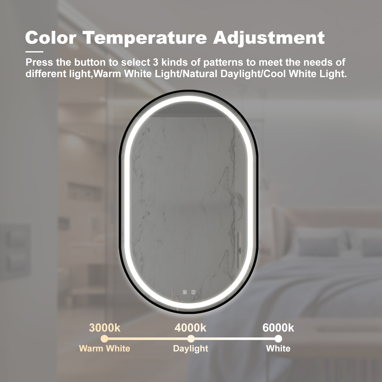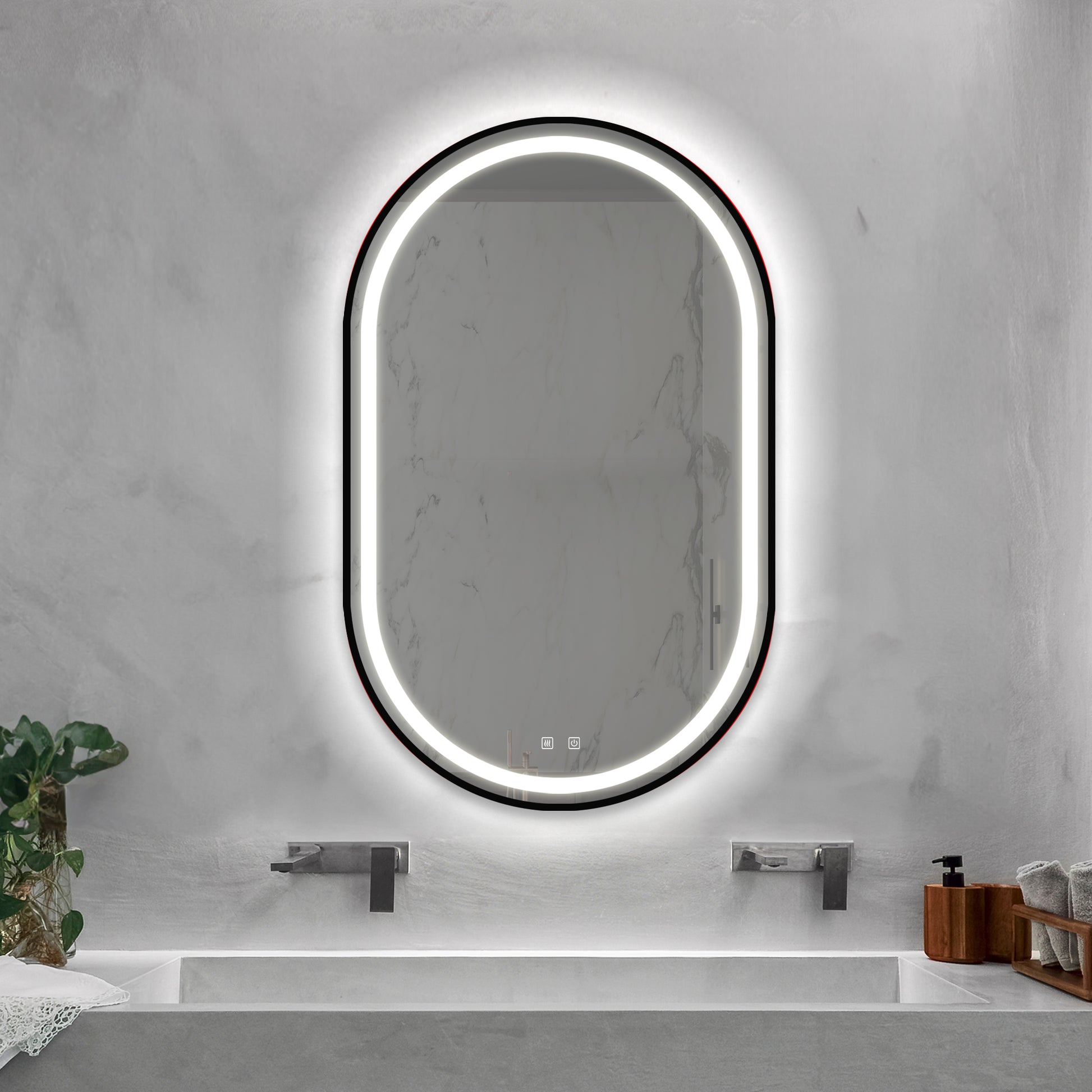 20X32Inch Bathroom Led Classy Vanity Mirror With Focused Backplane,Black Aluminum Alloy Frame,High Lumen,Dimmable Touch,Wall Switch Control, Anti Fog ,Cri 95 Adjustable 3000K 4500K 6000K ,Ip54 Waterp Black And Silver Glass