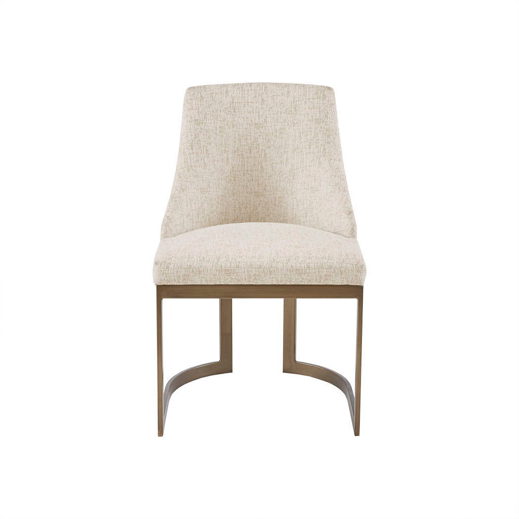 21'' Accent Dining Chairs, Antique Gold Metal Frame Back And Sled Leg Contemporary Modern Style For Kitchen Room, White,Set Of 2 Cream Solid Wood