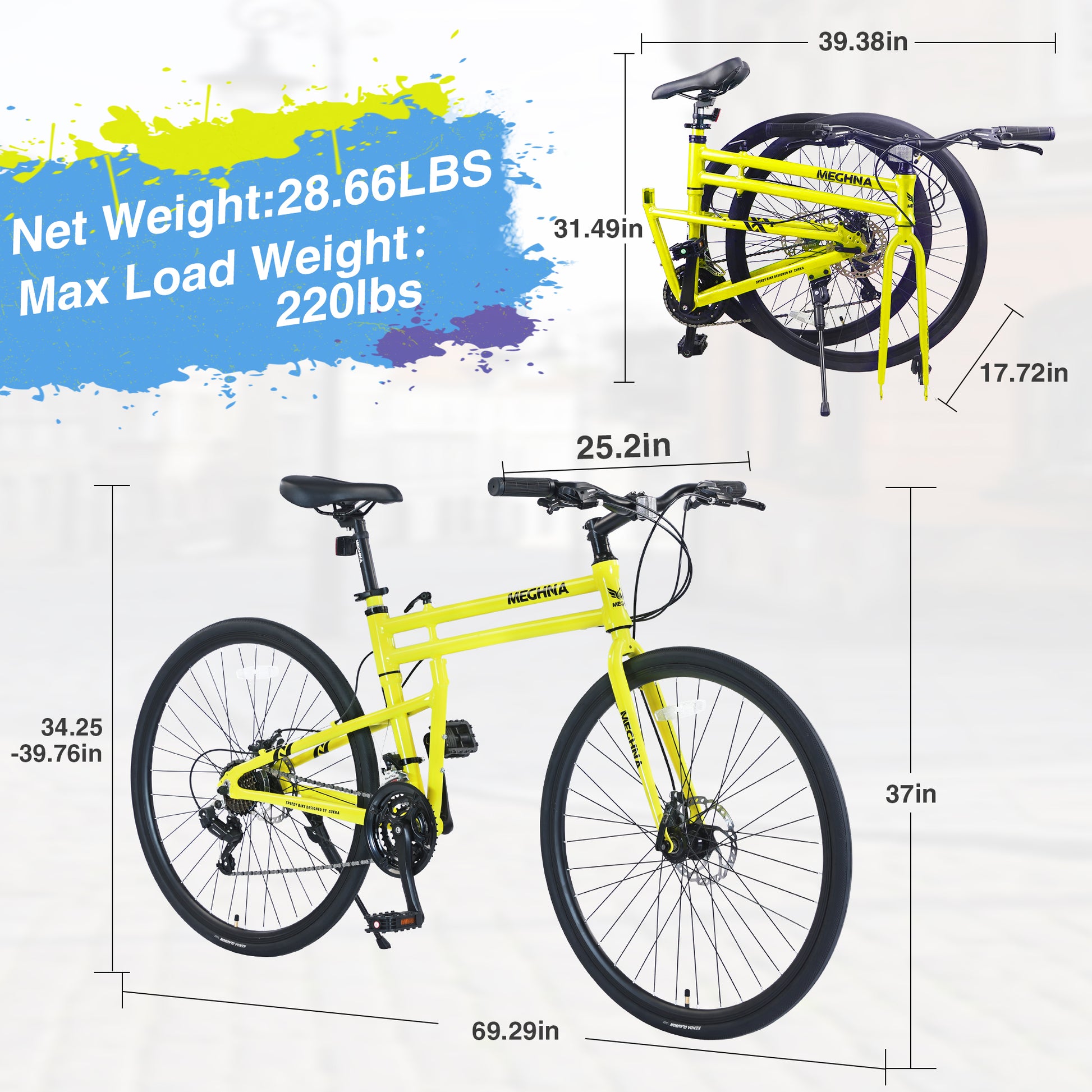 21 Speed Folding Hybrid Bike Disc Brake 700C Road Bike For Men Women'S City Bicycle Cycling Yellow Garden & Outdoor Aluminium