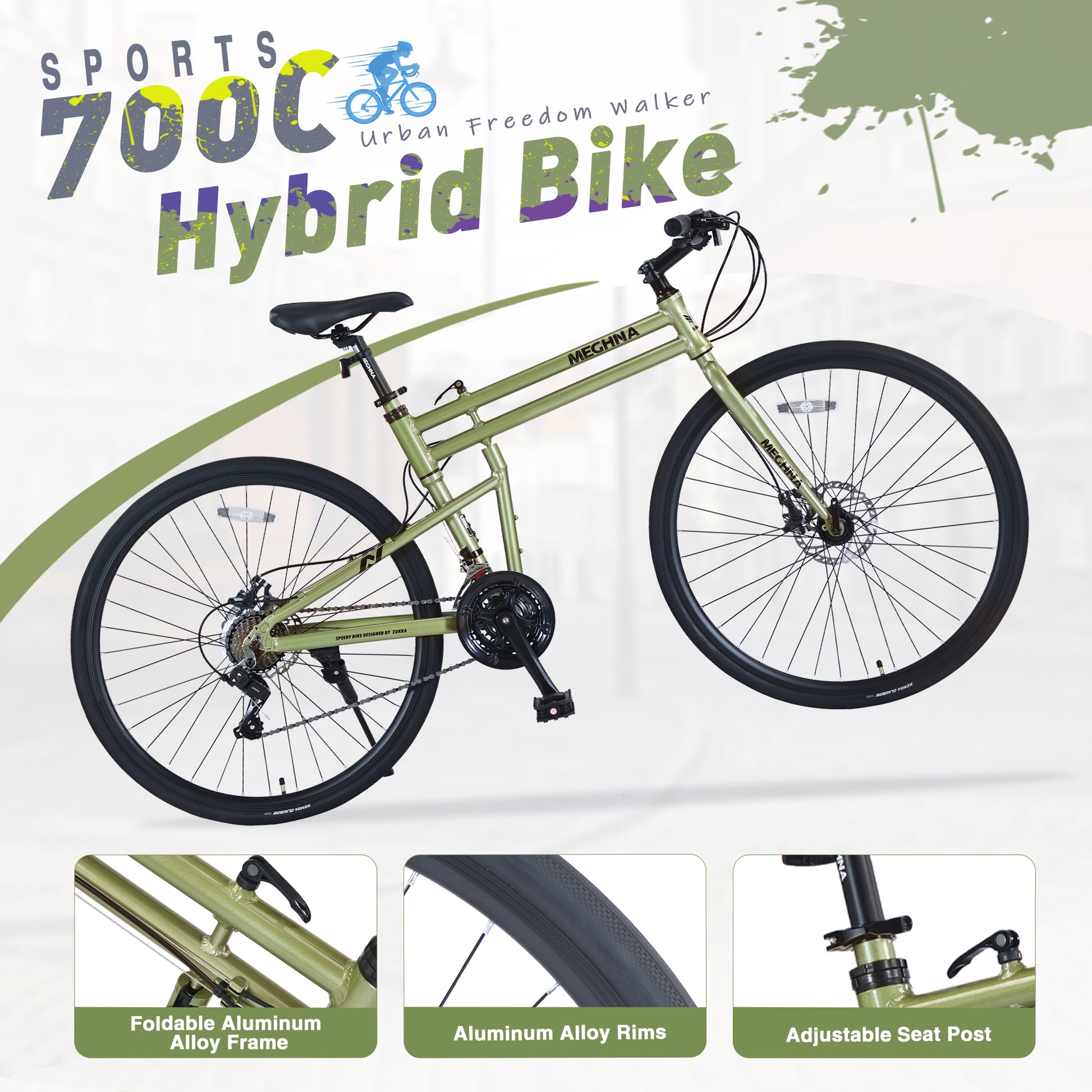 21 Speed Hybrid Bike Disc Brake 700C Road Bike For Men Women'S City Bicycle Cycling Green Garden & Outdoor Aluminium
