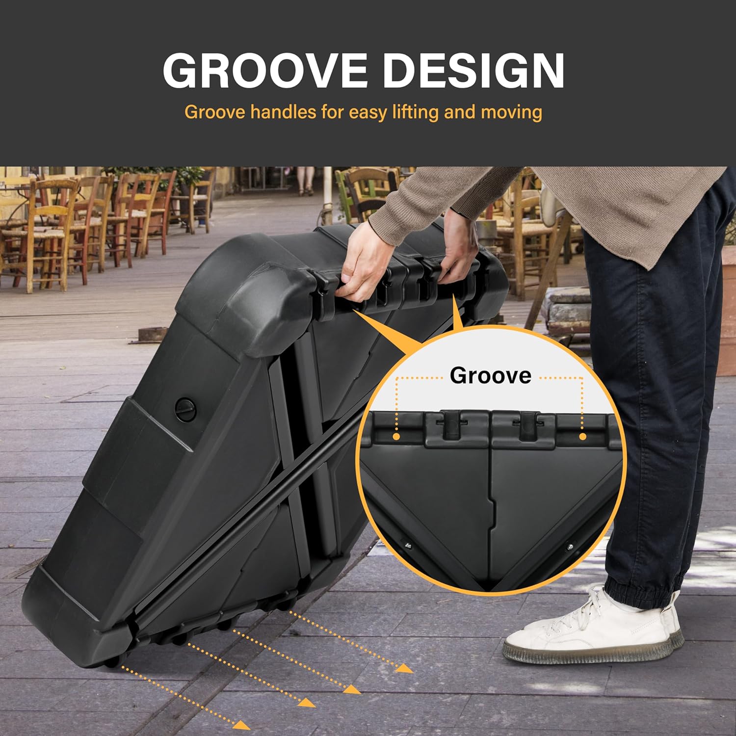 220Lb Capacity Fillable Mobile Offset Patio Base Market Cantilever Umbrella Stand Square, 33"X33"X6.7", Black Heavy Duty Black Stainless Steel