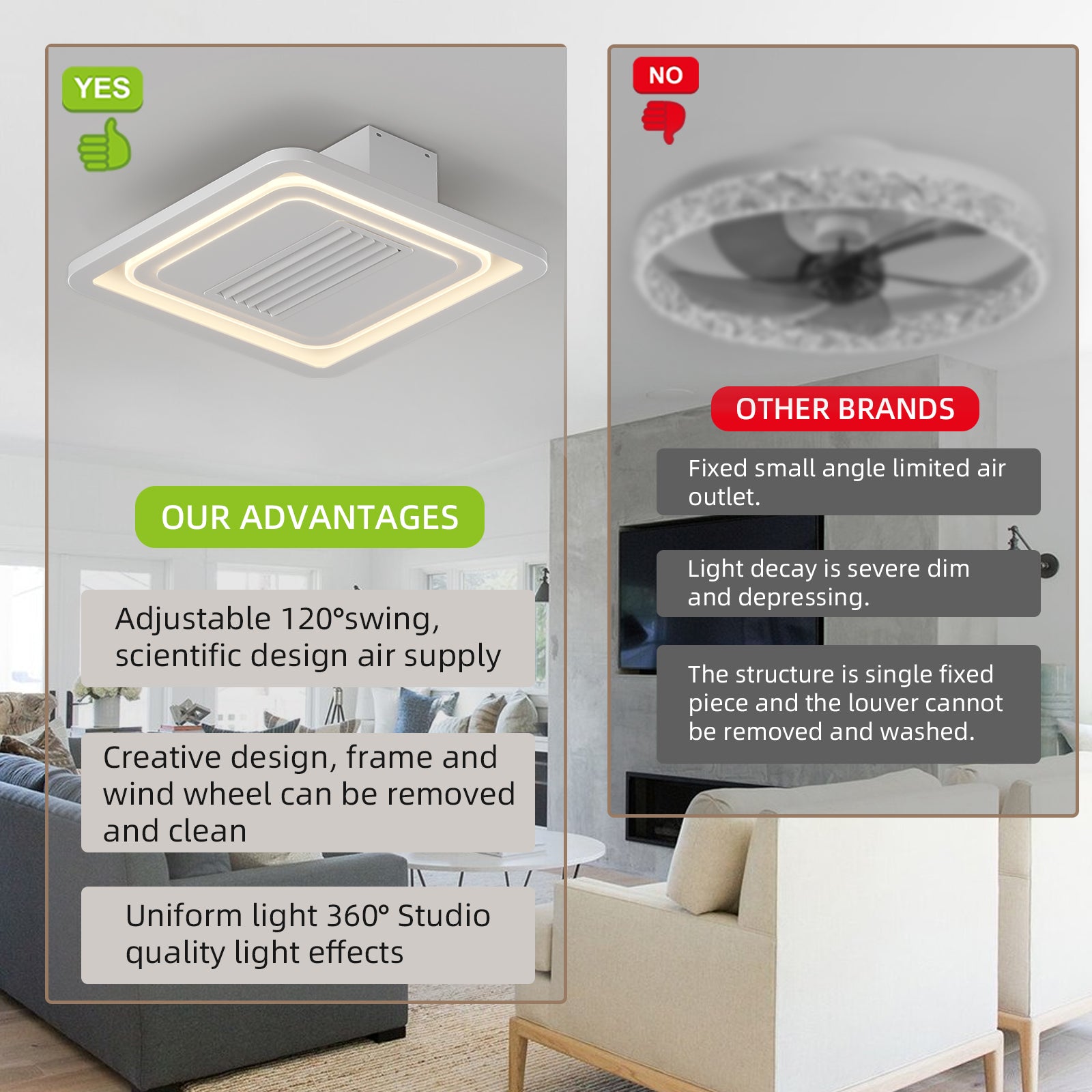 22Inch Modern Leafless Ceiling Fan With Remote Control Removable And Washable, Reversible Motor White Modern Iron
