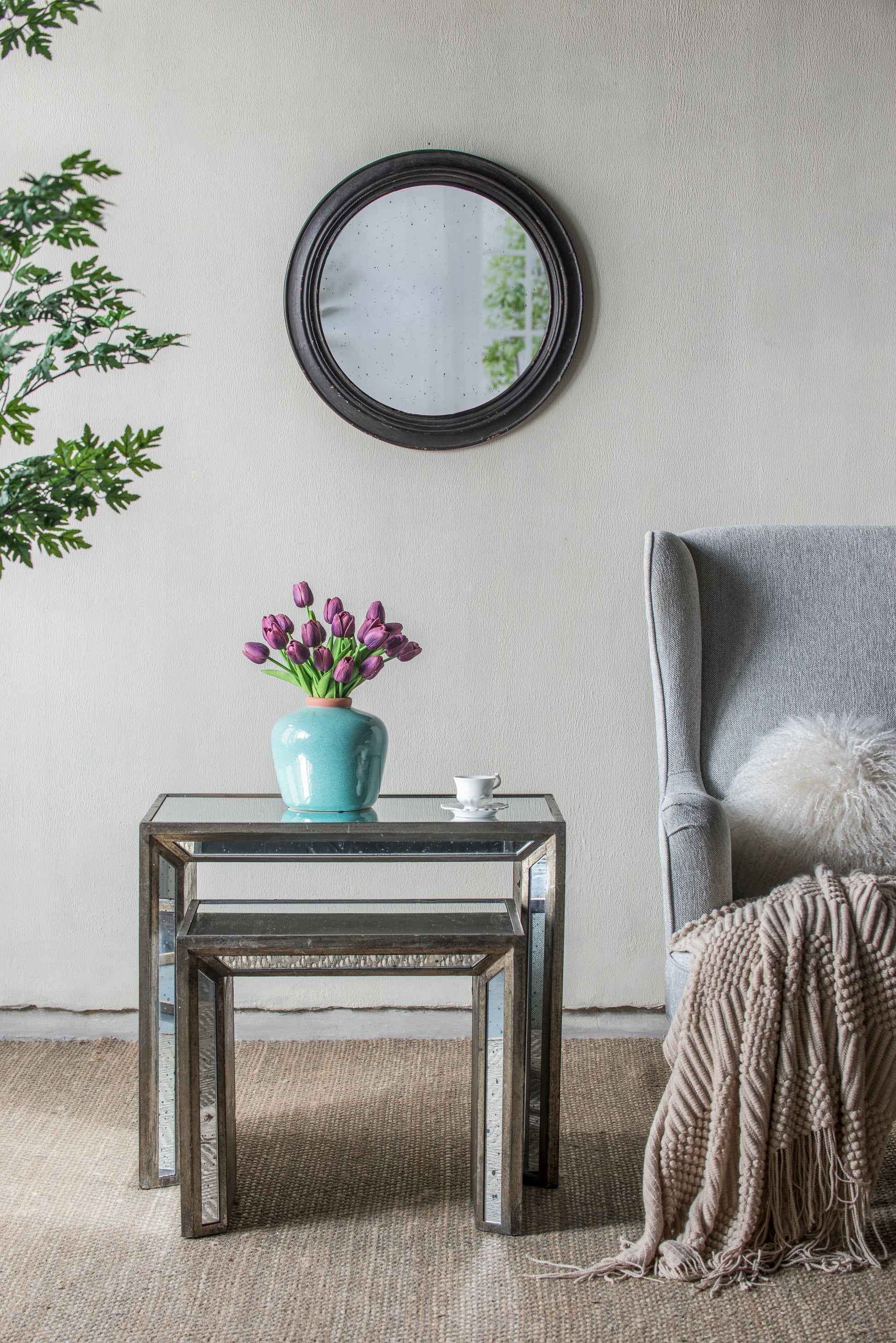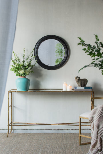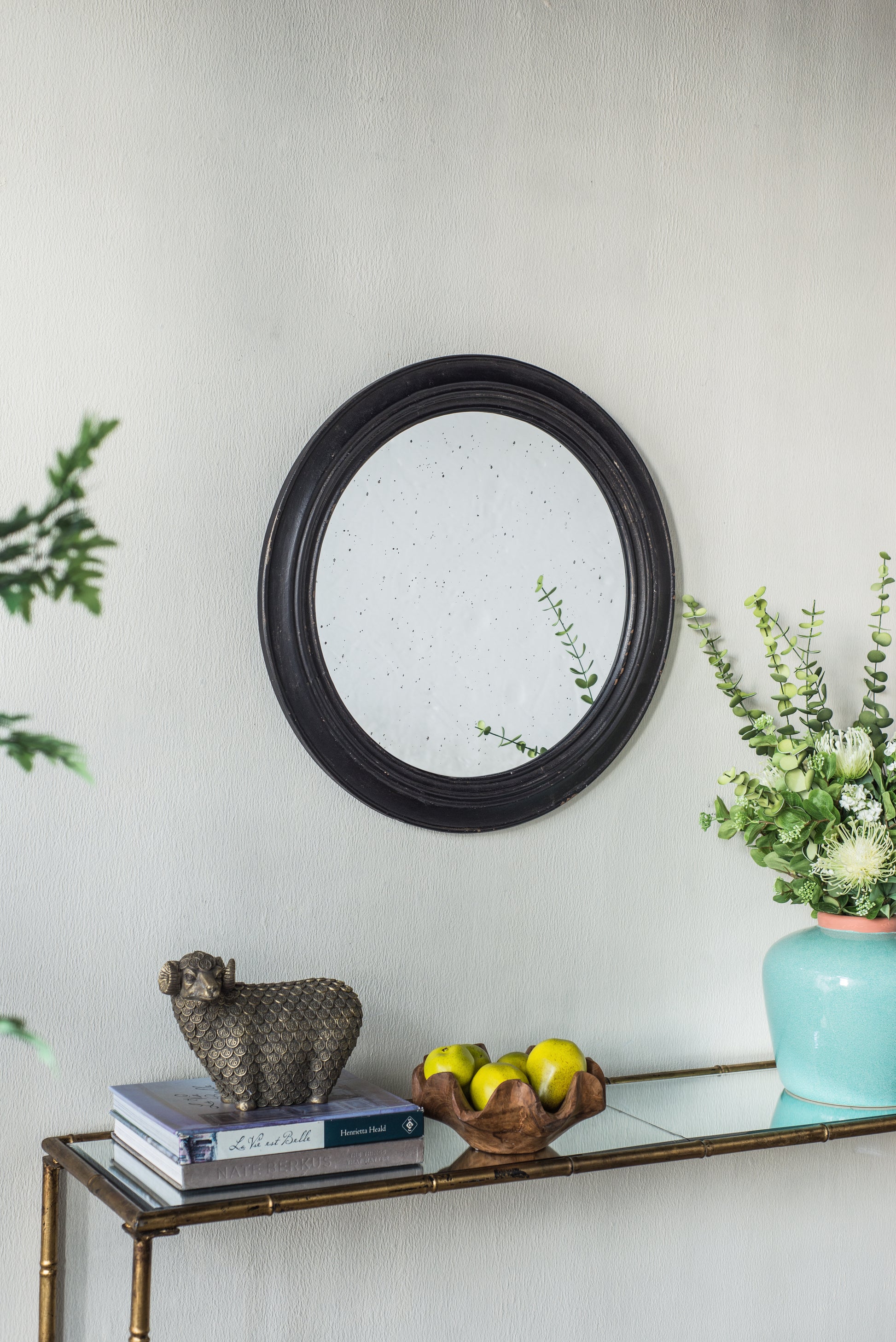 23.5" Circle Wall Mirror With Wooden Black Frame, Antique Classic Accent Mirror, For Living Room, Foyer, Bathroom, Office Black Mdf Glass