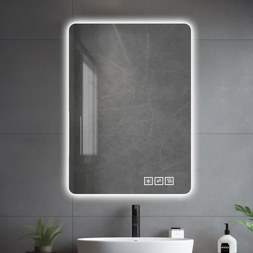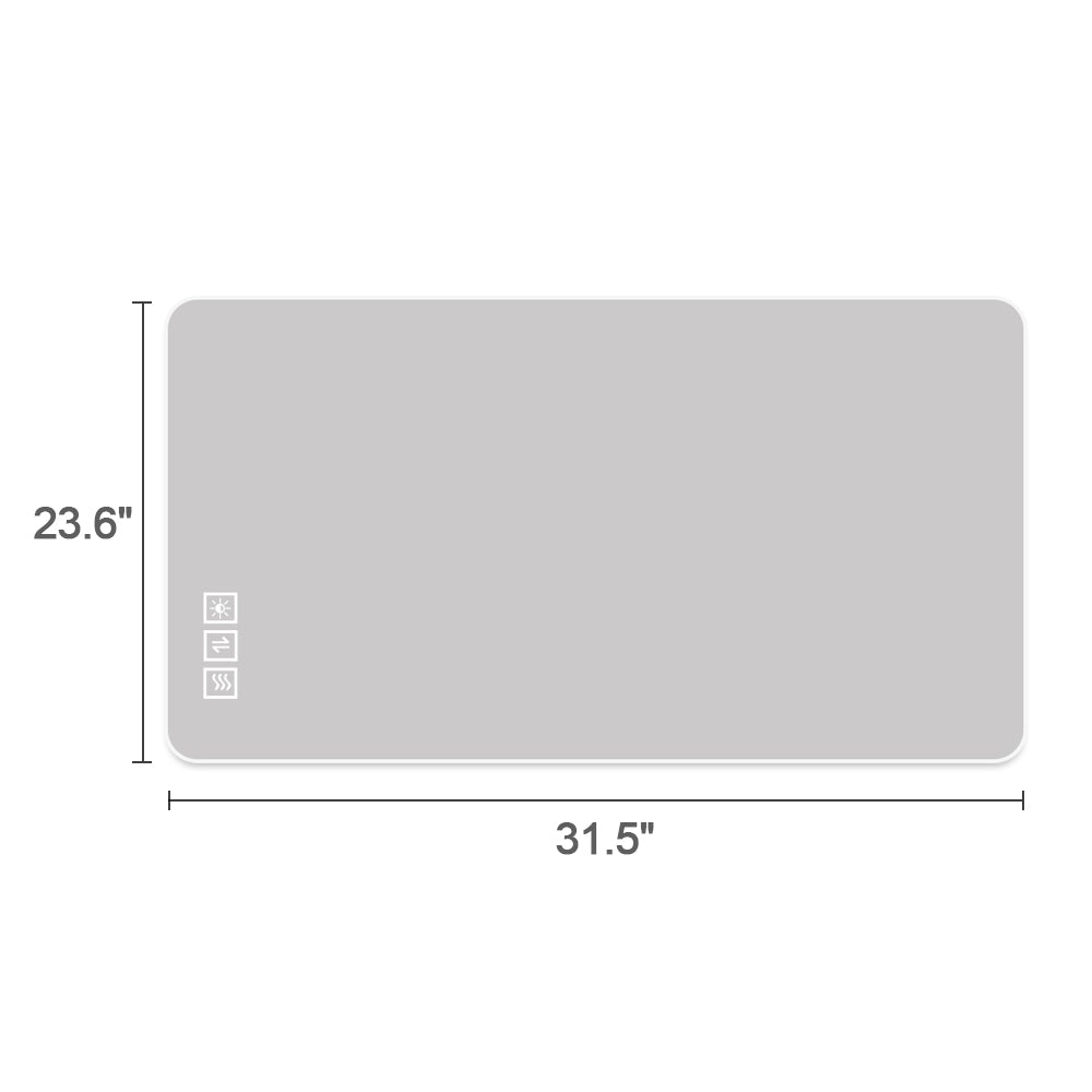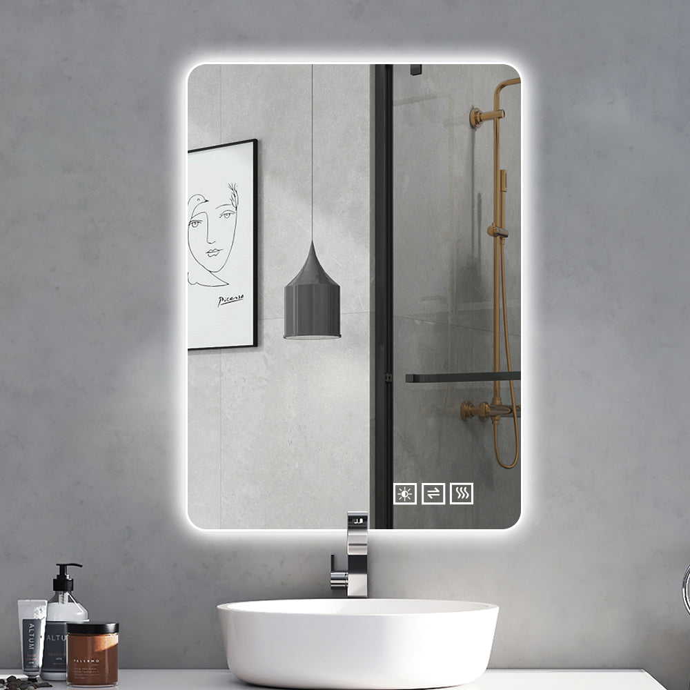 23.6X31.5Inch No Frame With Lamp Round Corner Bathroom Mirror Silver Modern Glass