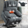 23" Seat Width And High Back Large Size Blue Chenille Power Lift Recliner Chair With 8 Point Vibration Massage And Lumbar Heating Blue Gray Chenille Metal Power Push Button Primary Living Space Medium Firm Cushion Back Heavy Duty American Design Pillow
