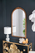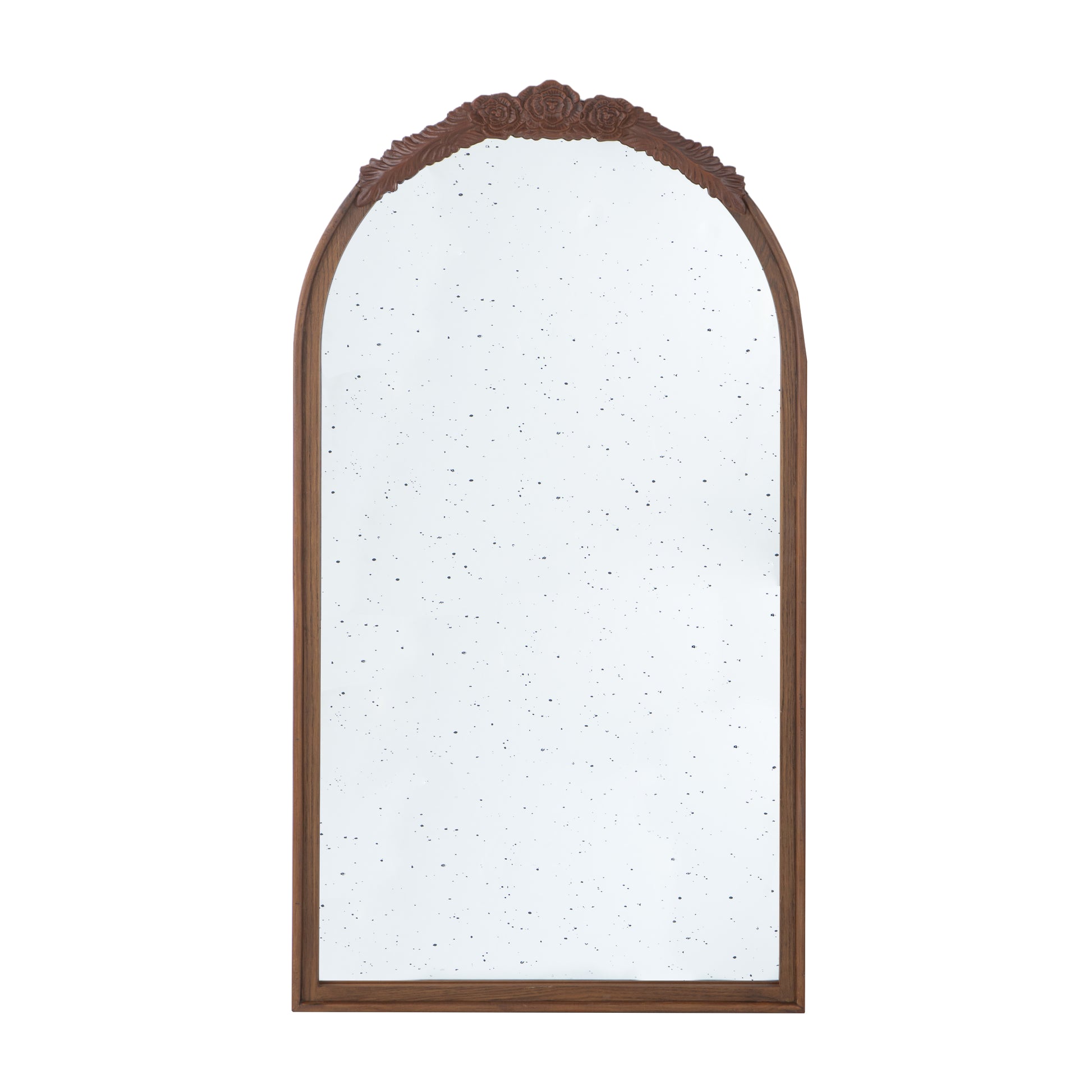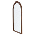 23" X 42" Hand Carved Rose Antique Mirror Frame, Wood Arch Mirror Wall Decor For Living Room, Bathroom, Entryway Brown Brown Mdf Glass