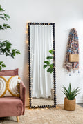 23" X 72" Full Length Mirror With Metal Beaded Frame, Rectangular Oversized Mirror For Living Room Bedroom, Black Black Iron