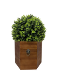 24" Ball Topiary In Redwood Pot, Artificial Faux Plant For Indoor And Outdoor Green Plastic