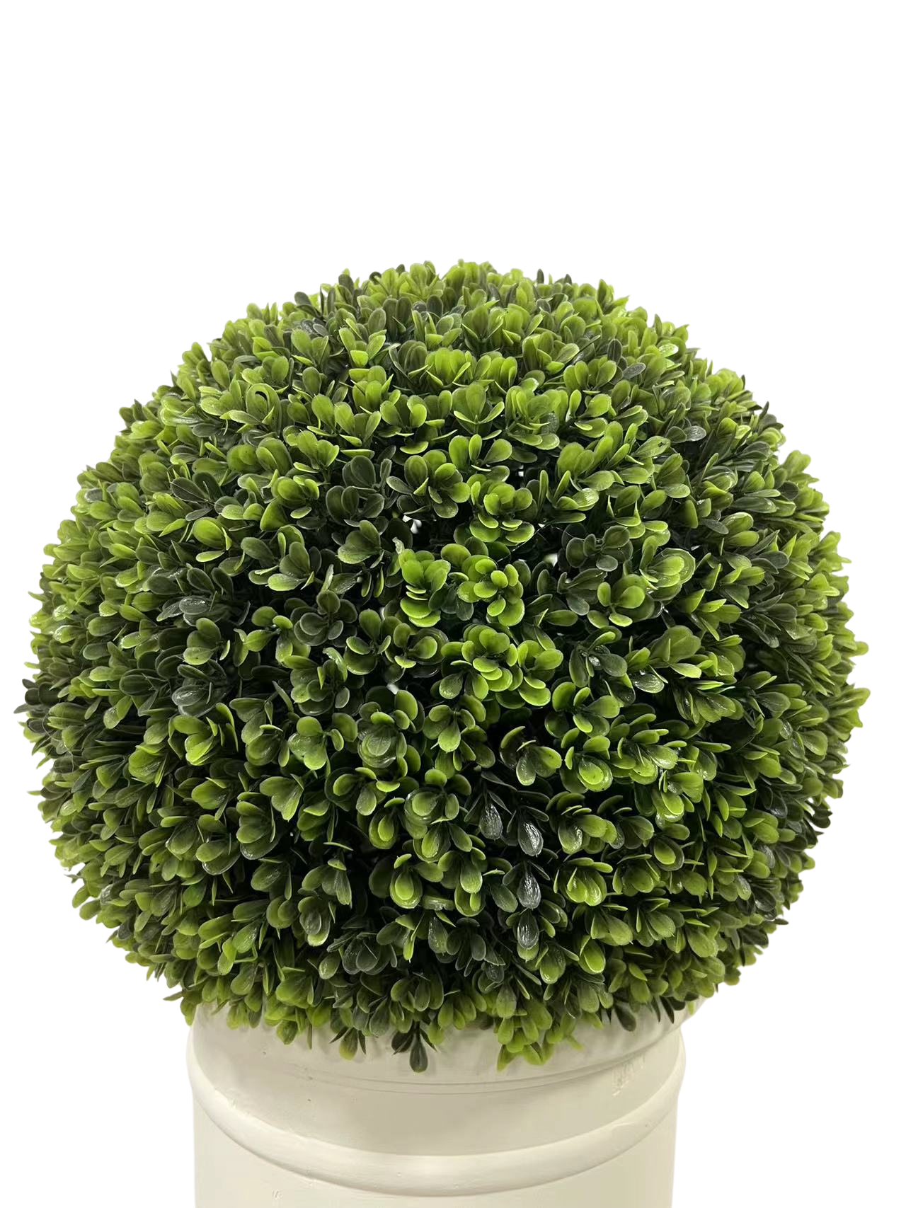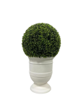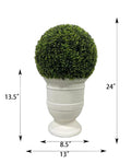 24" Ball Topiary In White Pot, Artificial Faux Plant For Indoor And Outdoor Green Plastic