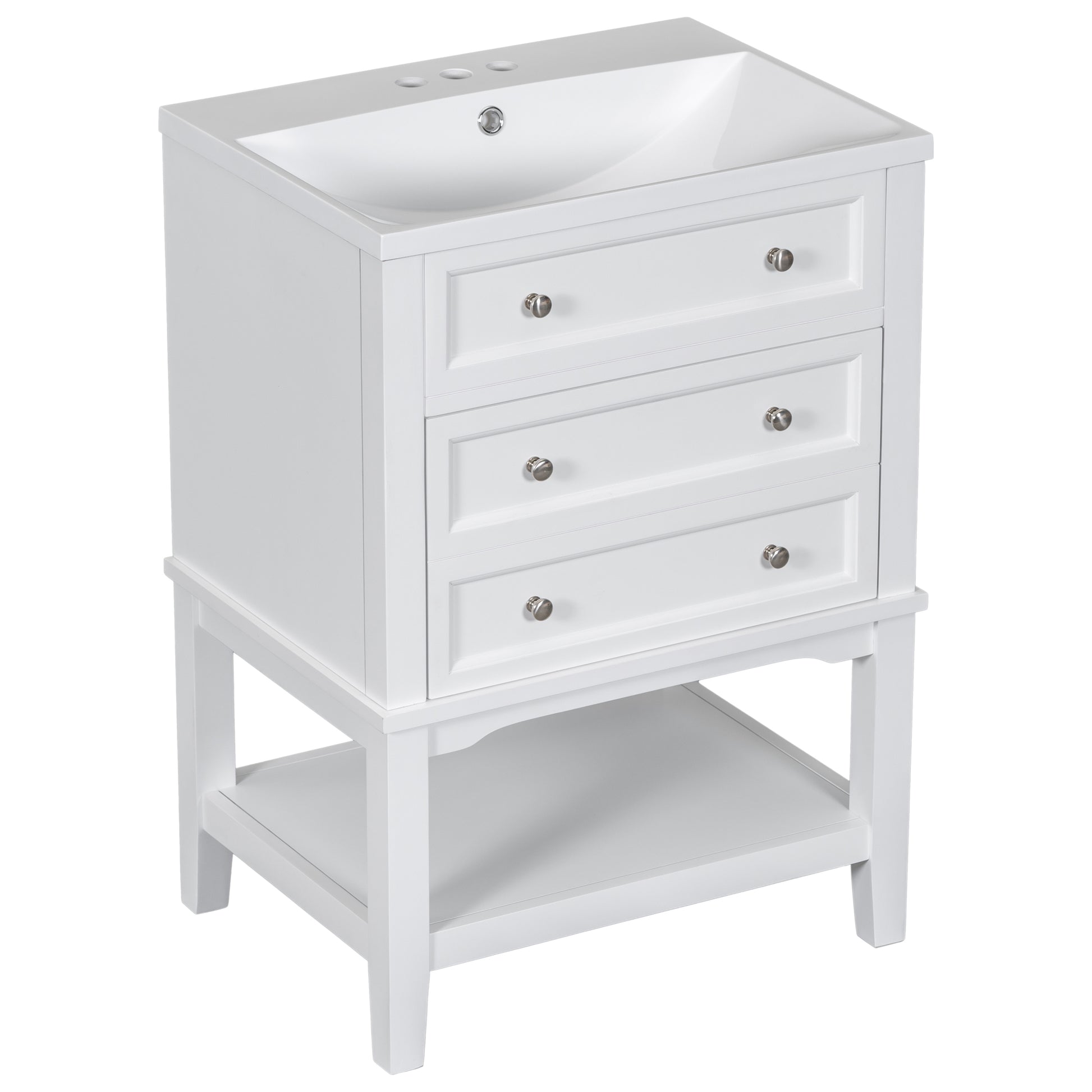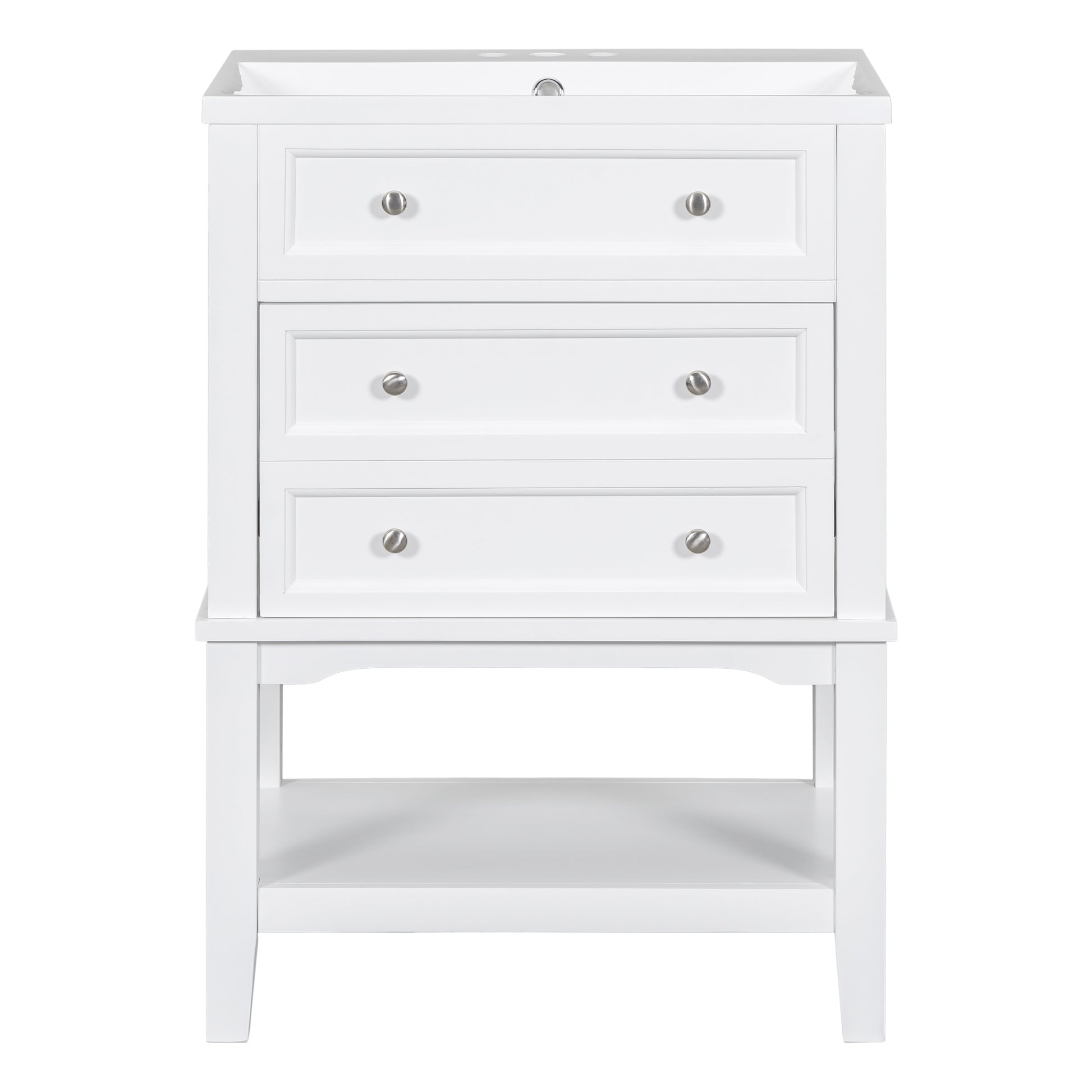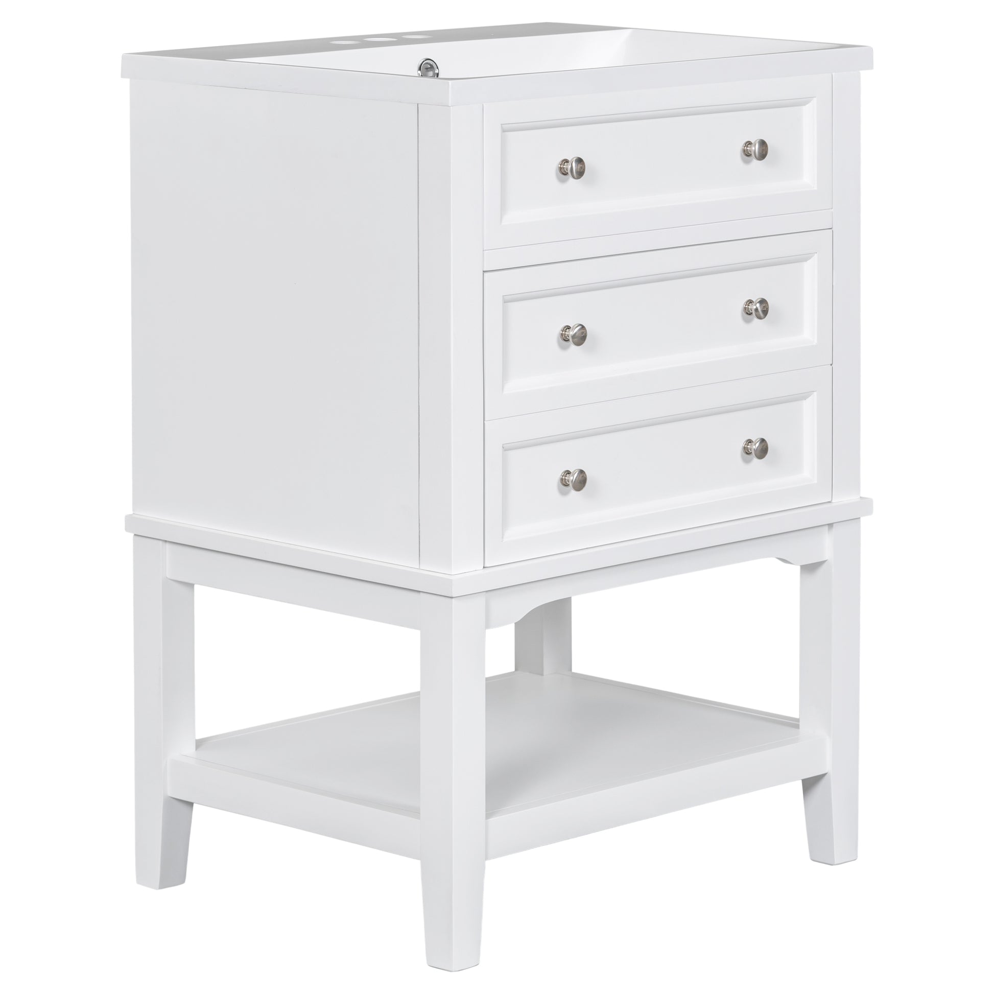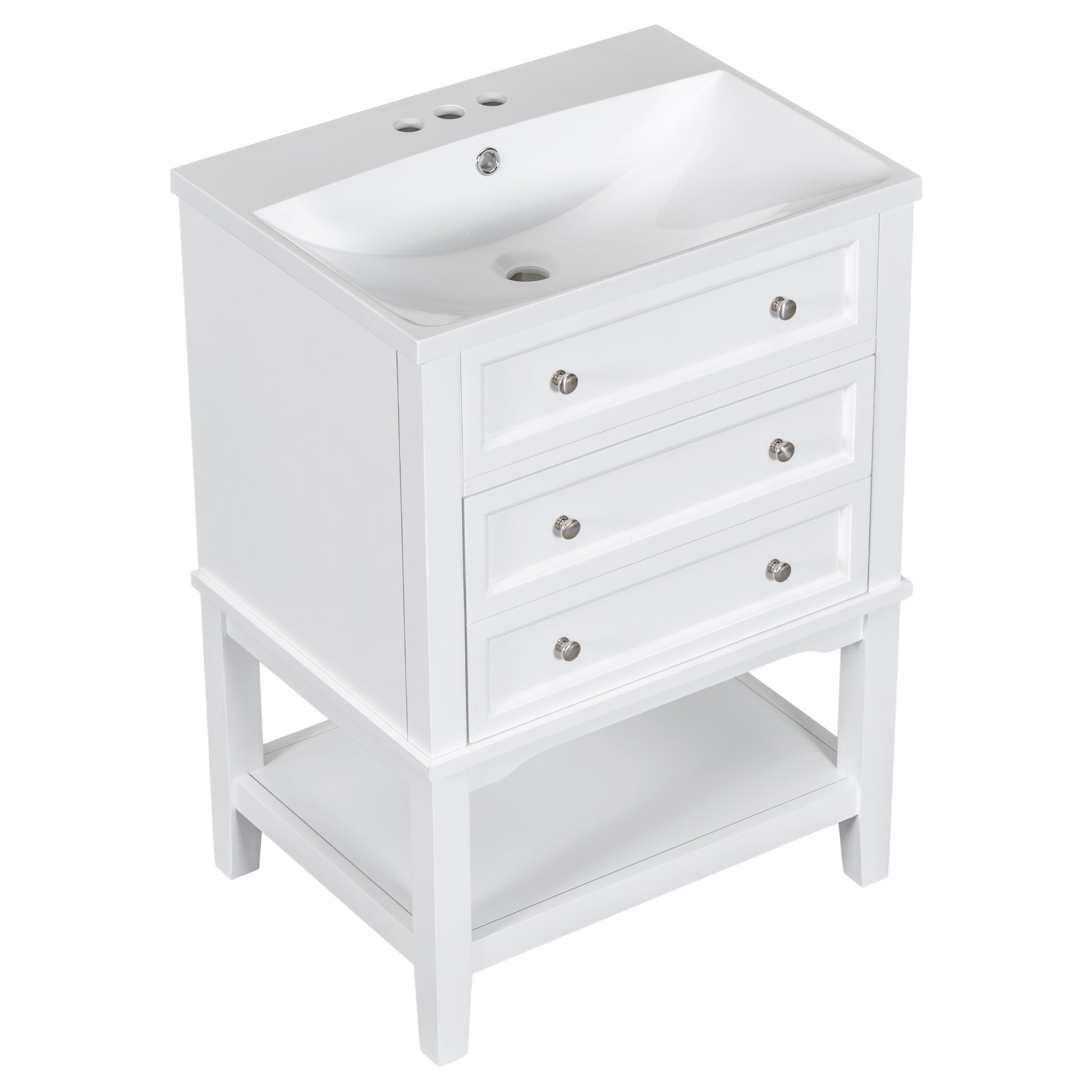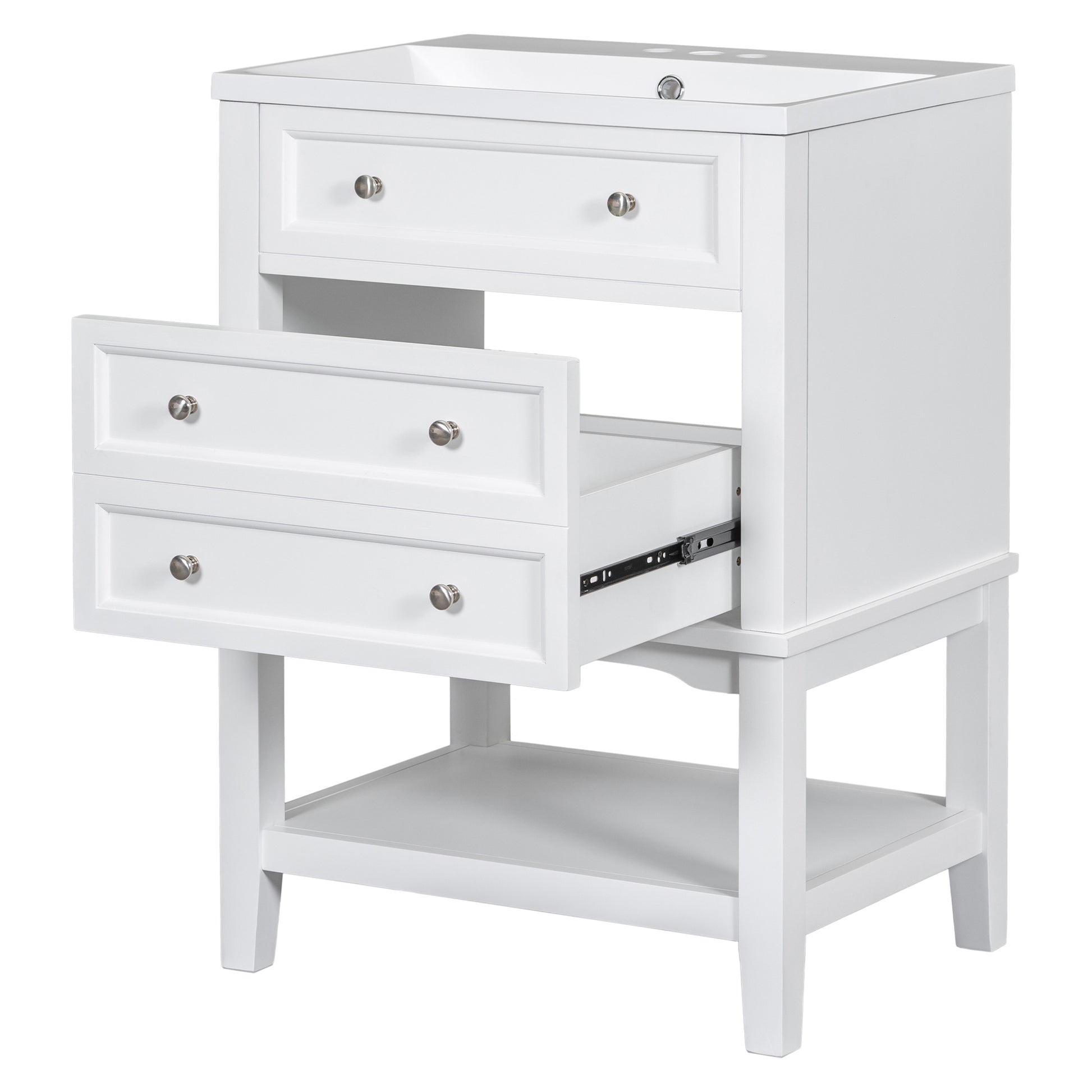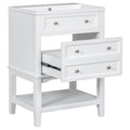 24" Bathroom Vanity With Sink, Bathroom Storage Cabinet With Drawer And Open Shelf, Solid Wood Frame, White White Solid Wood Mdf