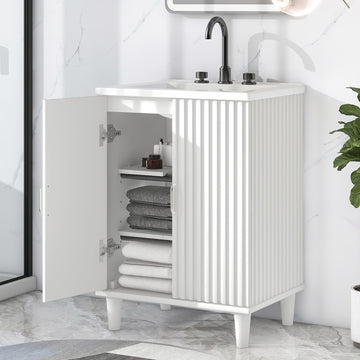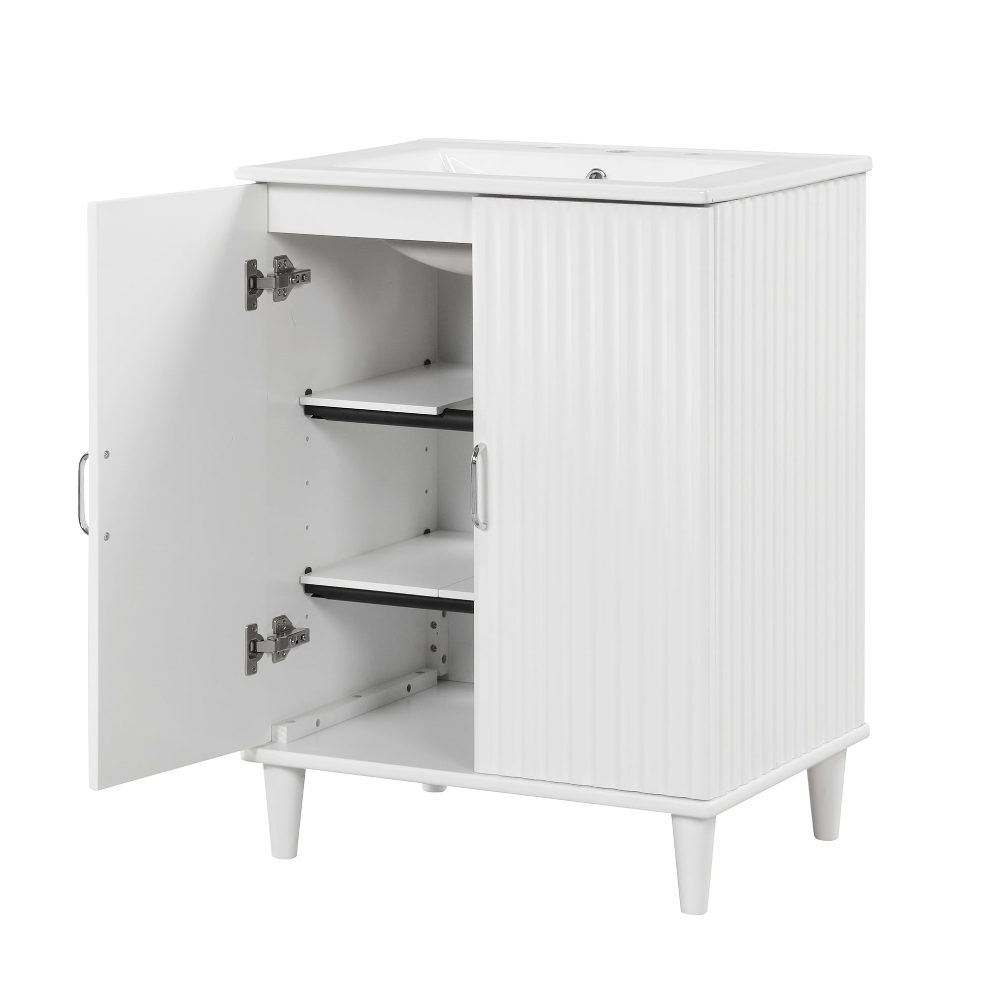 24" Bathroom Vanity With Sink, Bathroom Vanity Cabinet With Two Doors, Adjustable Shelves, Solid Wood And Mdf, White White Solid Wood Mdf