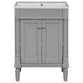 24'' Bathroom Vanity With Top Sink, 2 Tier Modern Bathroom Storage Cabinet, Single Sink Bathroom Vanity, Large Storage Shelves Grey Mdf