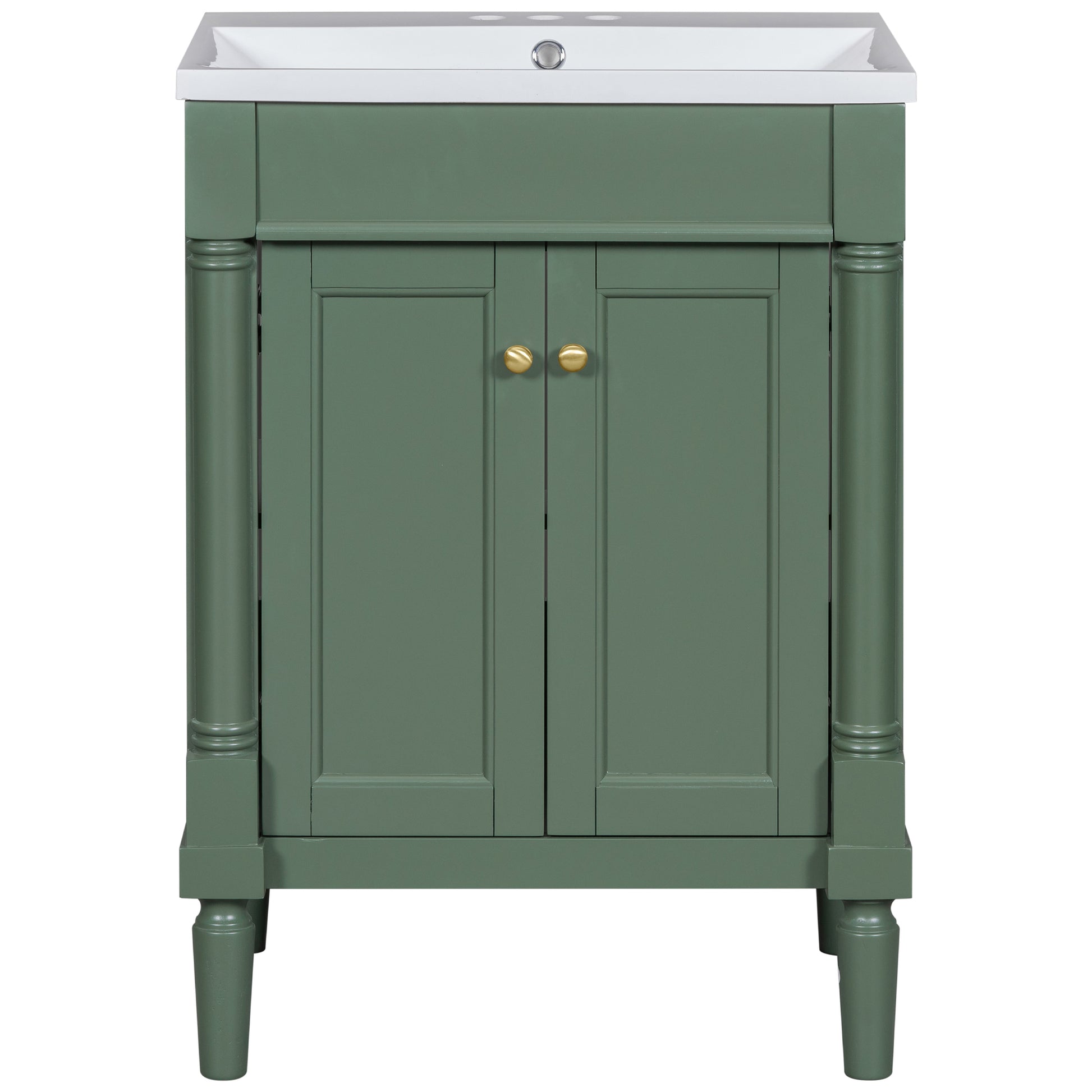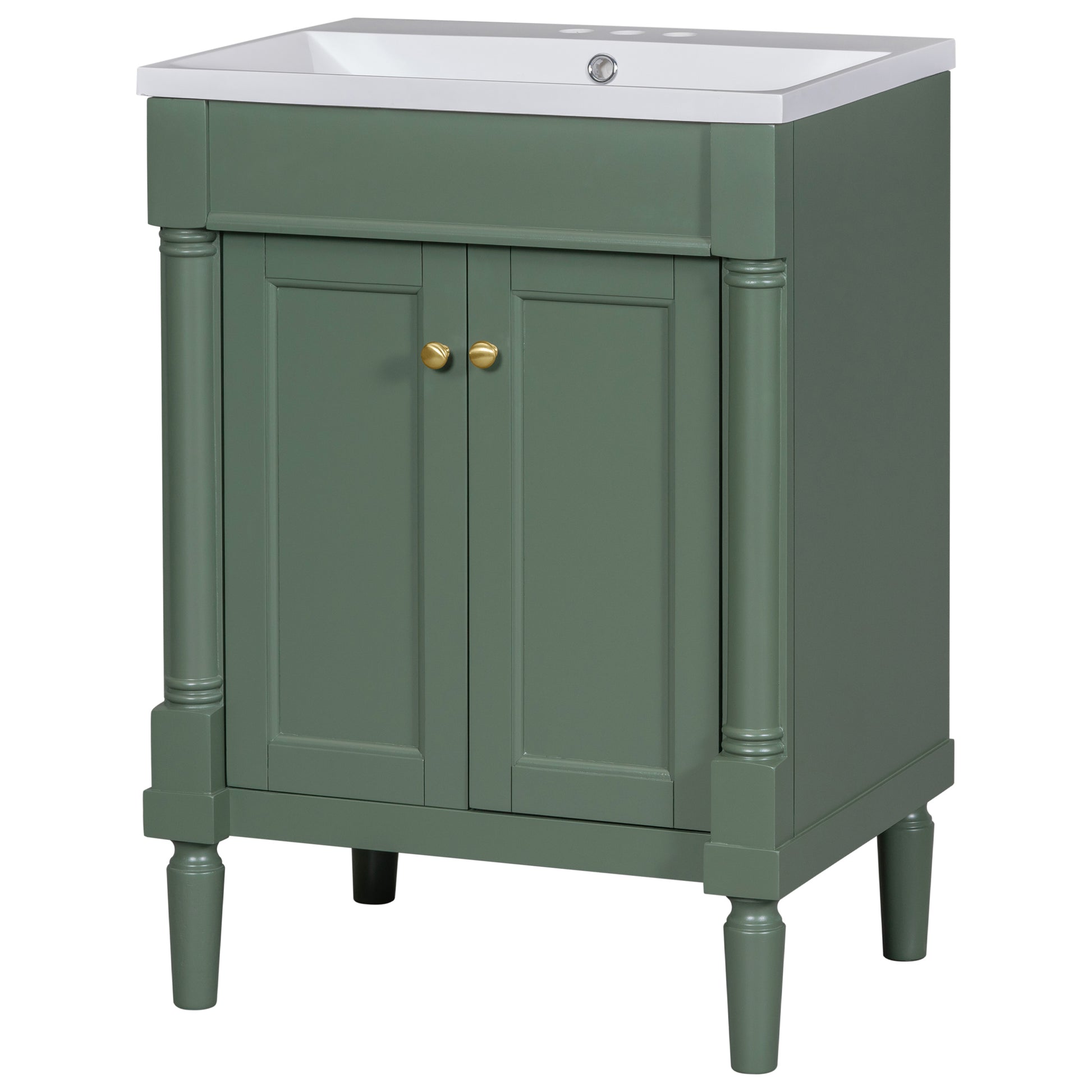 24'' Bathroom Vanity With Top Sink, 2 Tier Modern Bathroom Storage Cabinet, Single Sink Bathroom Vanity, Large Storage Shelves Green Mdf