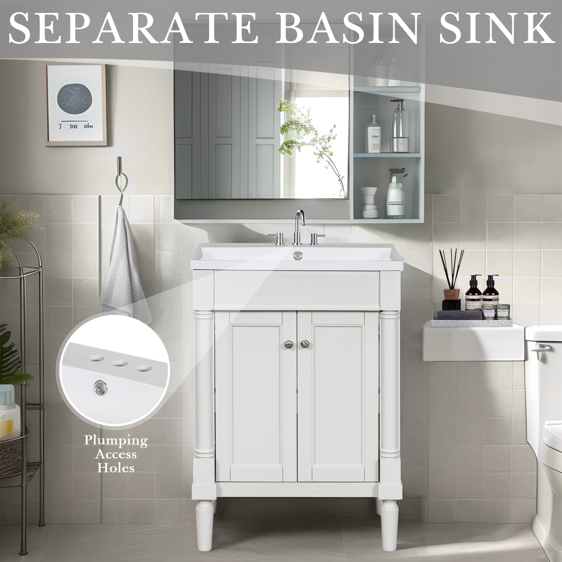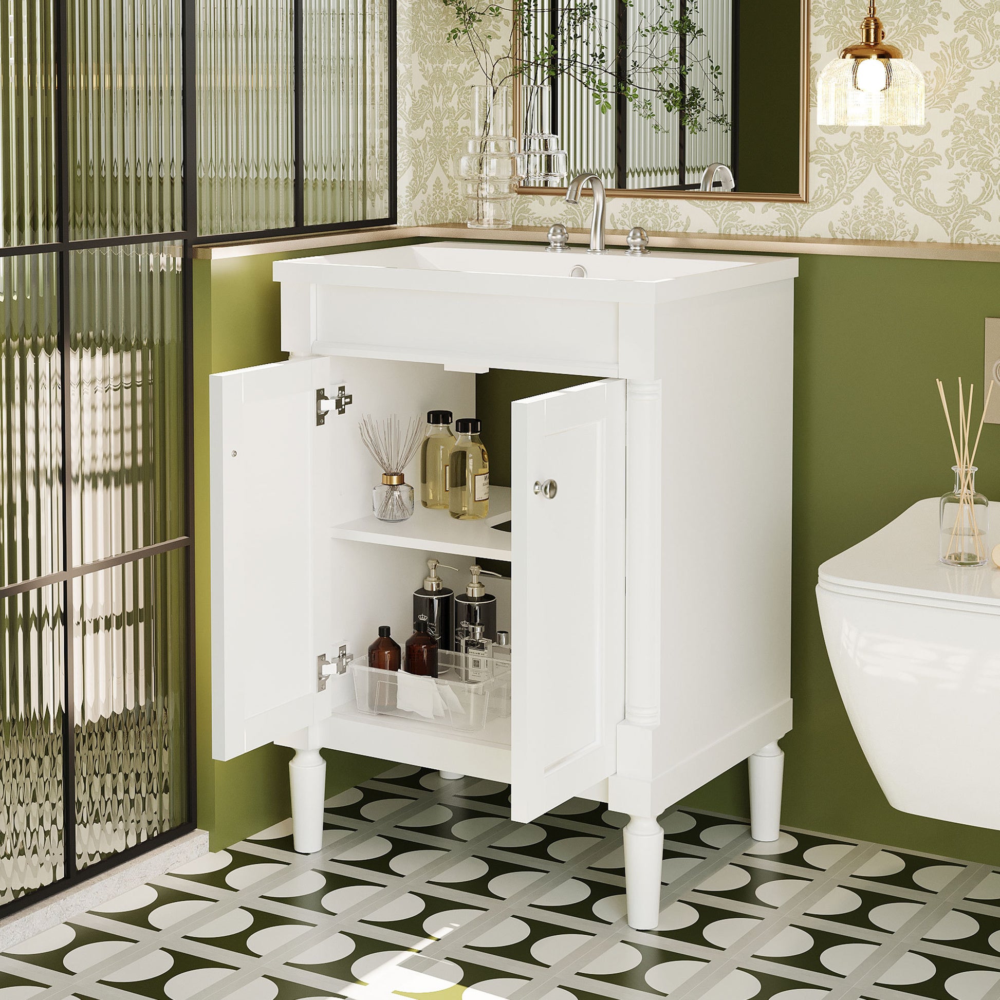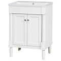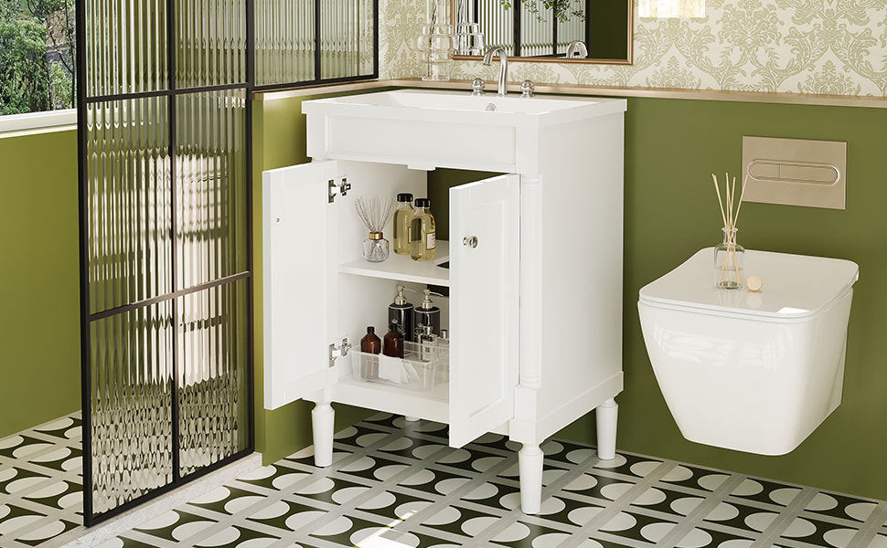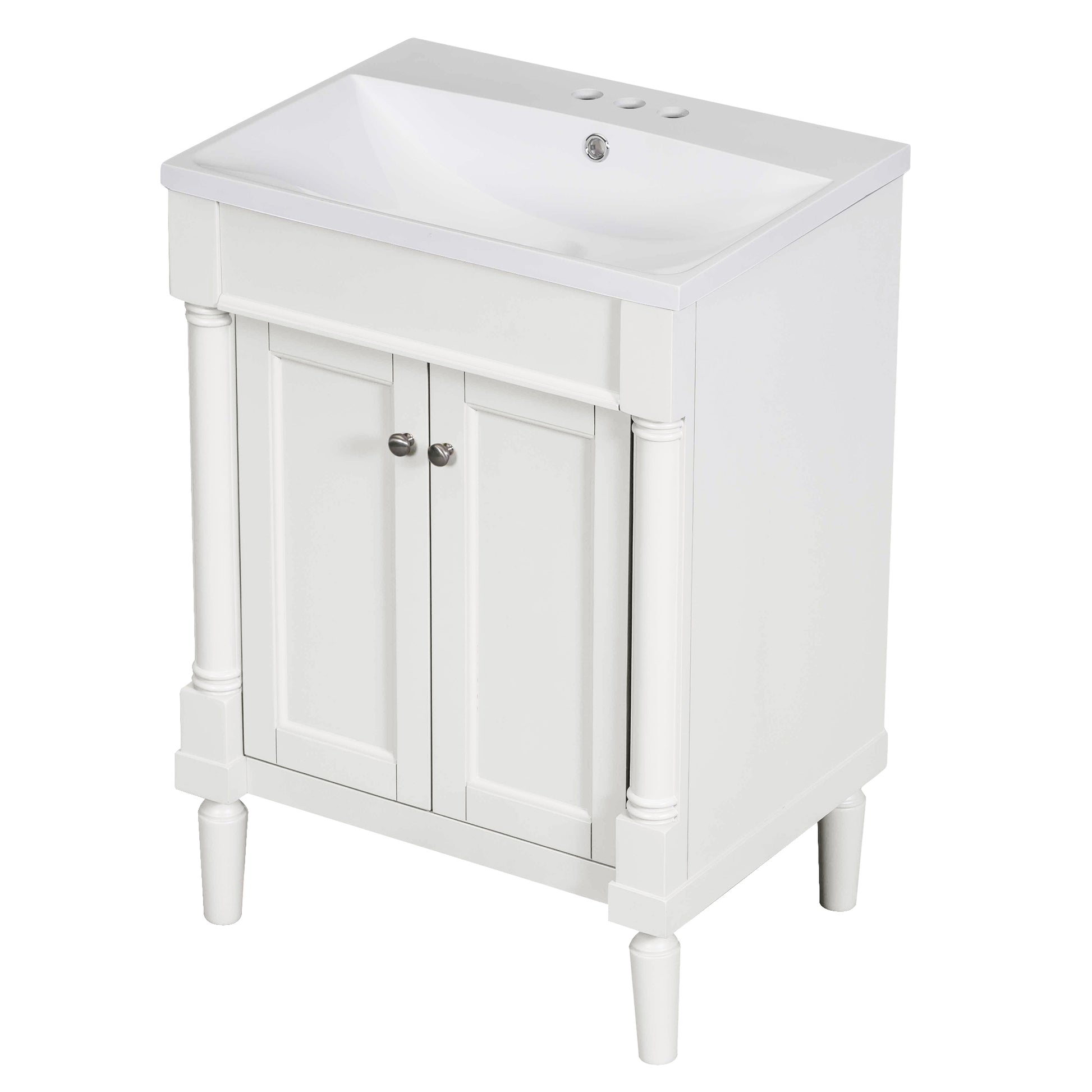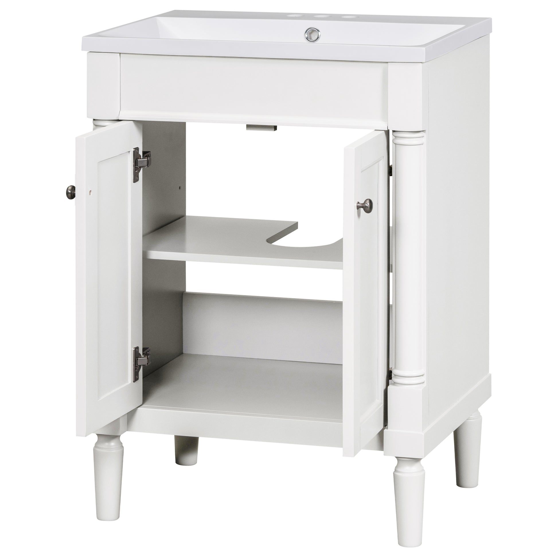 24'' Bathroom Vanity With Top Sink, 2 Tier Modern Bathroom Storage Cabinet, Single Sink Bathroom Vanity, Large Storage Shelves White Mdf