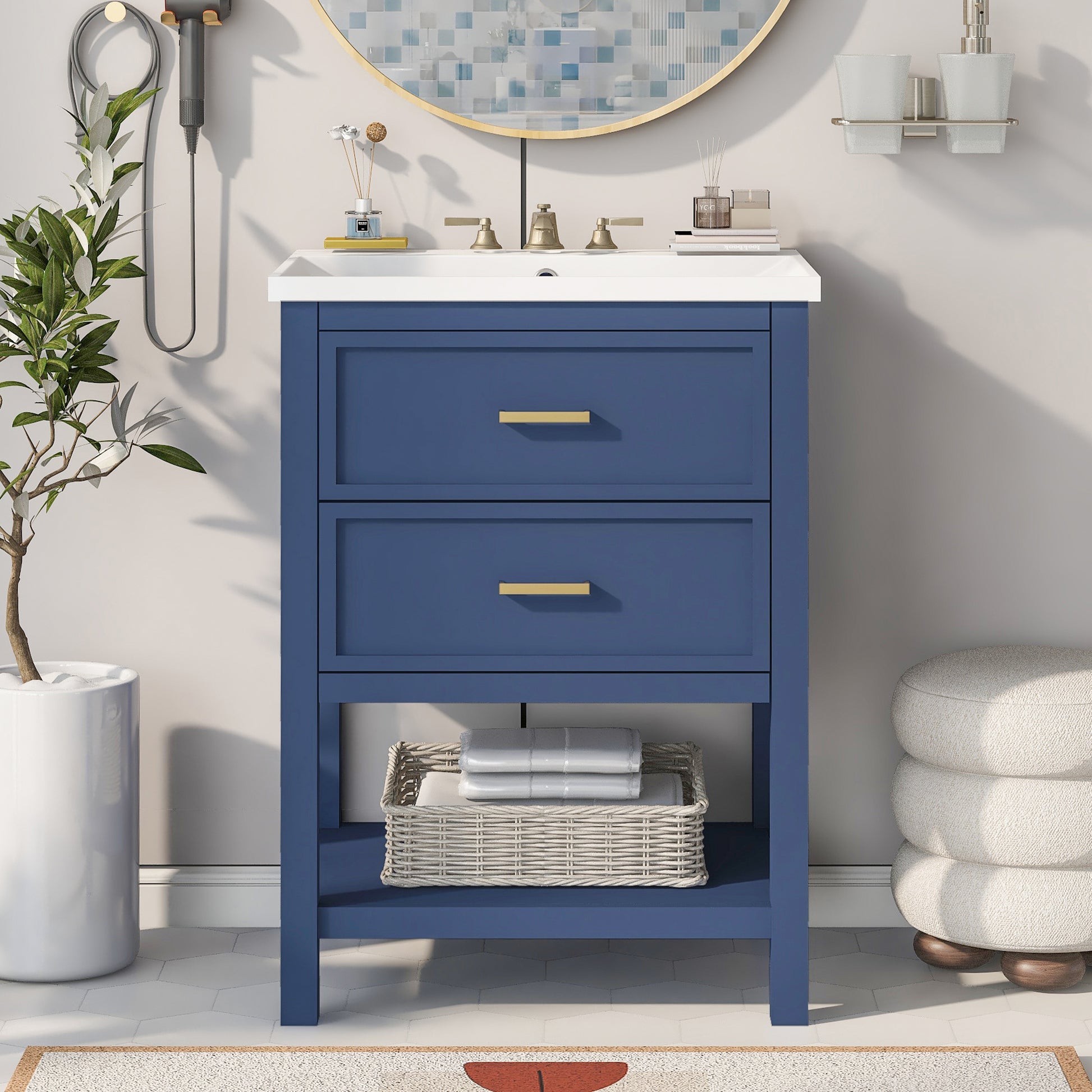 24'' Bathroom Vanity With Top Sink, Modern Bathroom Storage Cabinet With 2 Drawers, Single Sink Bathroom Vanity Blue Mdf