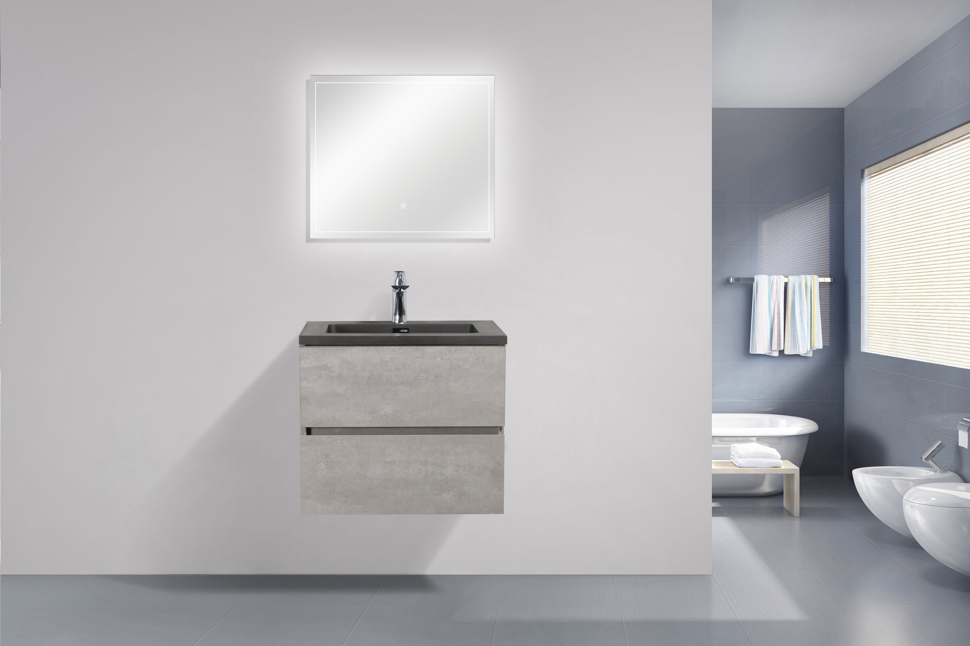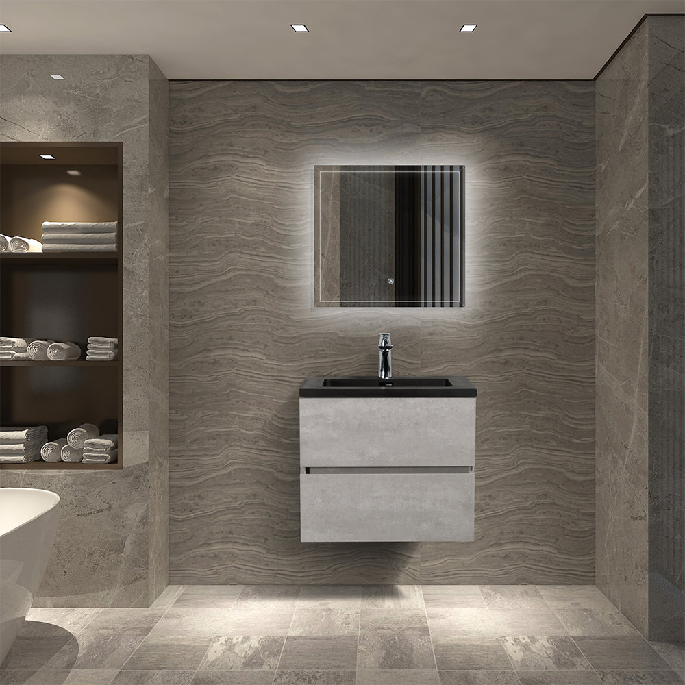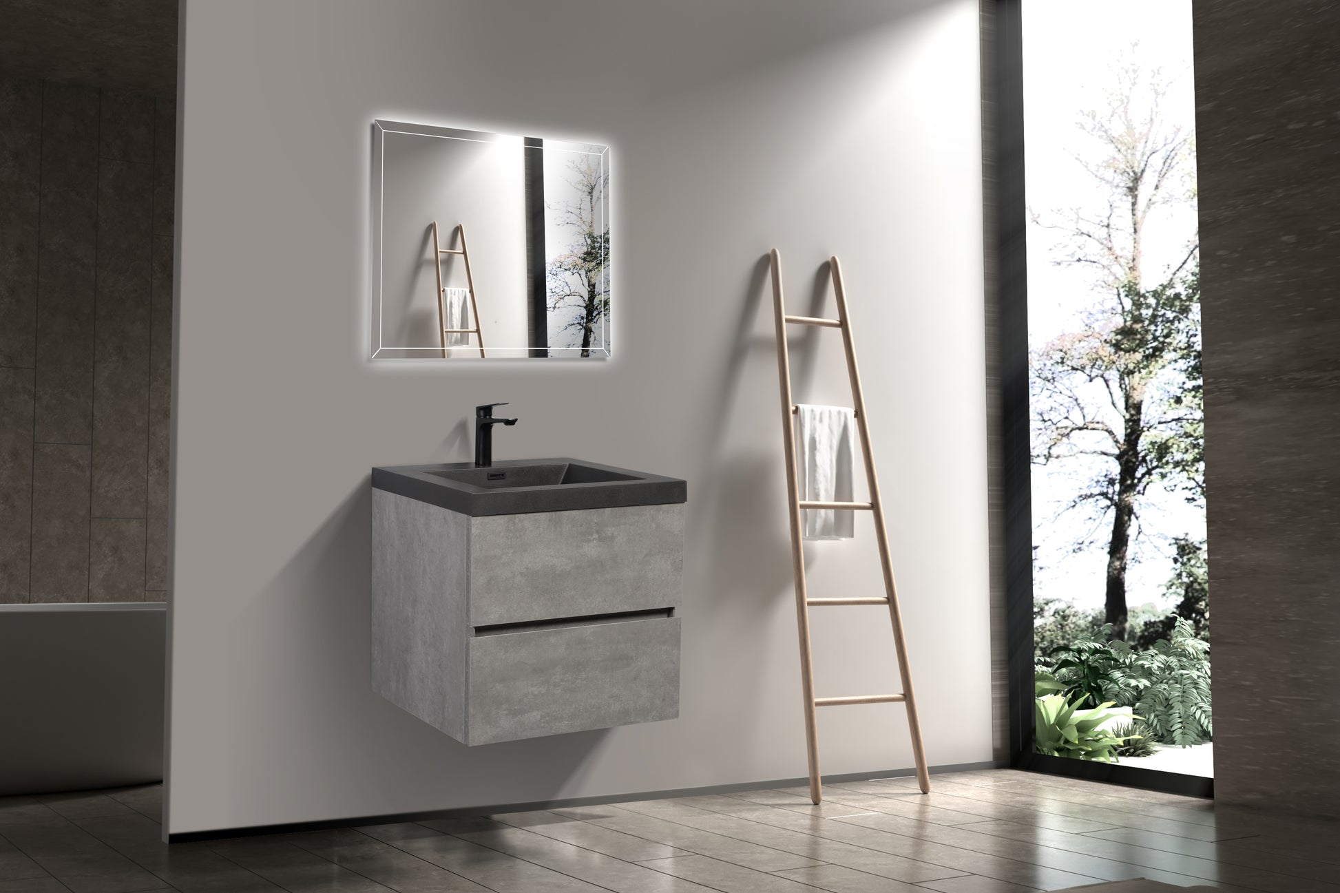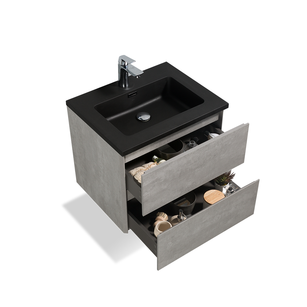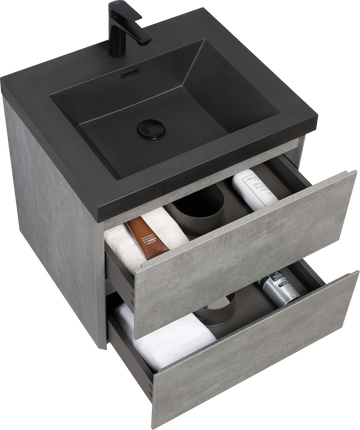 24" Floating Bathroom Vanity With Sink, Modern Wall Mounted Bathroom Storage Vanity Cabinet With Black Quartz Sand Top Basin And Soft Close Drawers, 24V12 24Gr Grey 24Vedi 24B 2 Grey Ash Wall Mounted Plywood