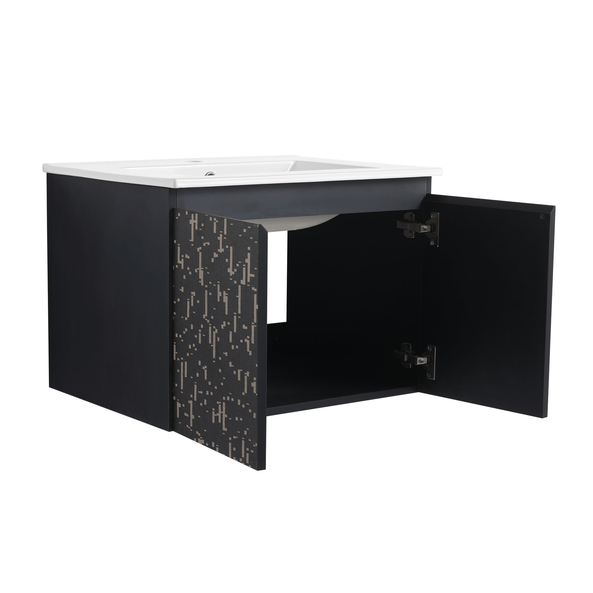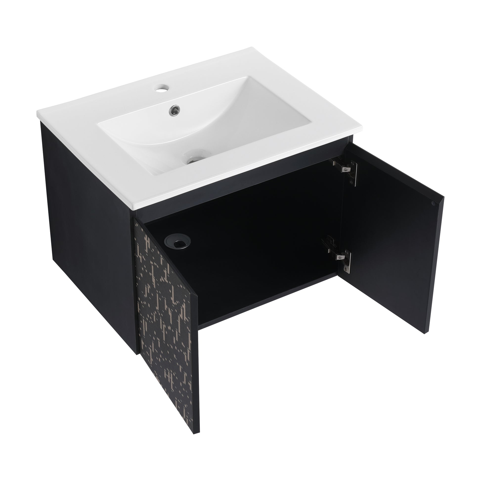 24'' Floating Wall Mounted Bathroom Vanity With Ceramics Sink & Soft Close Cabinet Door, Kd Package Black 2 Soft Close Doors Bathroom Wall Mounted Modern Plywood