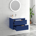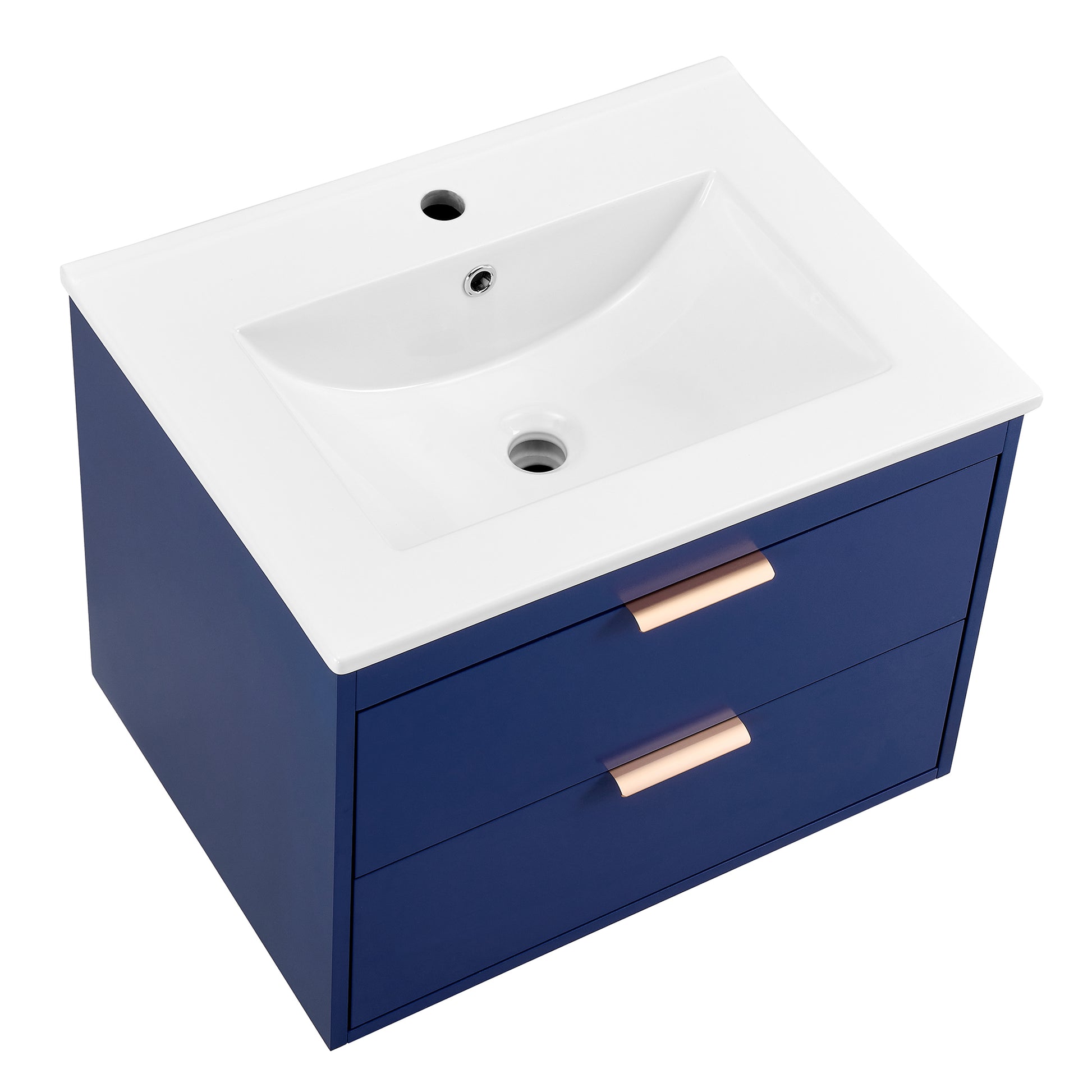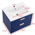24" Floating Wall Mounted Bathroom Vanity With White Ceramic Sink And Drawer Storage Blue Wall Mounted Ceramic Mdf