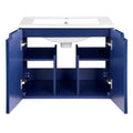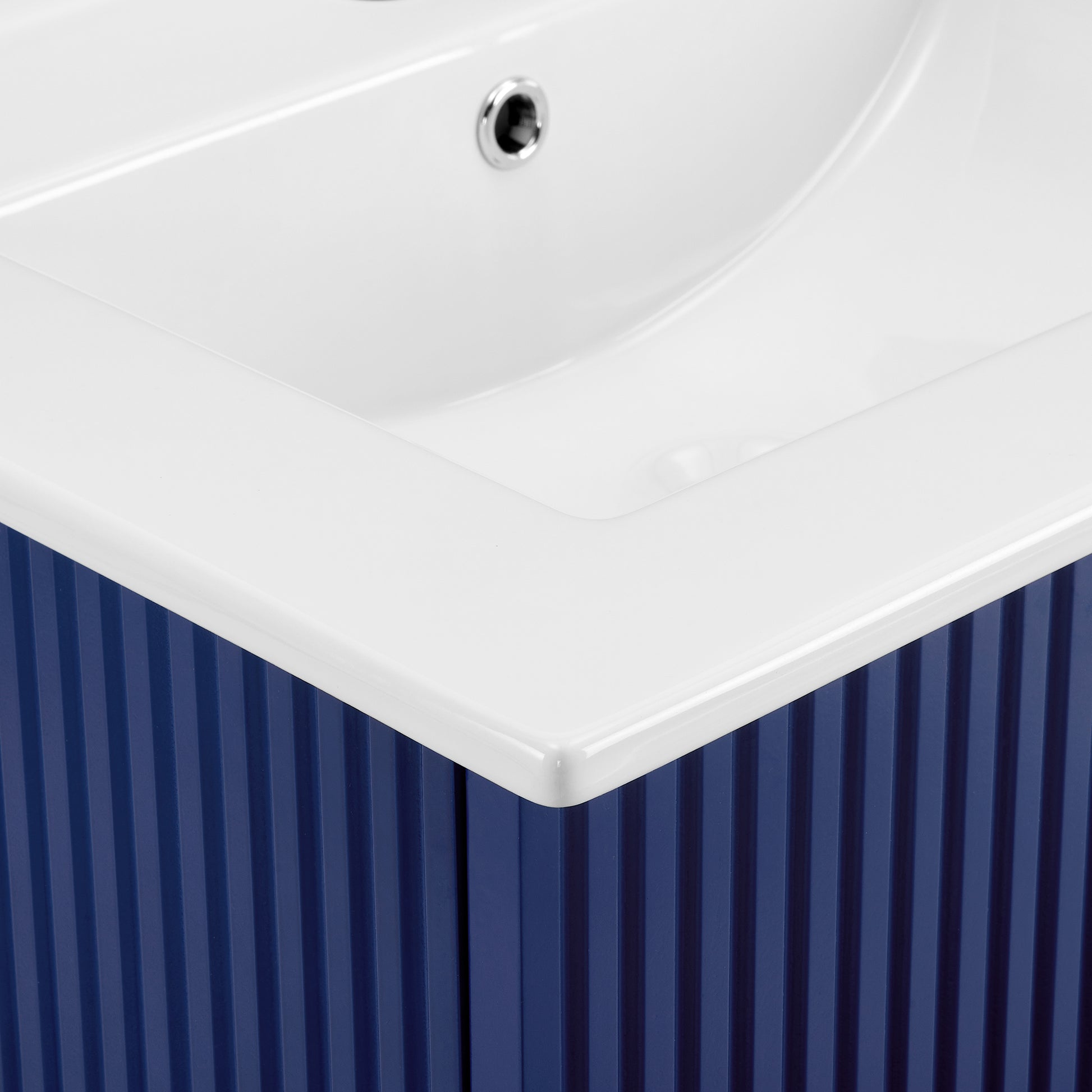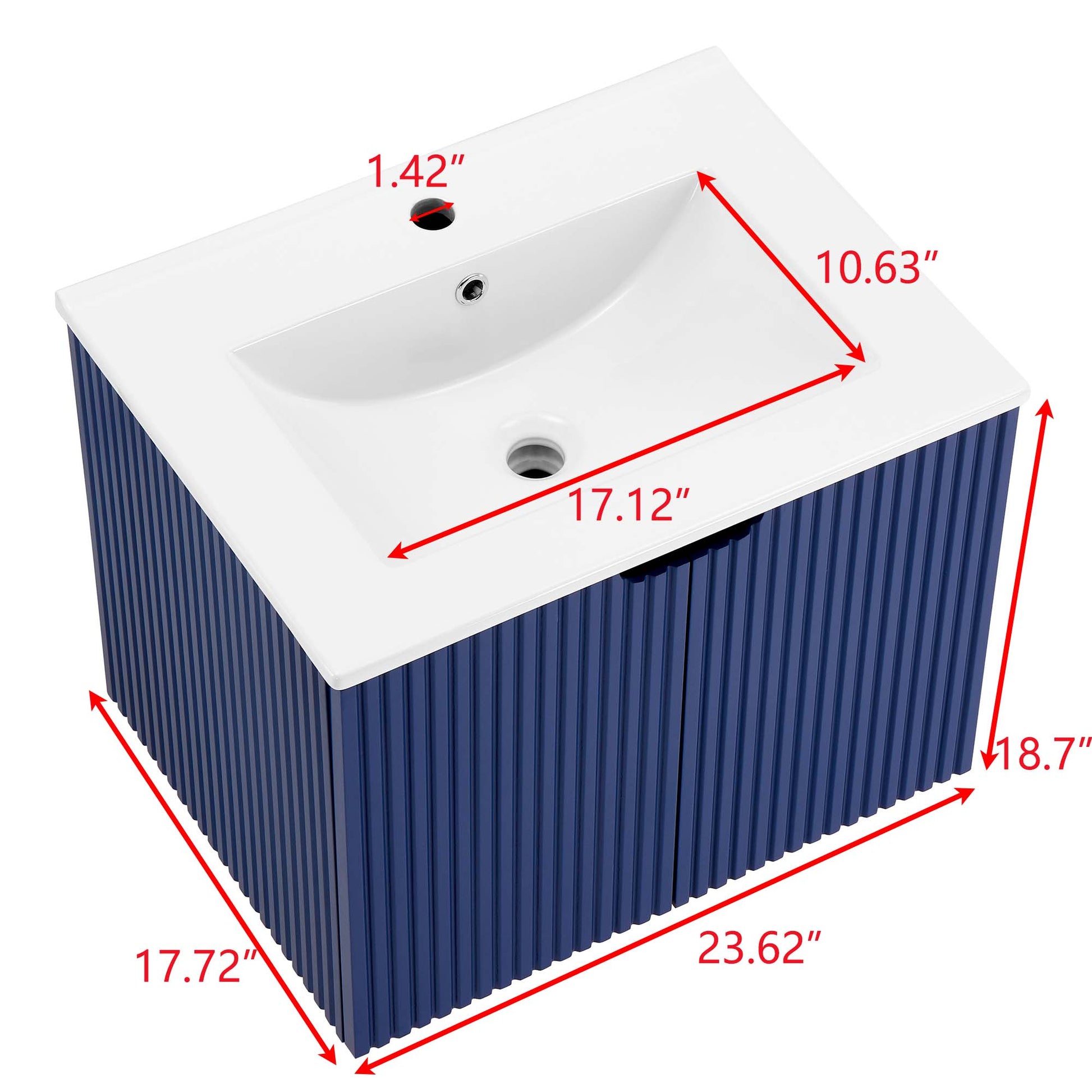 24" Floating Wall Mounted Bathroom Vanity With White Porcelain Sink And Soft Close Doors Blue Ceramic Mdf