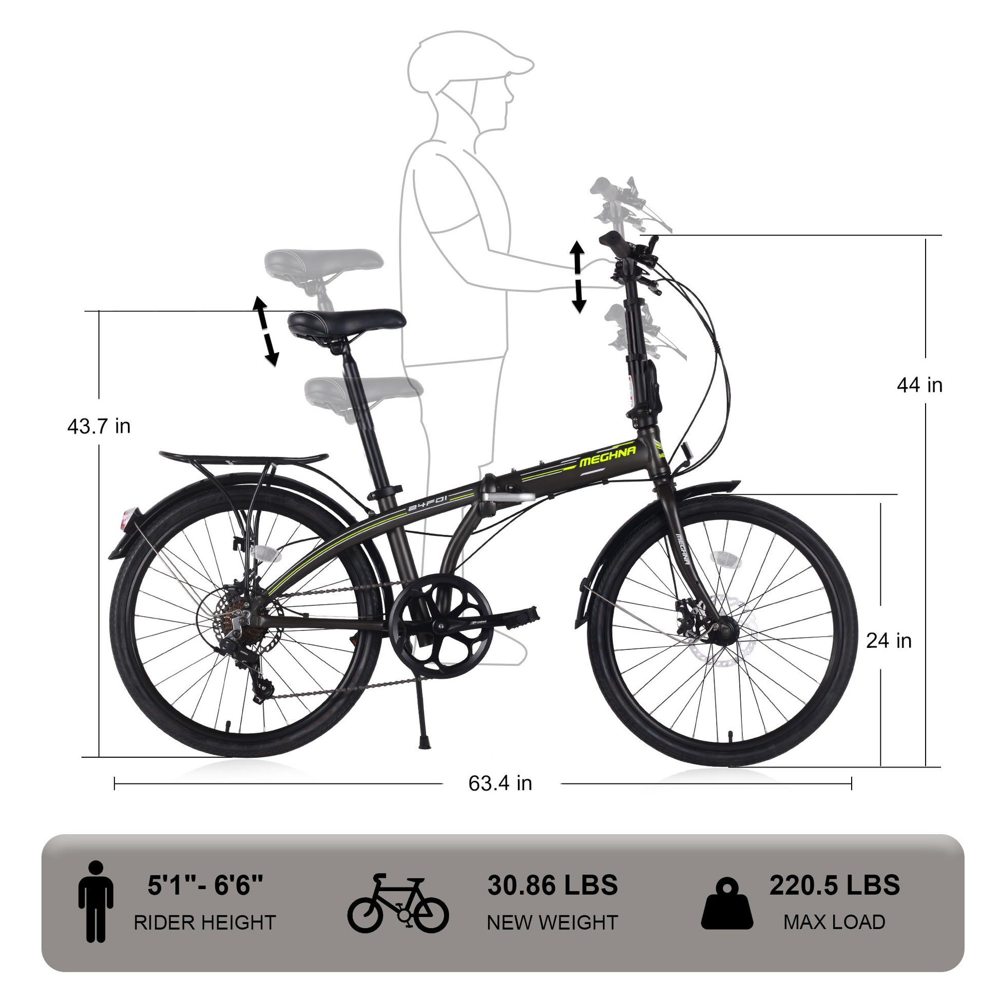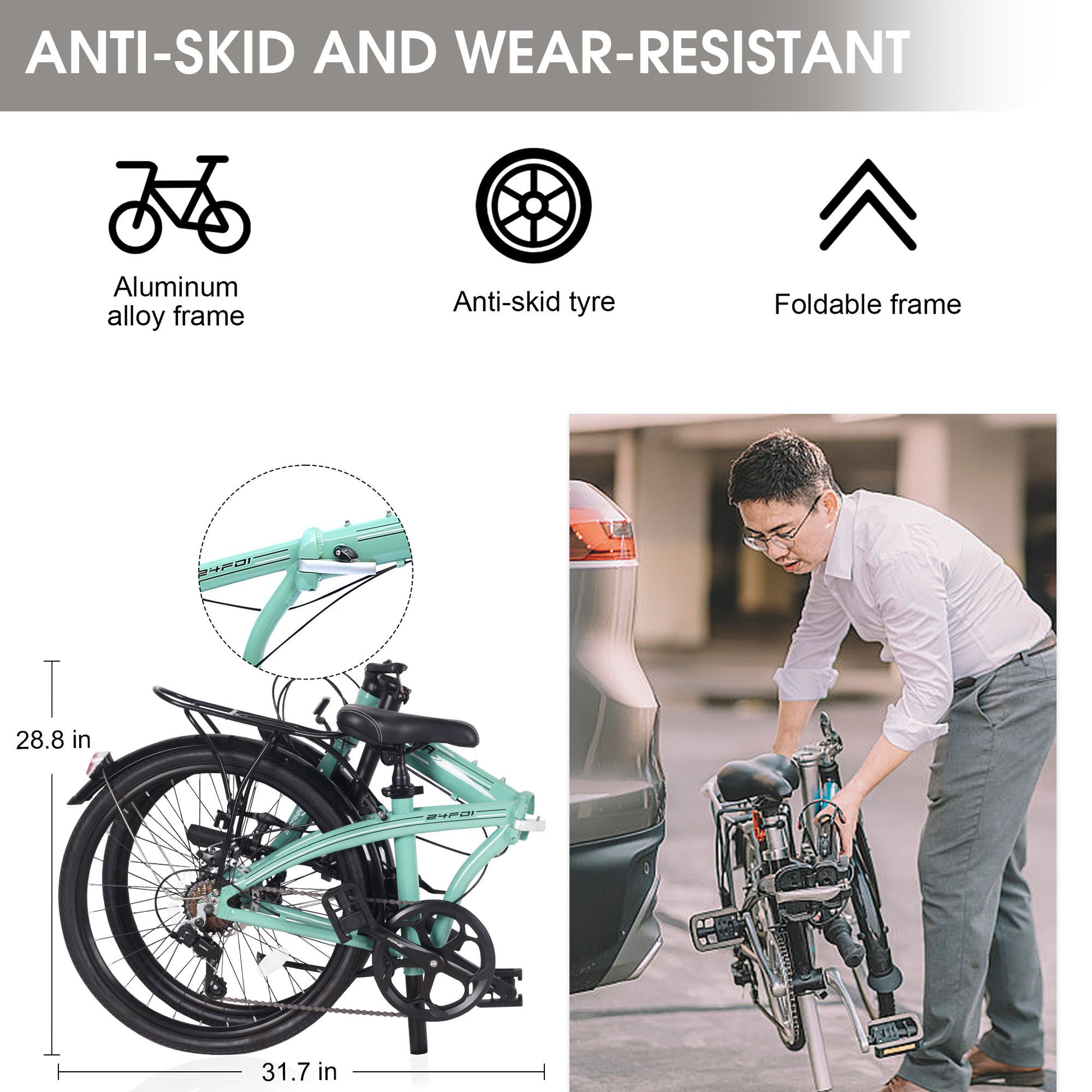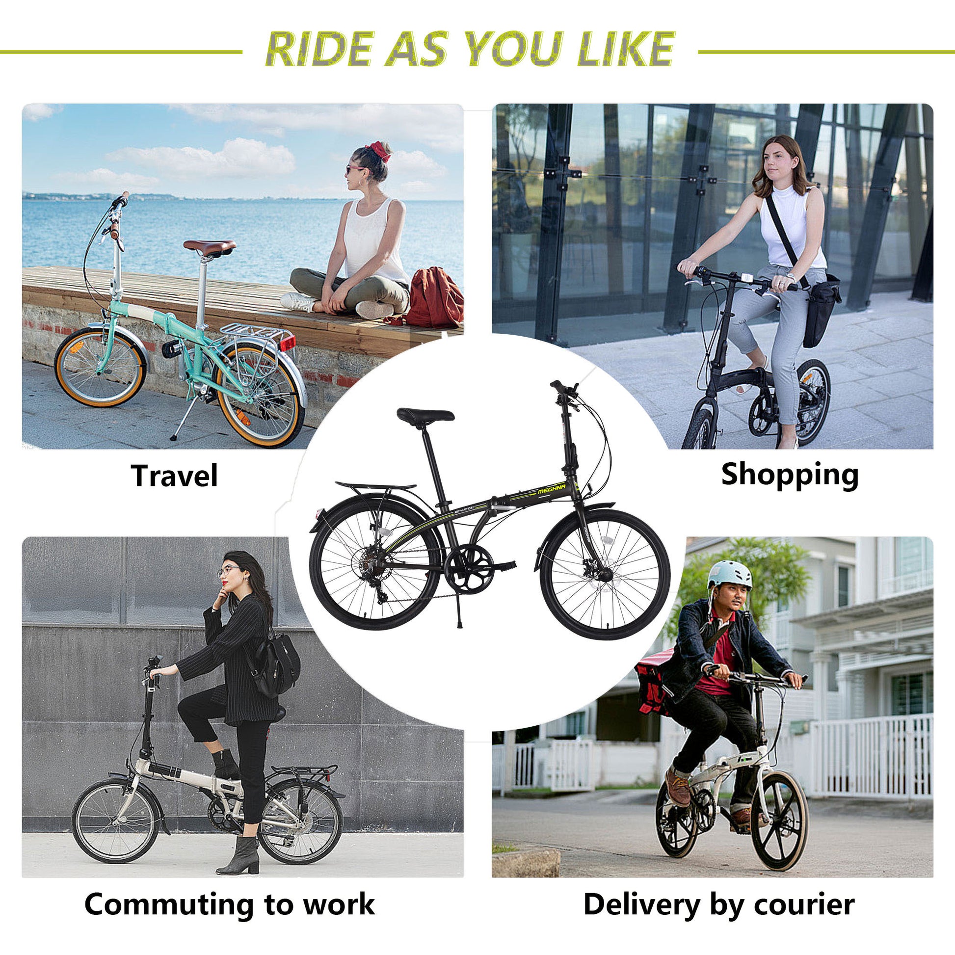 24" Folding City Bike Aluminum Frame 7 Speed Folding Bike Cycling Dark Grey Garden & Outdoor American Design Aluminium Alloy