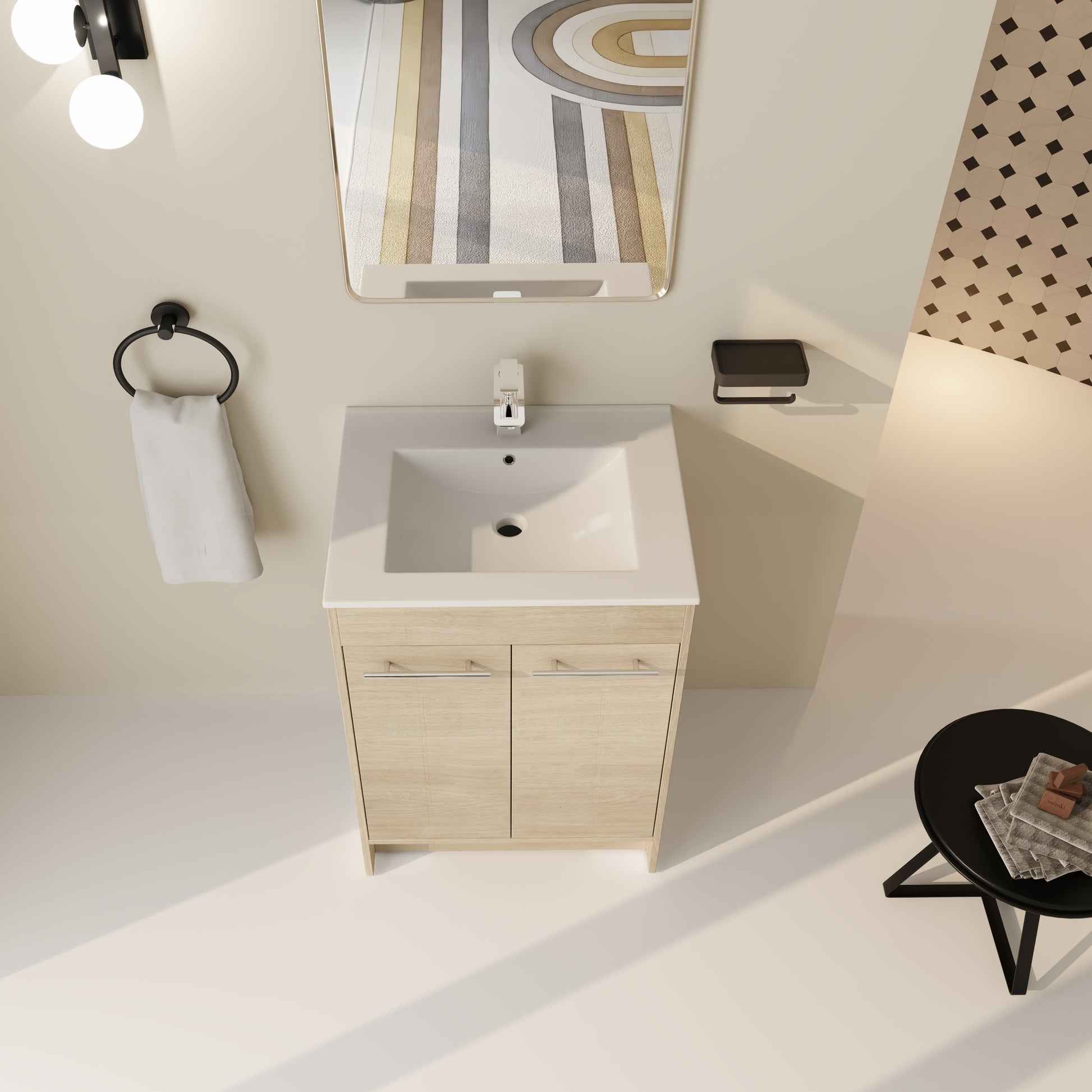 | Package includes | - 1x Vanity Cabinet; - 1x Ceramic Sink; - 2x Metal Handle |
