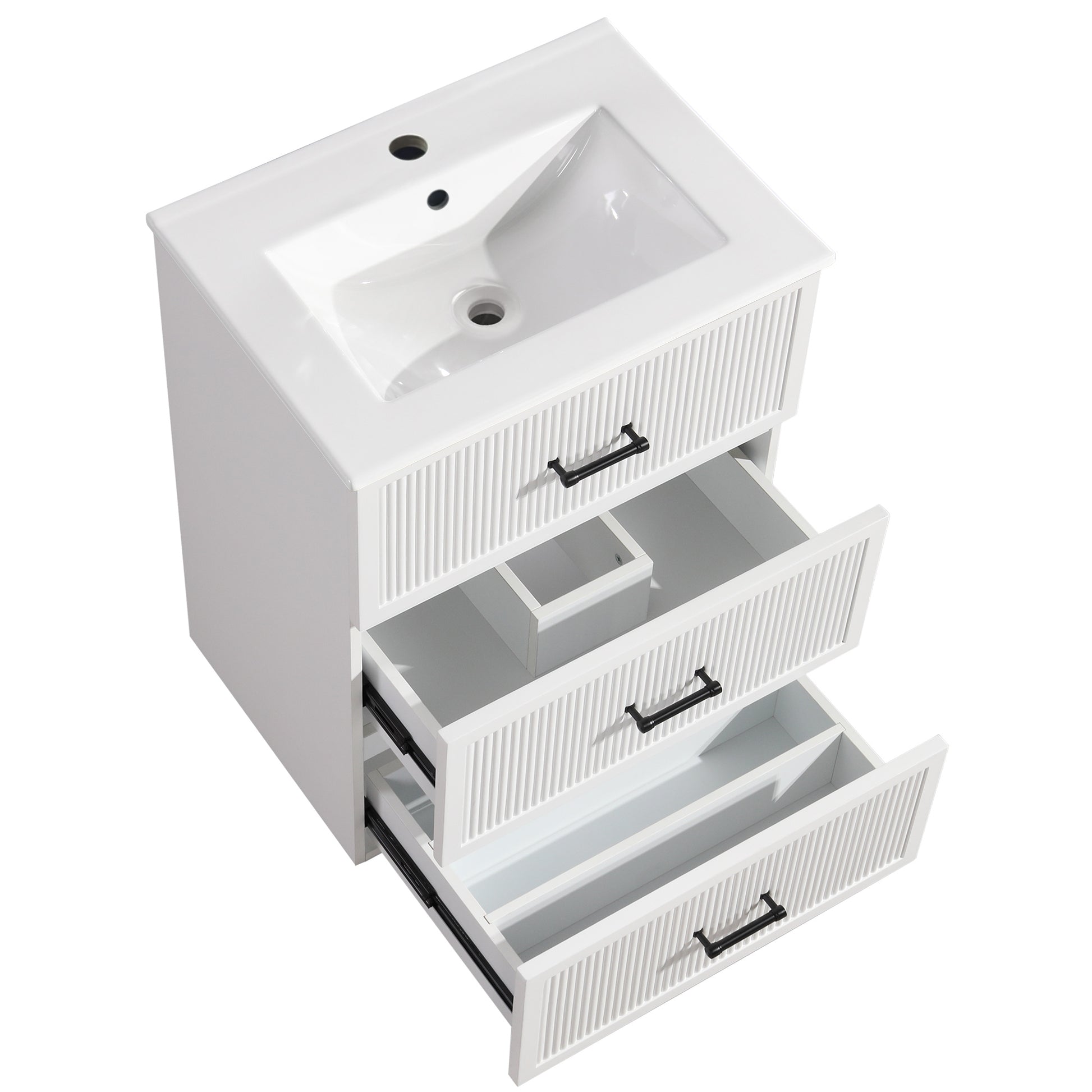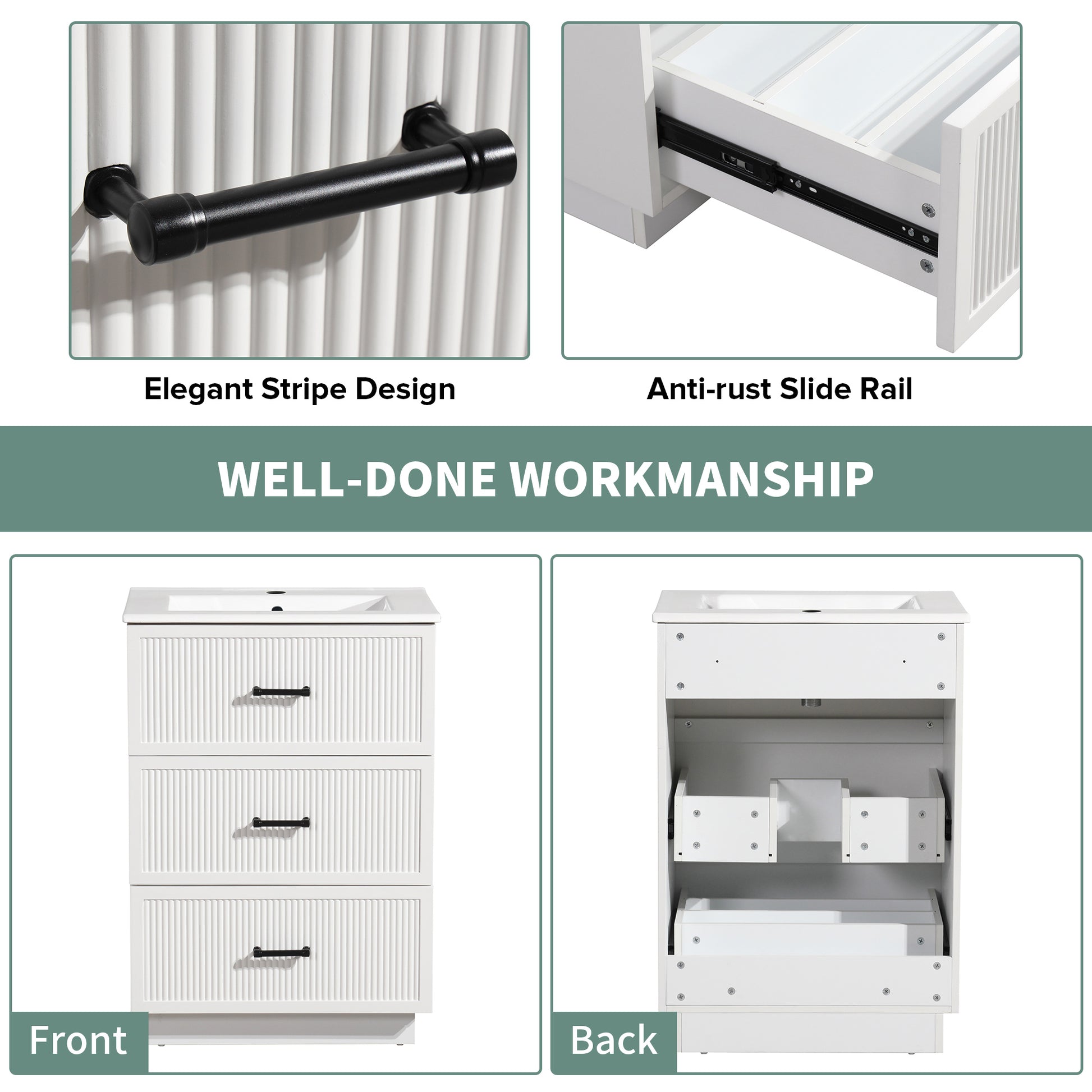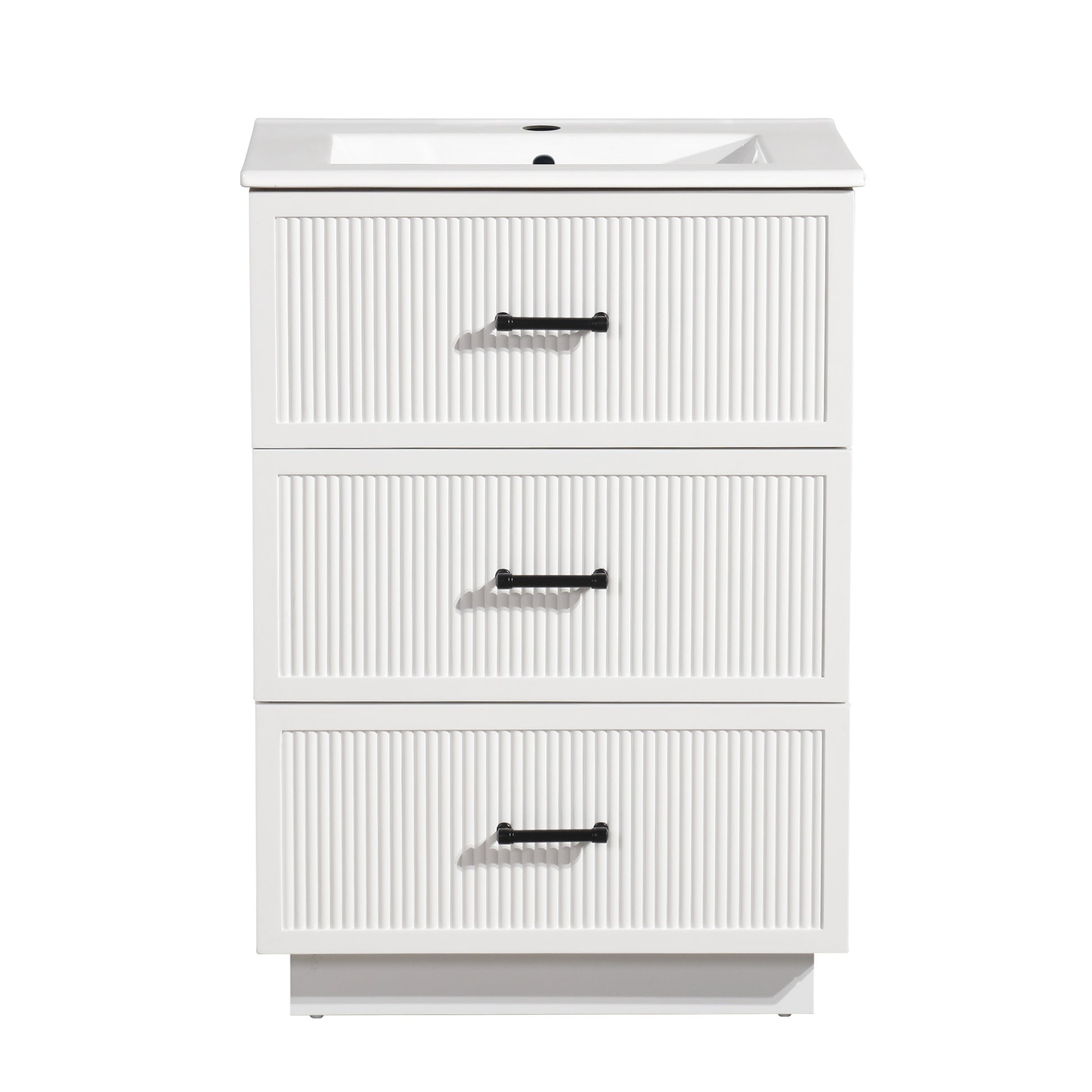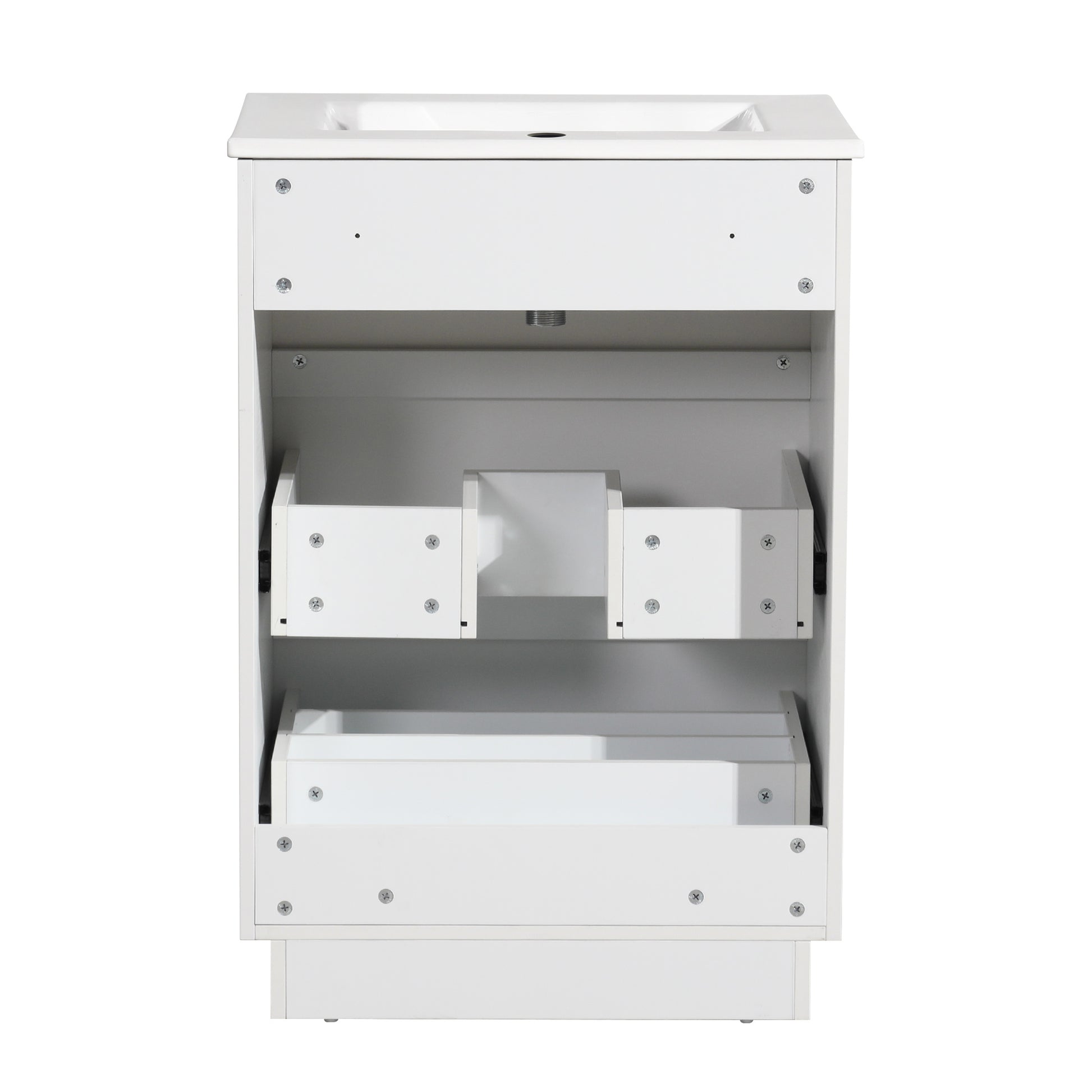 24 Inch Bathroom Vanity With Ceramic Sink Set, Modern Freestanding Bathroom Storage Cabinet With 2 Drawers, Floor Standing Bath Vanity Combo, White White Mdf