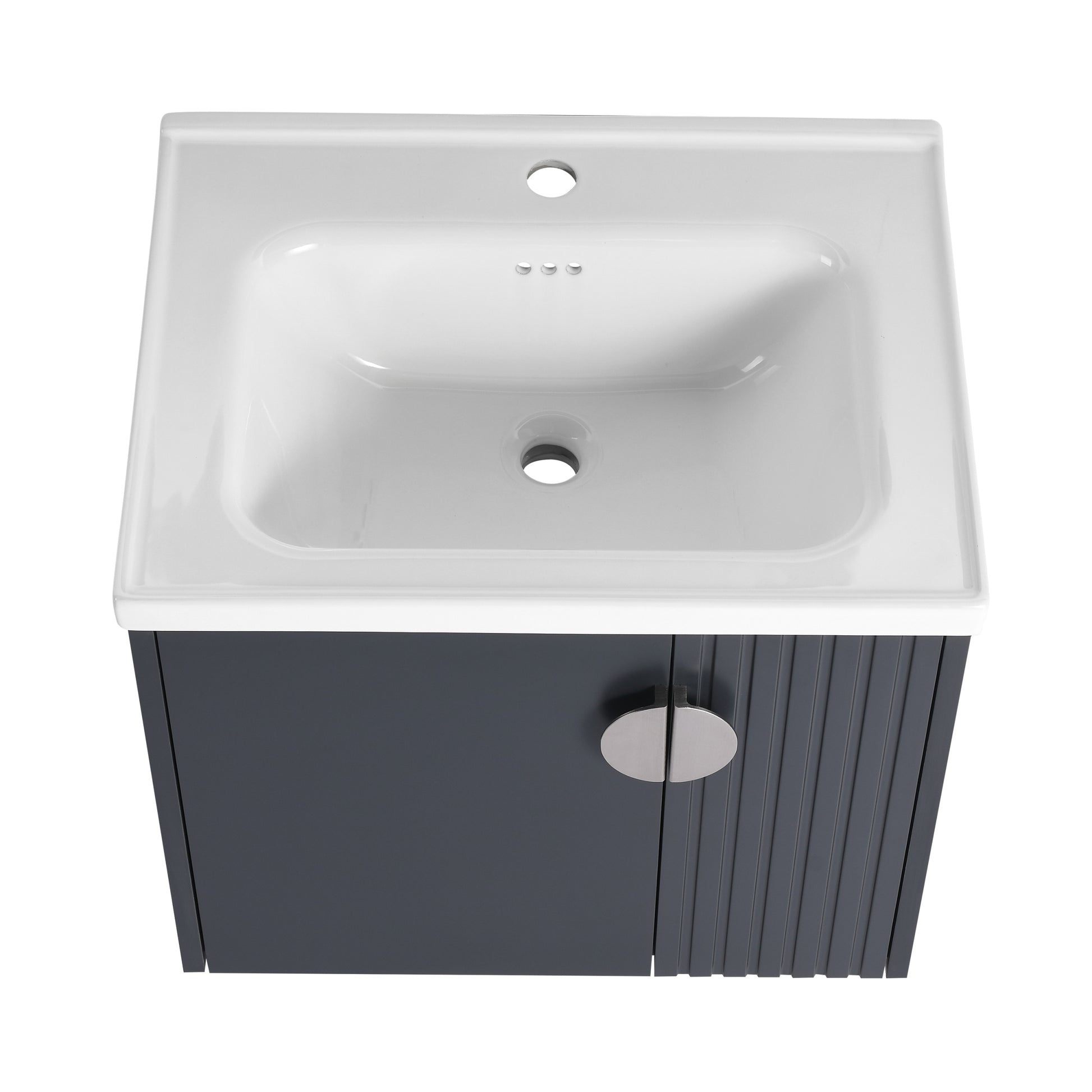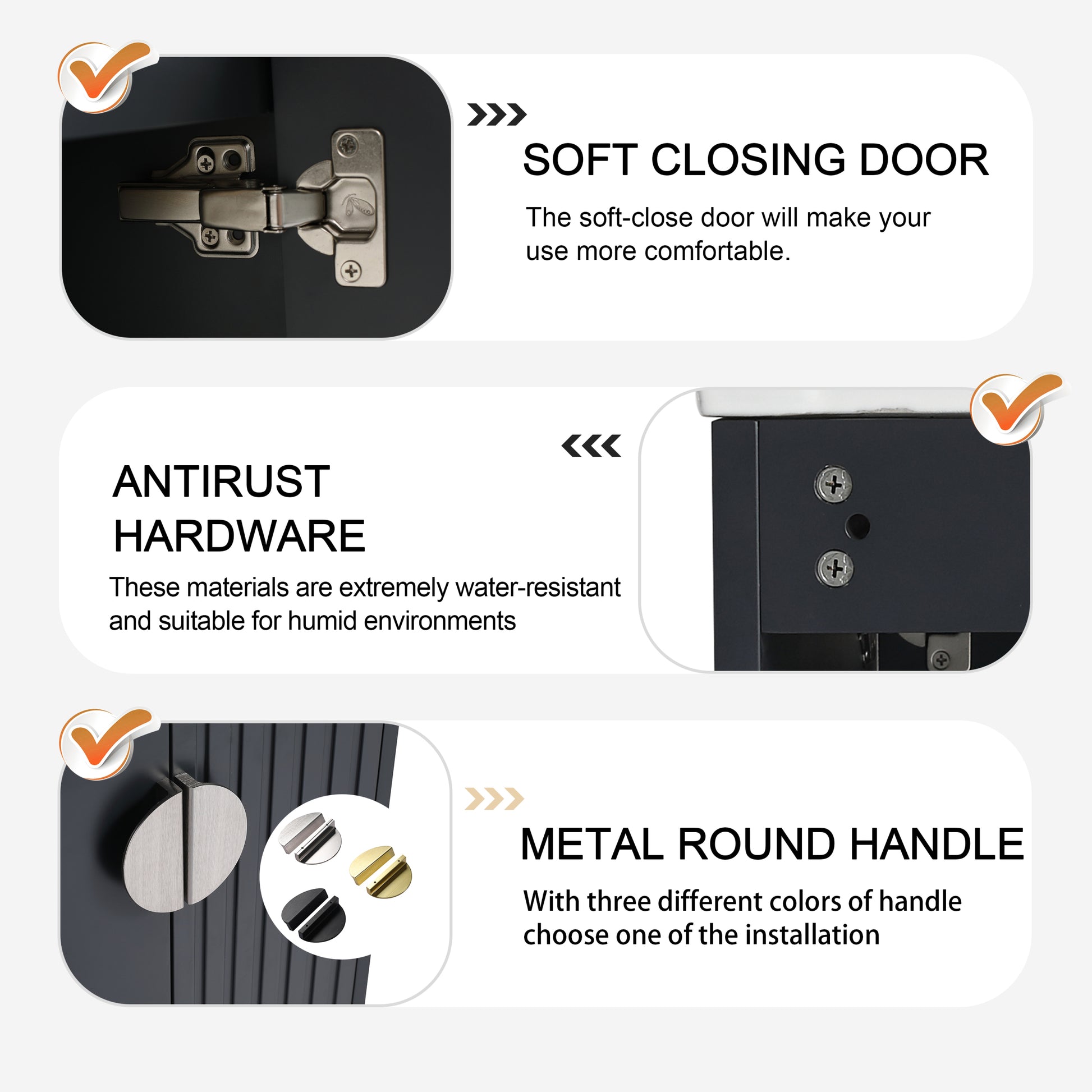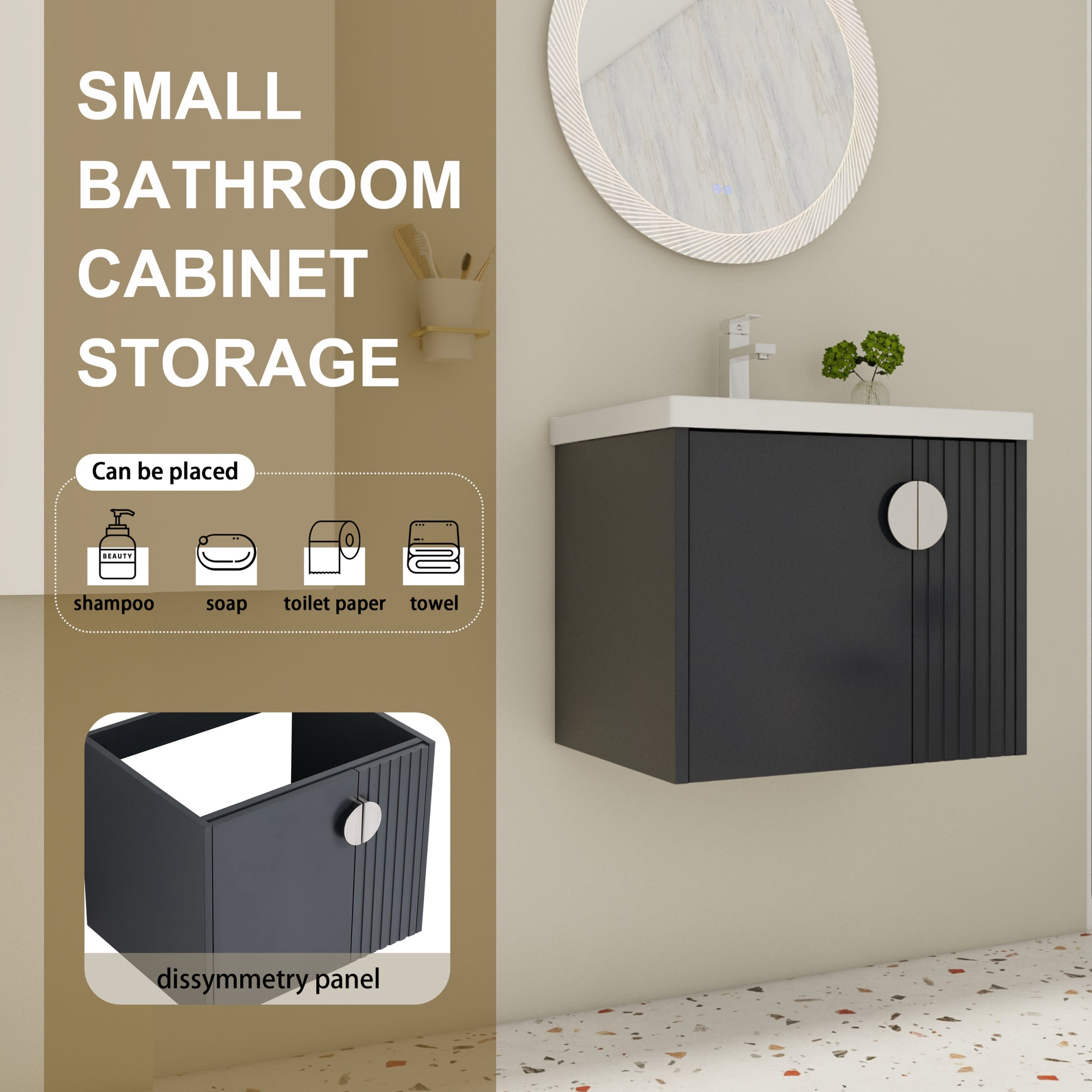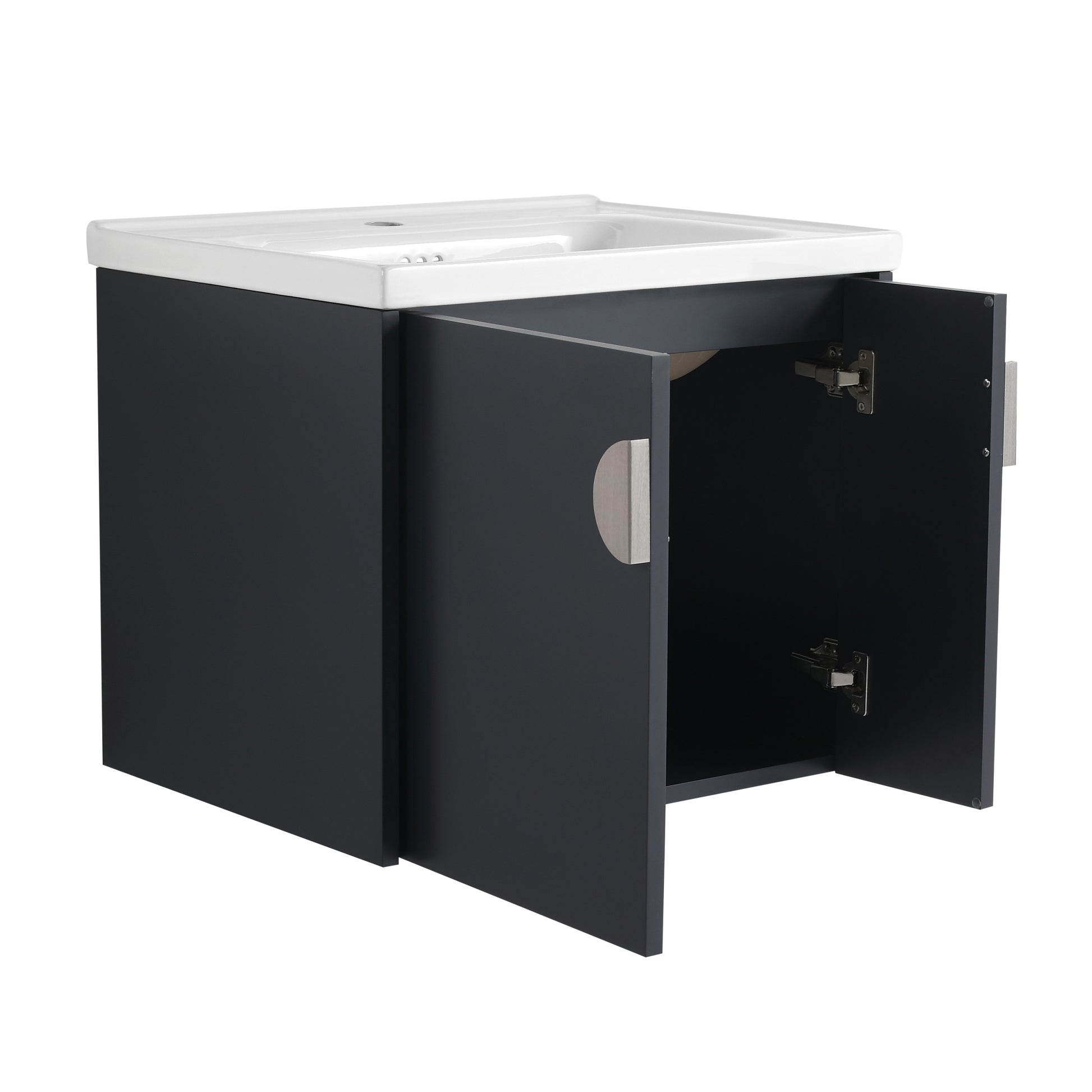 24 Inch Bathroom Vanity With Sink, For Small Bathroom, Bathroom Vanity With Soft Close Door Black 2 Bathroom Wall Mounted Modern Plywood