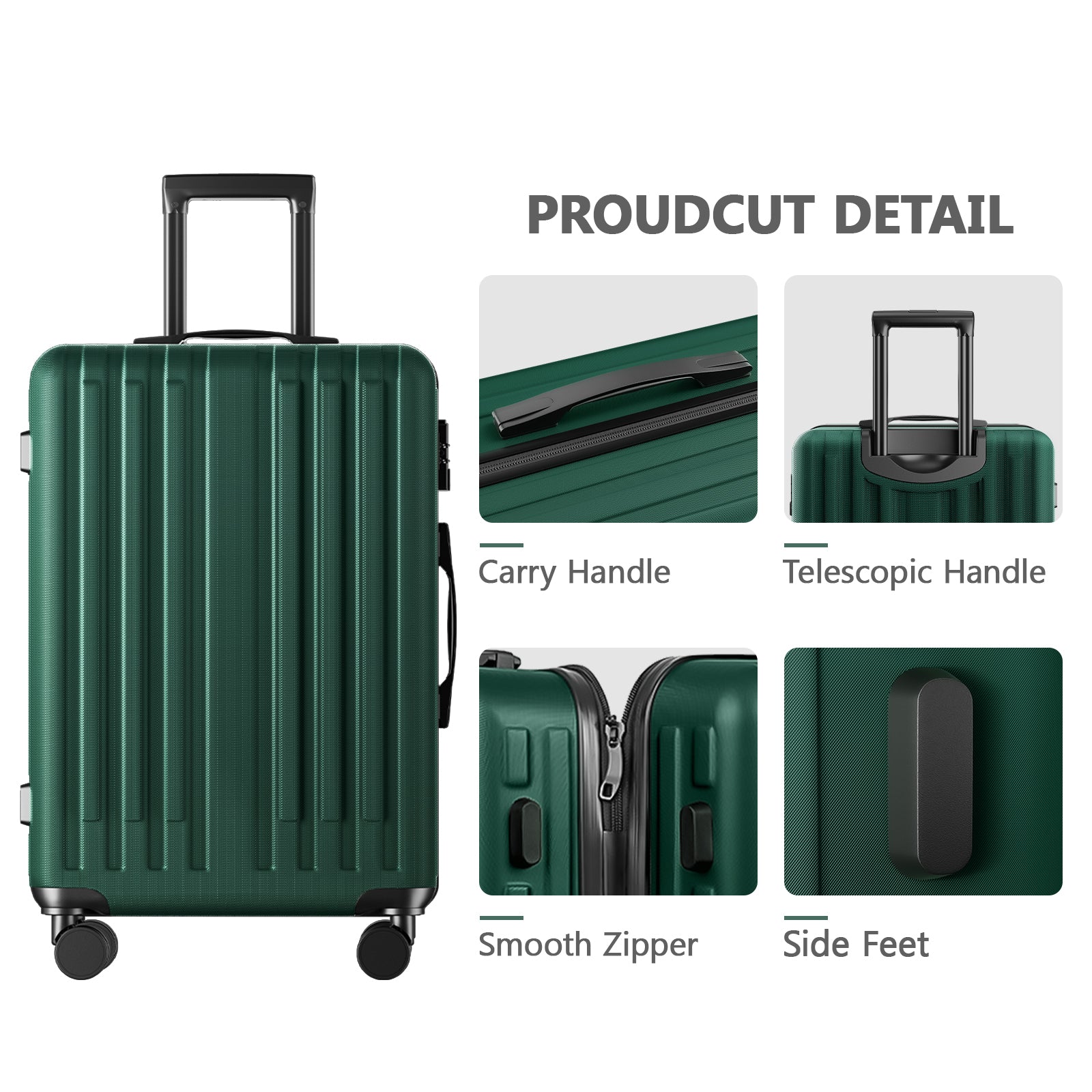 24 Inch Checked Luggage With 360 Spinner Wheels Suitcases With Hard Sided Lightweight Abs Material Green Abs