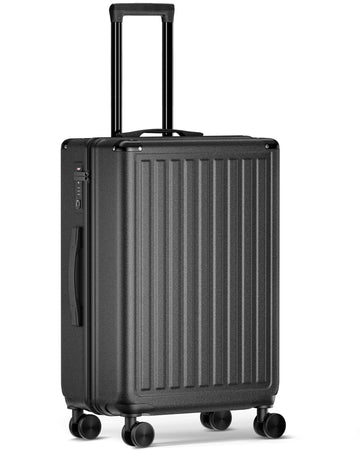 24 Inch Checked Travel Luggage With Tsa Lock&Spinner Wheels, Abs Pc Hardside Lightweight Suitcase Black Abs Pc