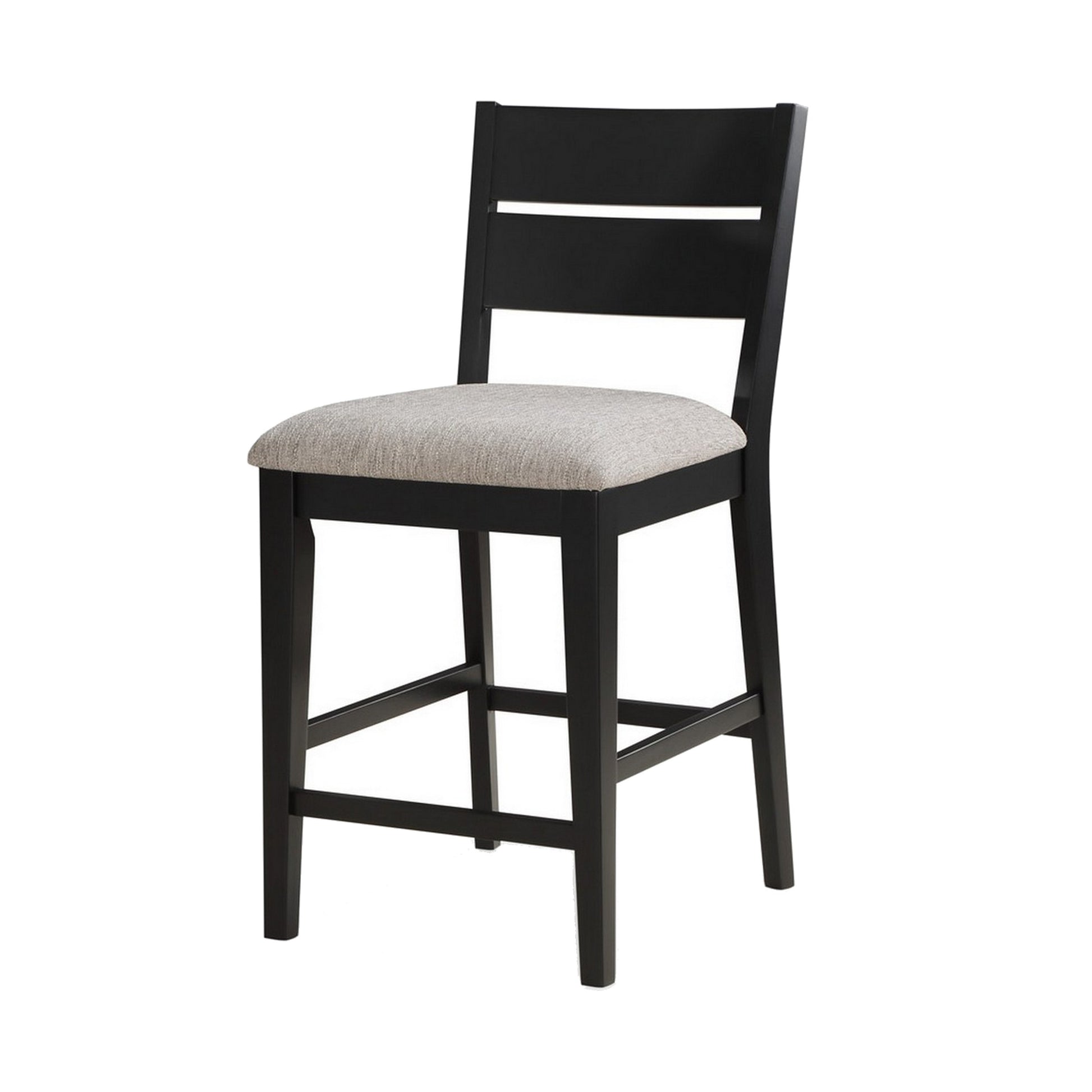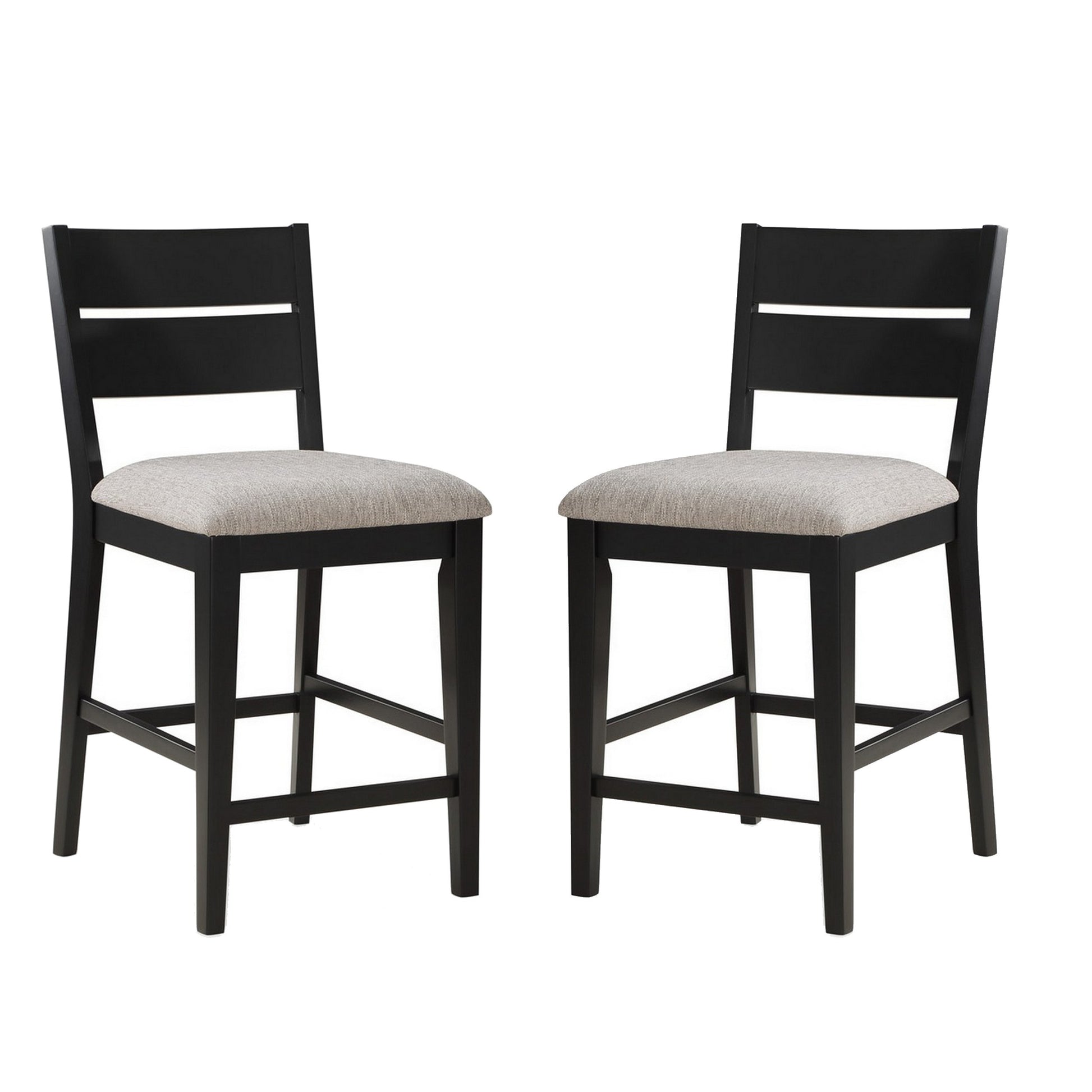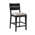 24 Inch Counter Height Chair, Set Of 2, Seat Cushions, Gray Fabric, Black Grey Black Wood Fabric