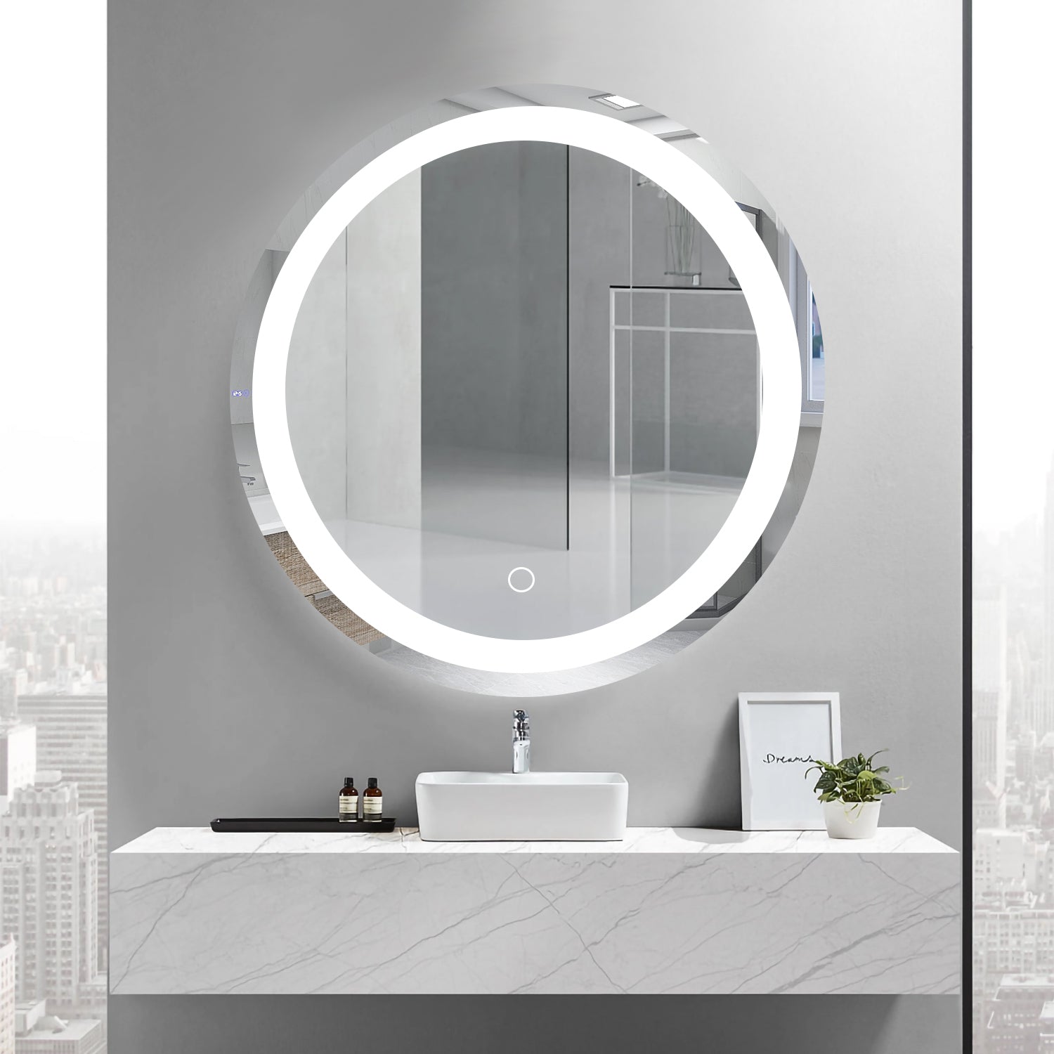 24 Inch Led Round Bathroom Mirror Transparent Glass