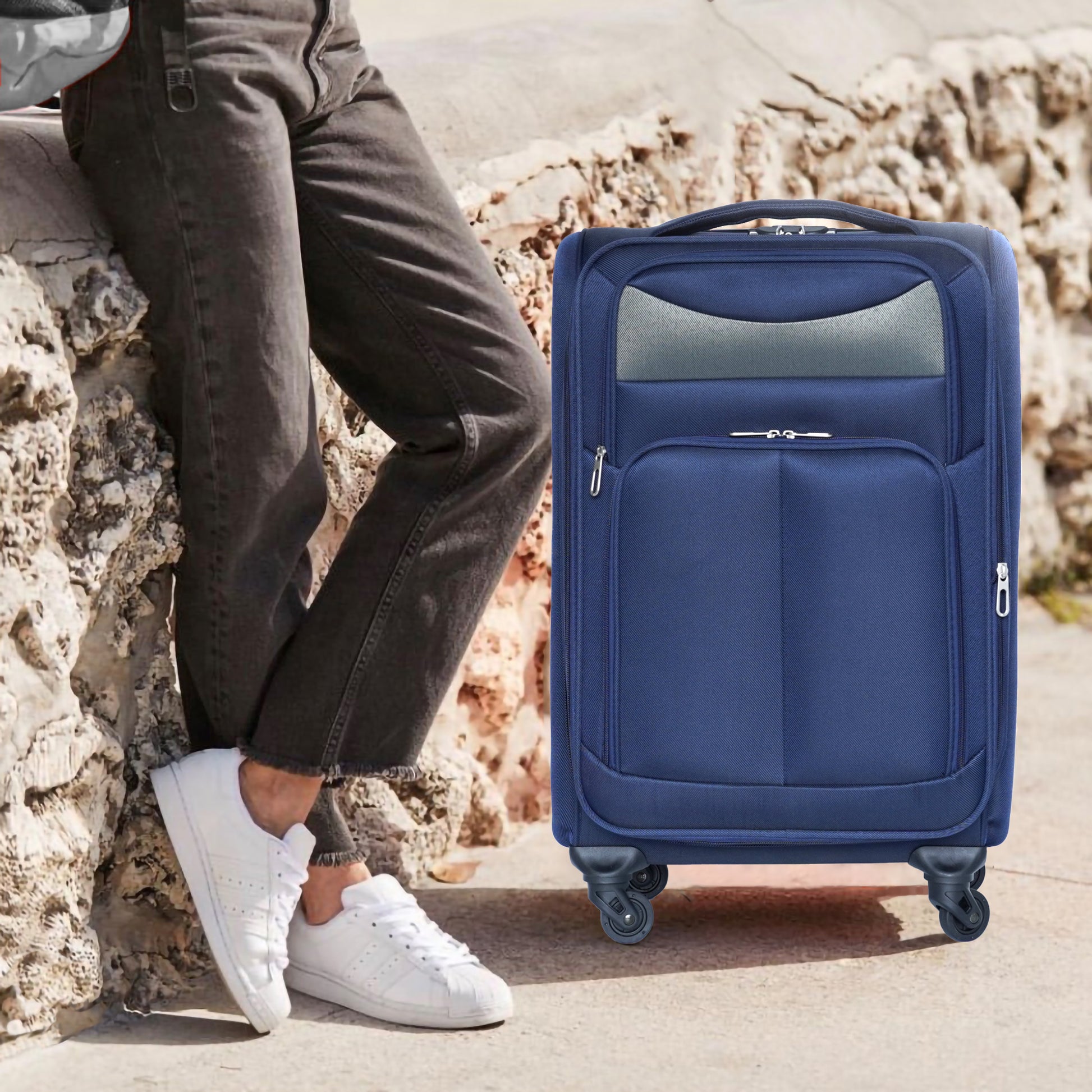 24 Inch Suitcase Navy Blue Blue Oxford Fabric