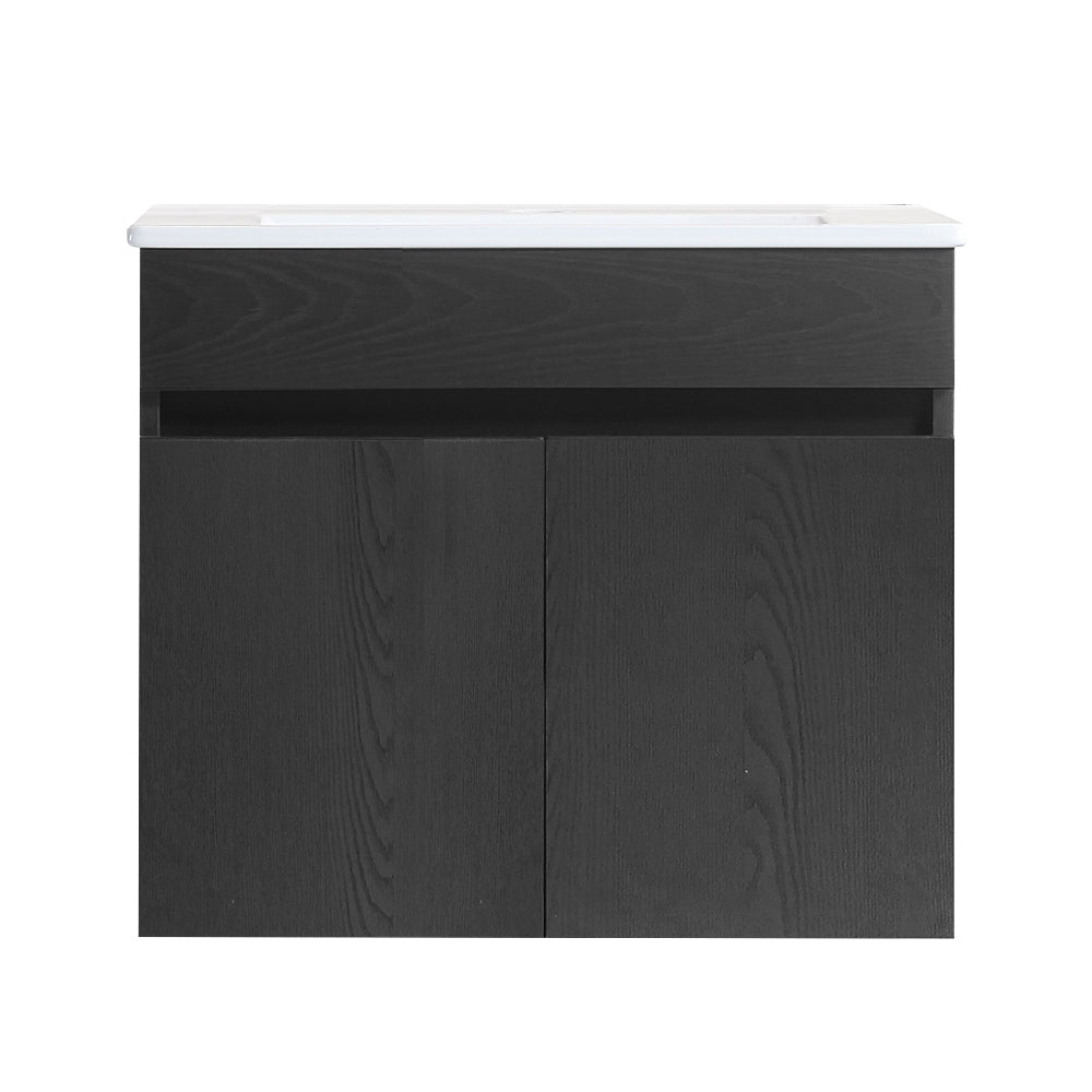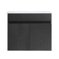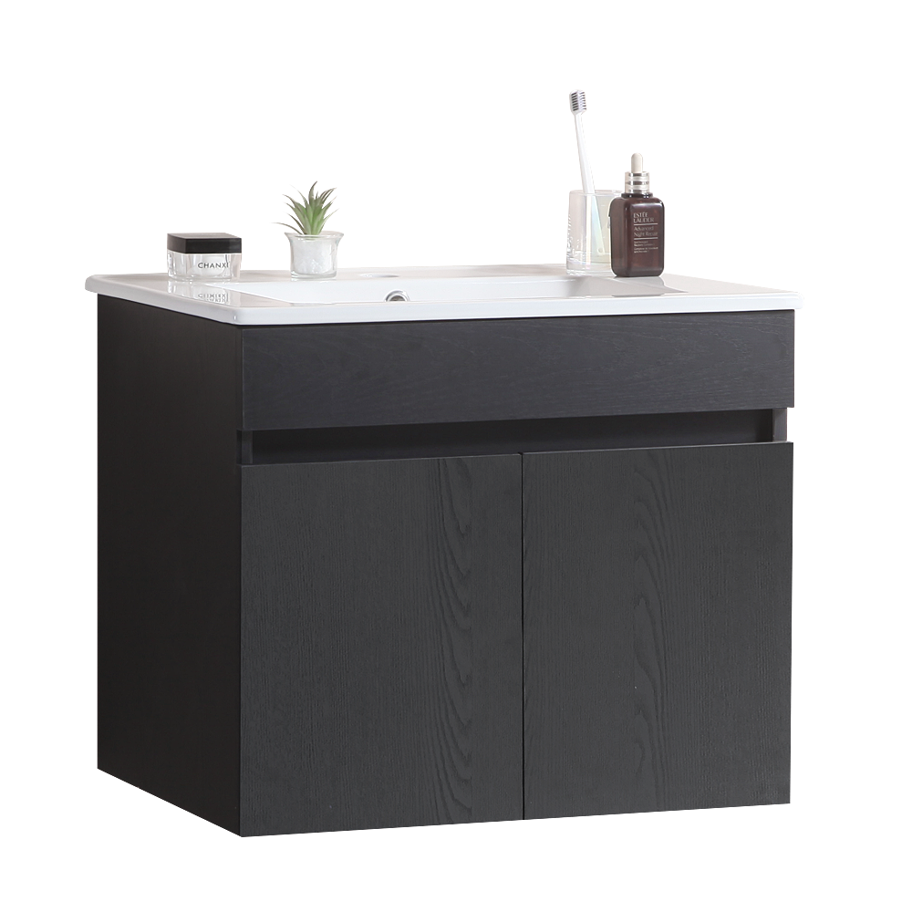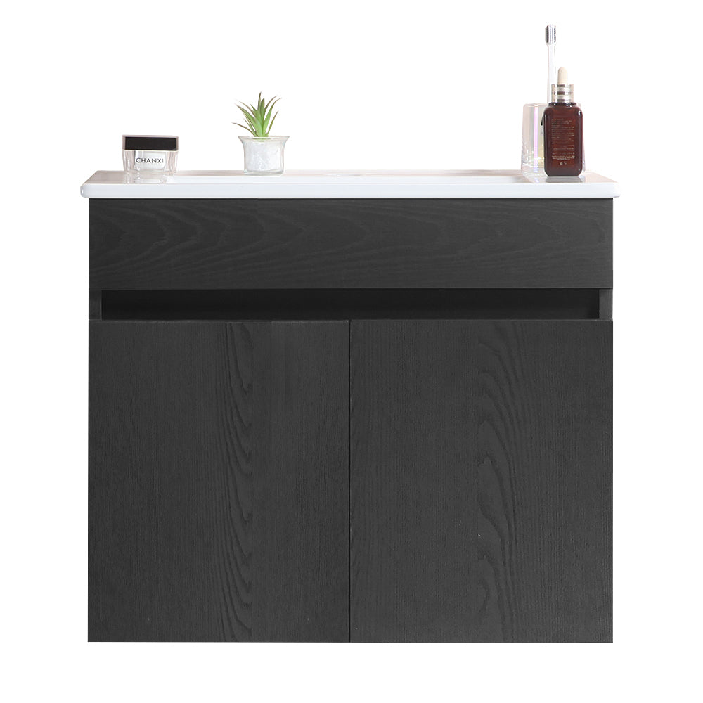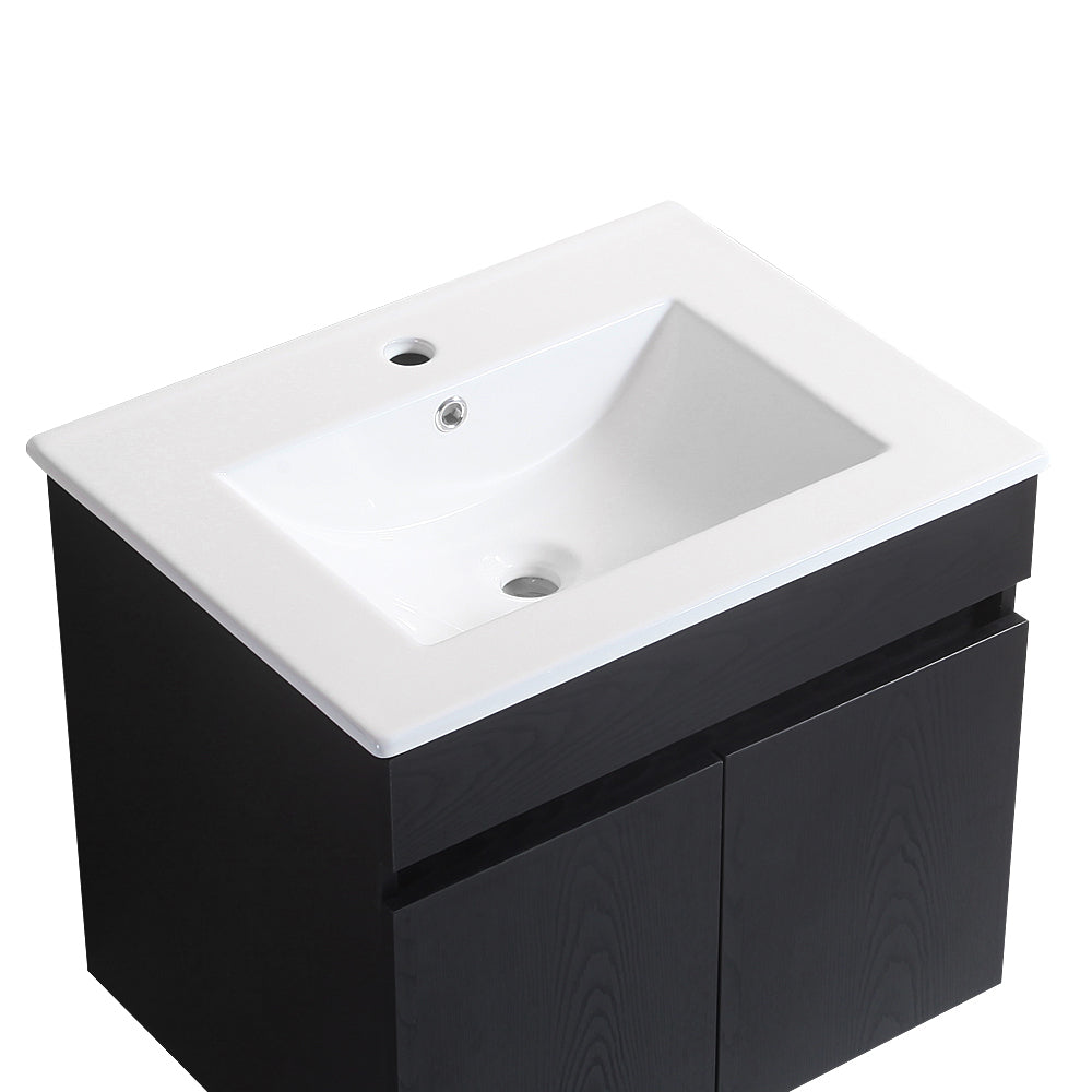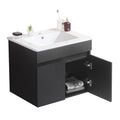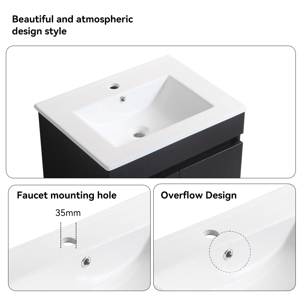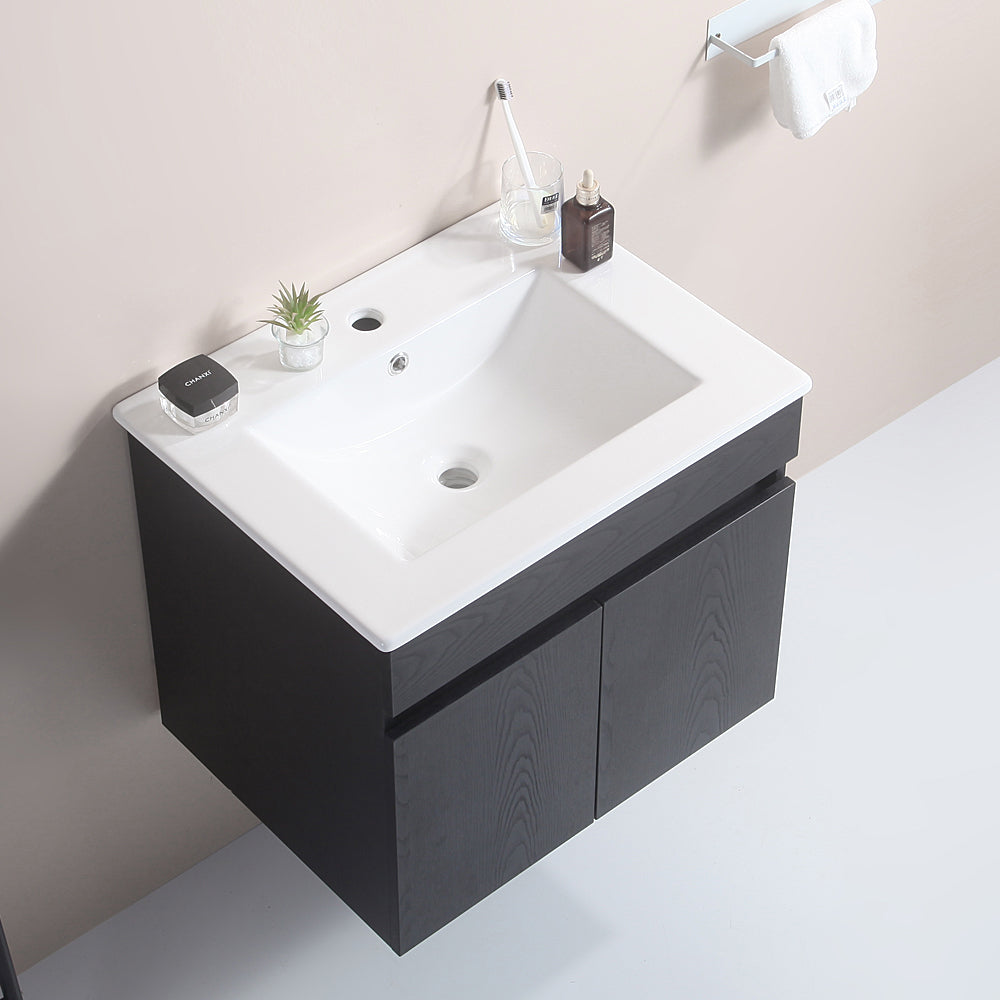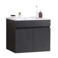 24 Inch Wall Mounted Bathroom Vanity With White Ceramic Basin,Two Soft Close Cabinet Doors, Solid Wood,Excluding Faucets,Black Black Solid Wood