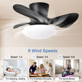 24" Modern Ceiling Fan With Light And Remote,Low Profile Flush Mount Ceiling Fans Indoor,Small Fandelier Ceiling Fans With Dimmable Led Light Fixture For Bedroom Kitchen Black Matt Black Abs Steel Q235