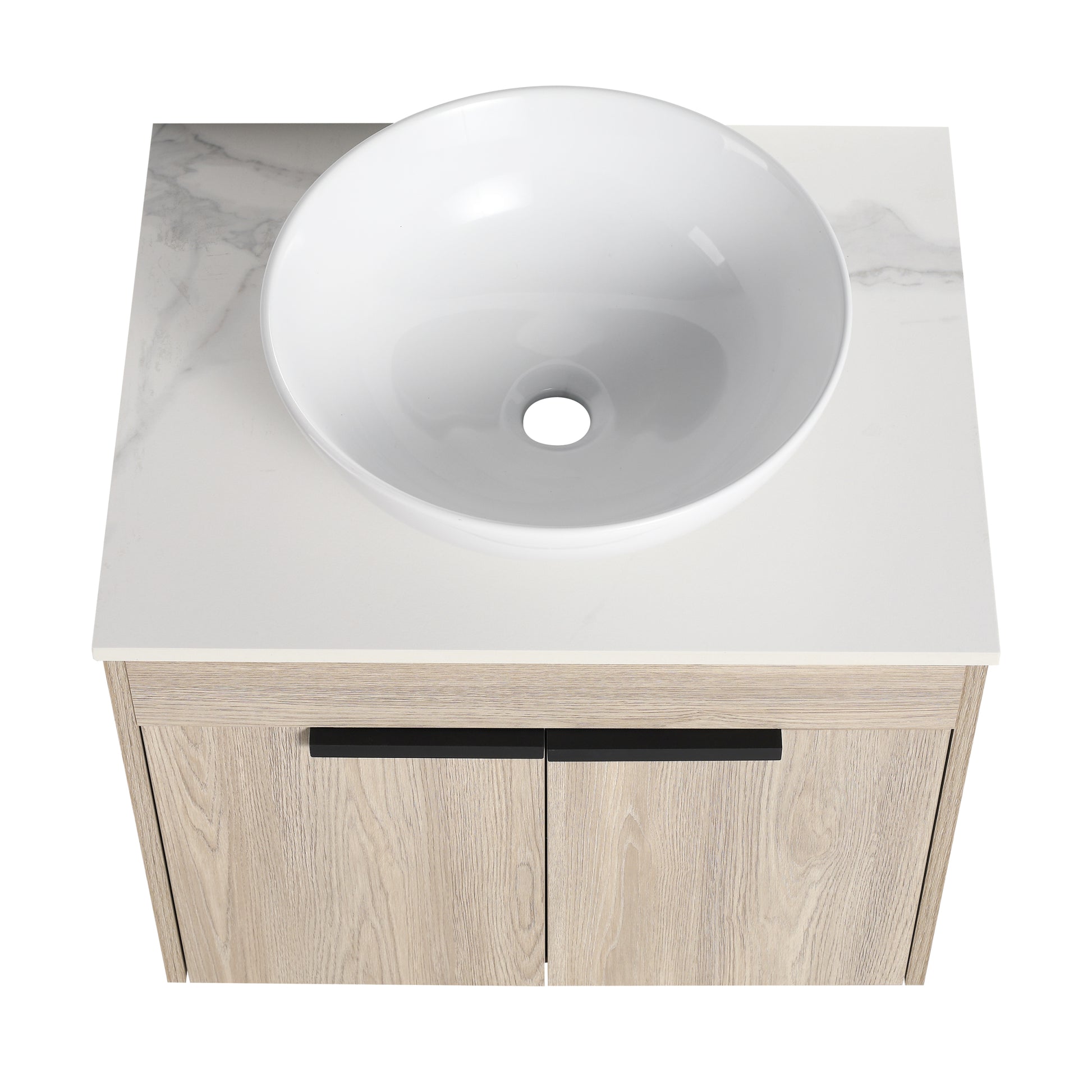 24 " Modern Design Float Bathroom Vanity With Ceramic Basin Set, Wall Mounted White Oak Vanity With Soft Close Door,Kd Packing,Kd Packing,2 Pieces Parcel Top Bab321Mowh White Oak 2 Bathroom Wall Mounted Plywood
