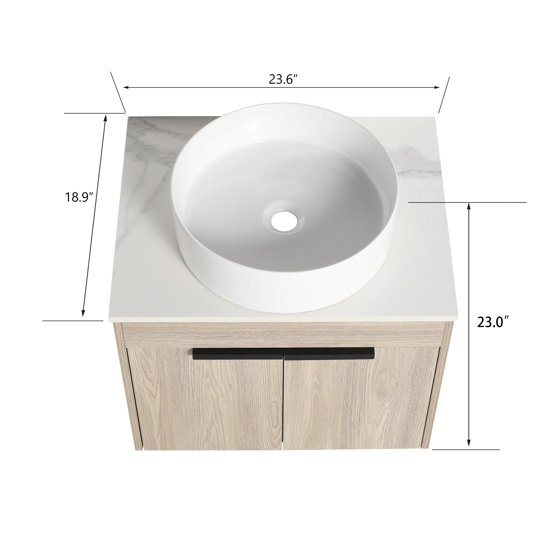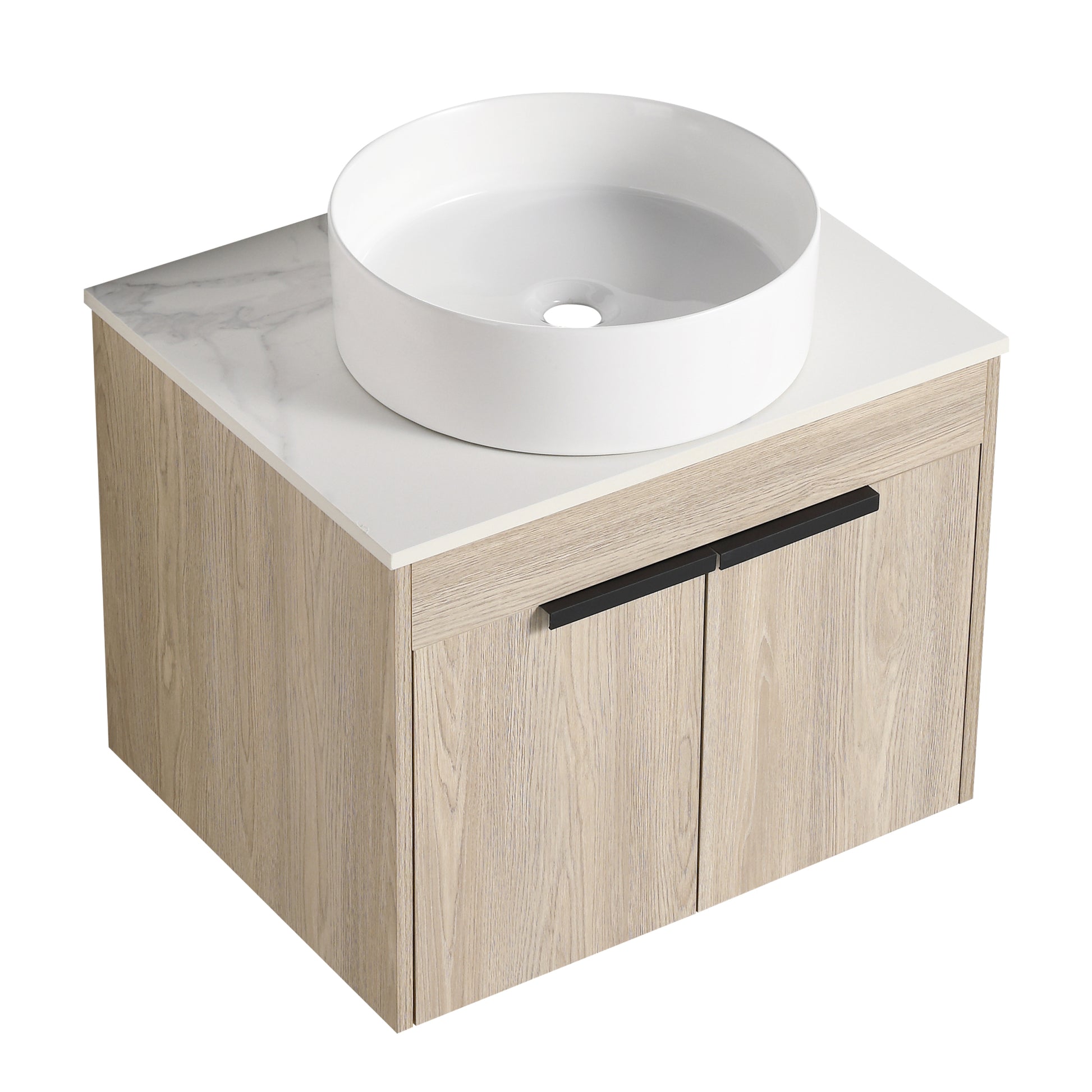 24 " Modern Design Float Bathroom Vanity With Ceramic Basin Set, Wall Mounted White Oak Vanity With Soft Close Door,Kd Packing,Kd Packing,2 Pieces Parcel Top Bab400Mowh White Oak 2 Bathroom Wall Mounted Plywood