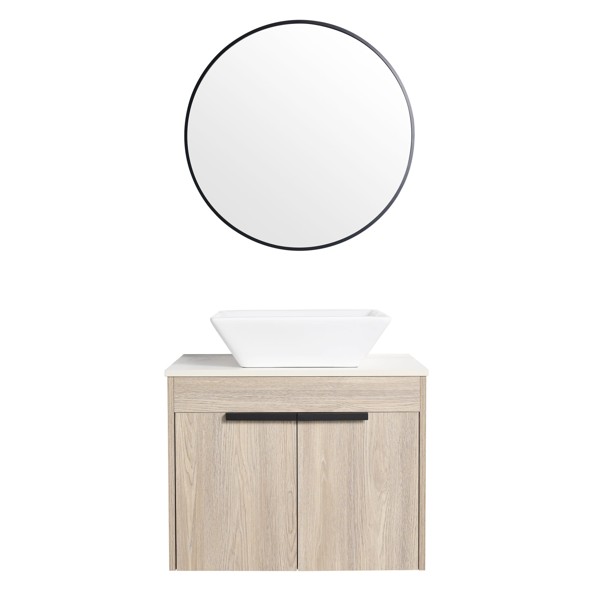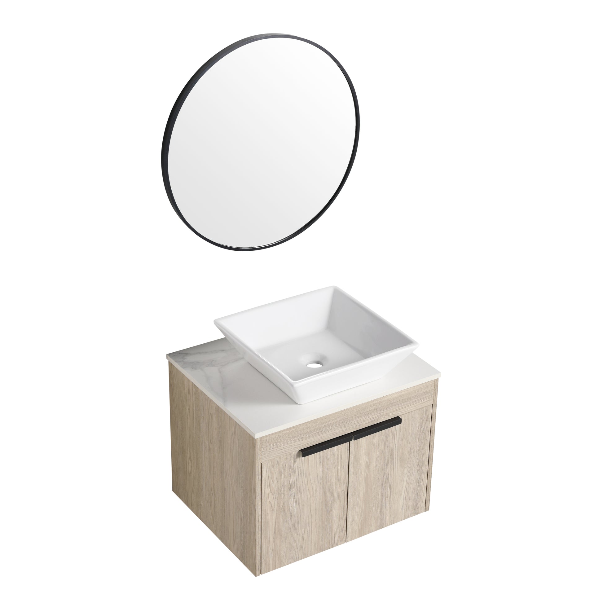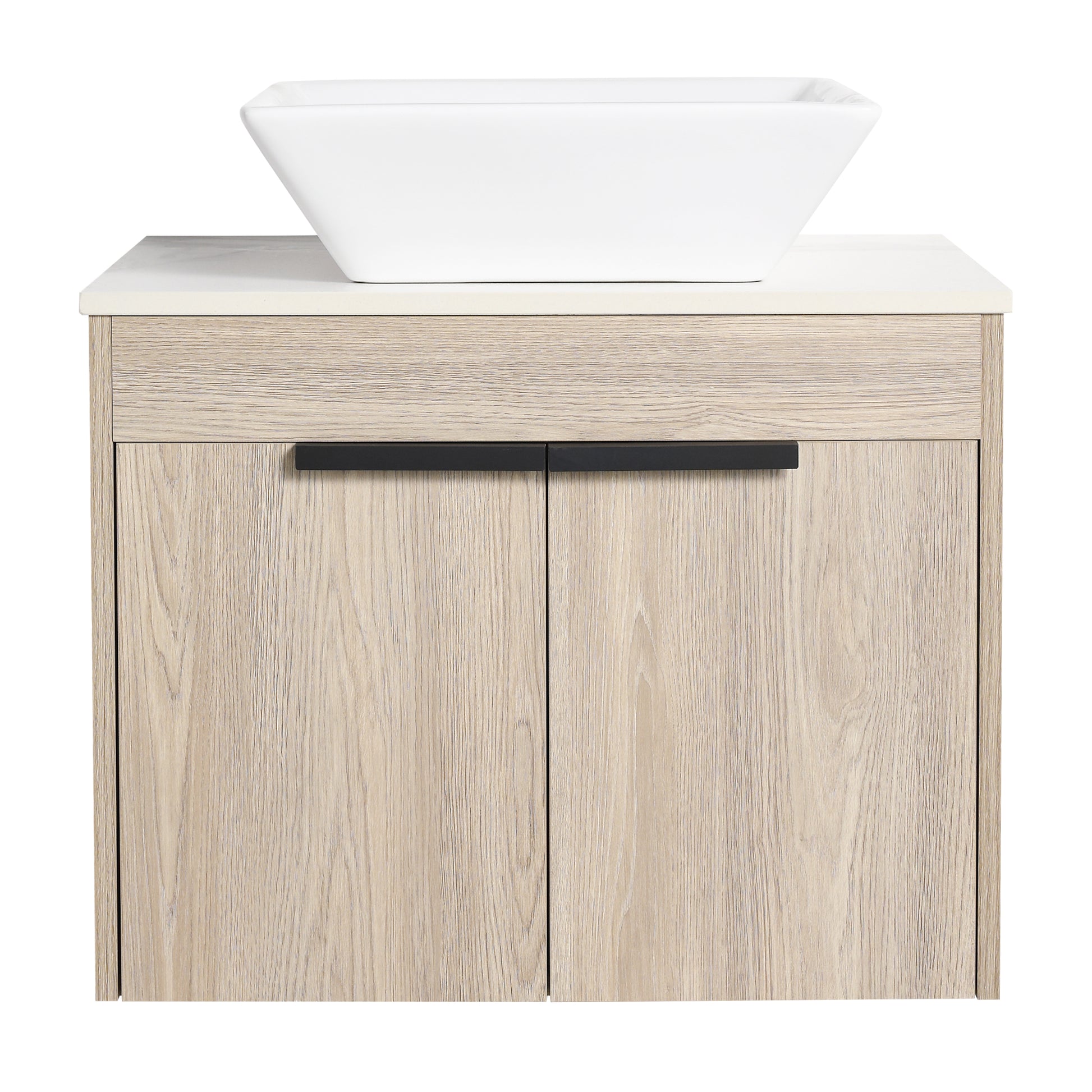 24 " Modern Design Float Bathroom Vanity With Ceramic Basin Set, Wall Mounted White Oak Vanity With Soft Close Door,Kd Packing,Kd Packing,2 Pieces Parcel Top Bab101Mowh White Oak Plywood