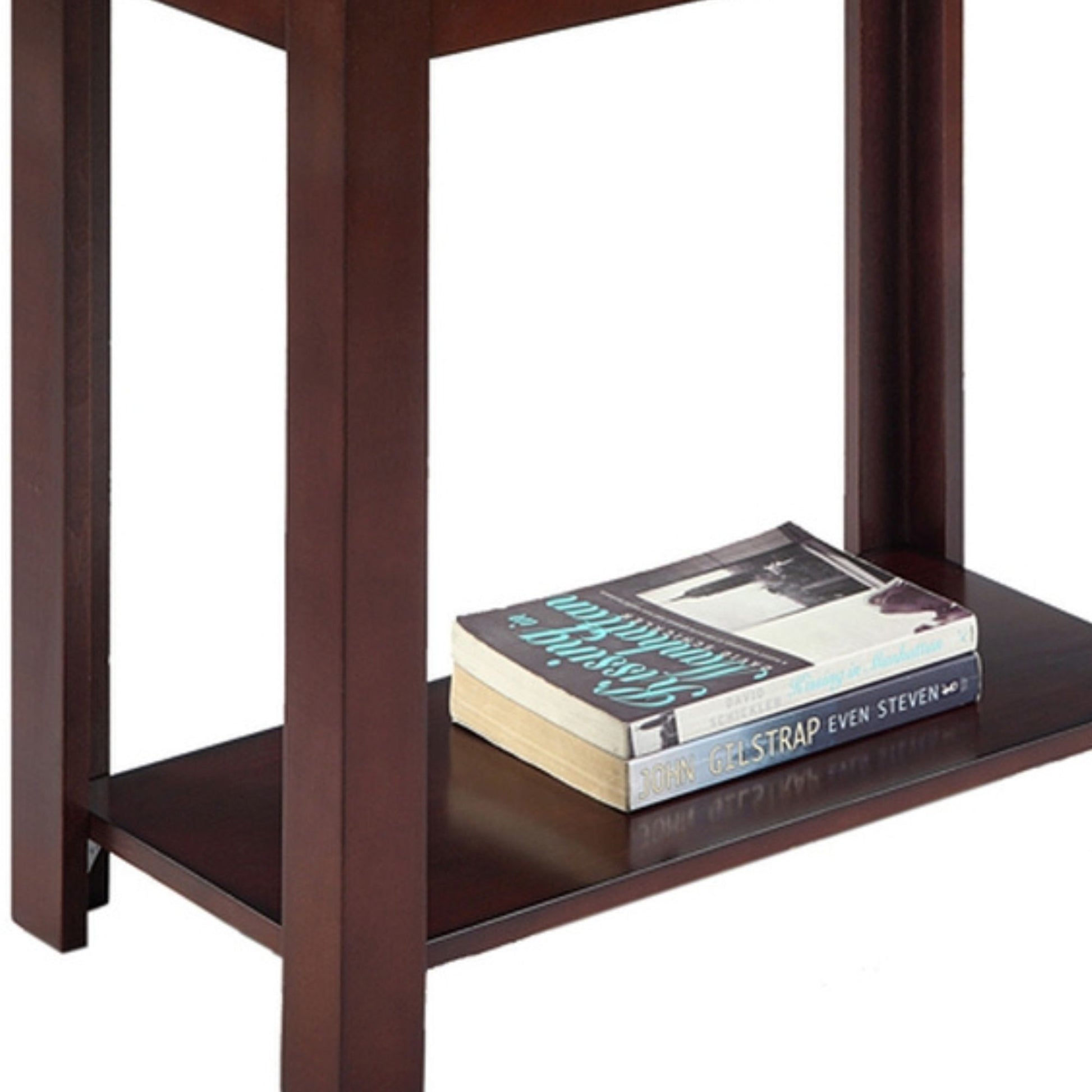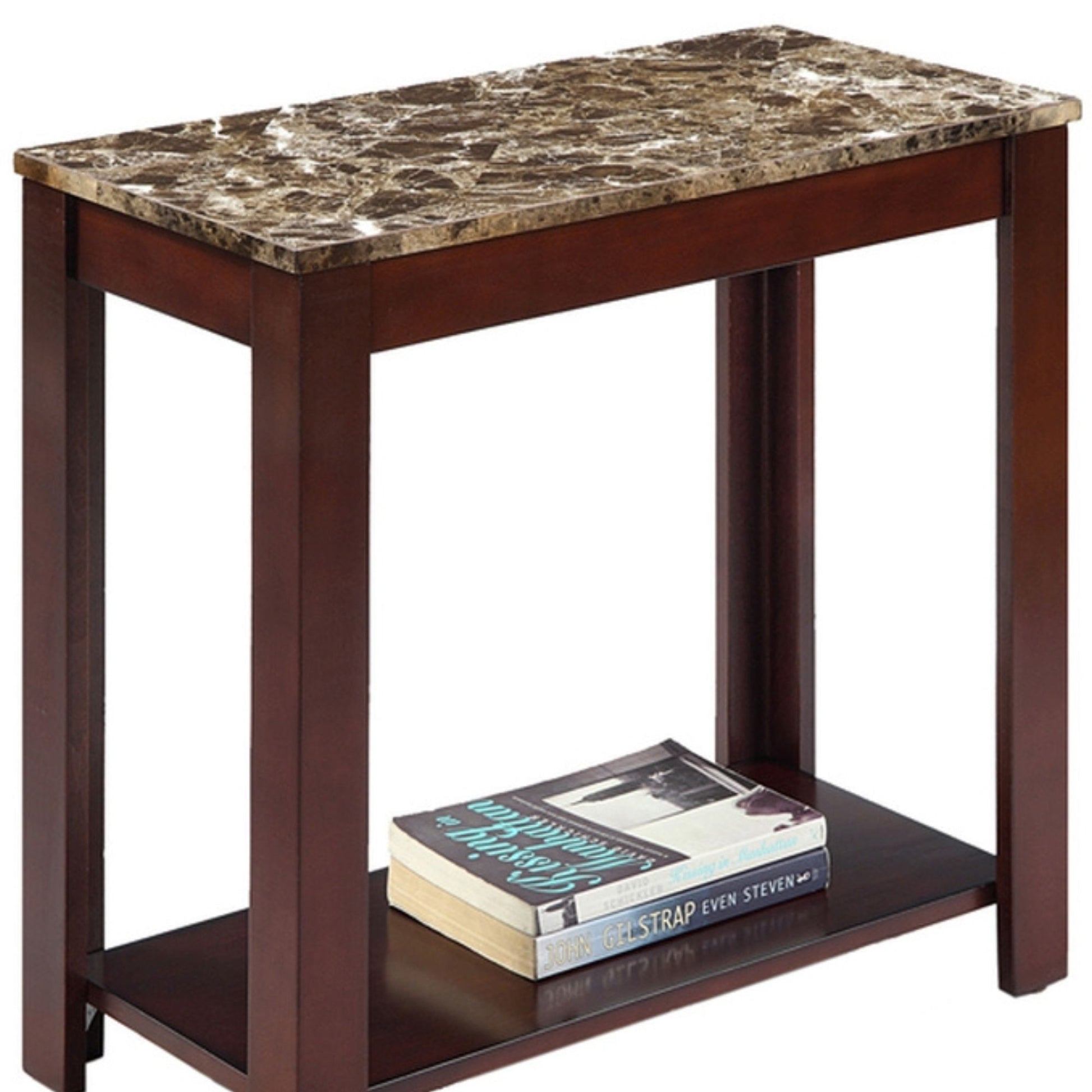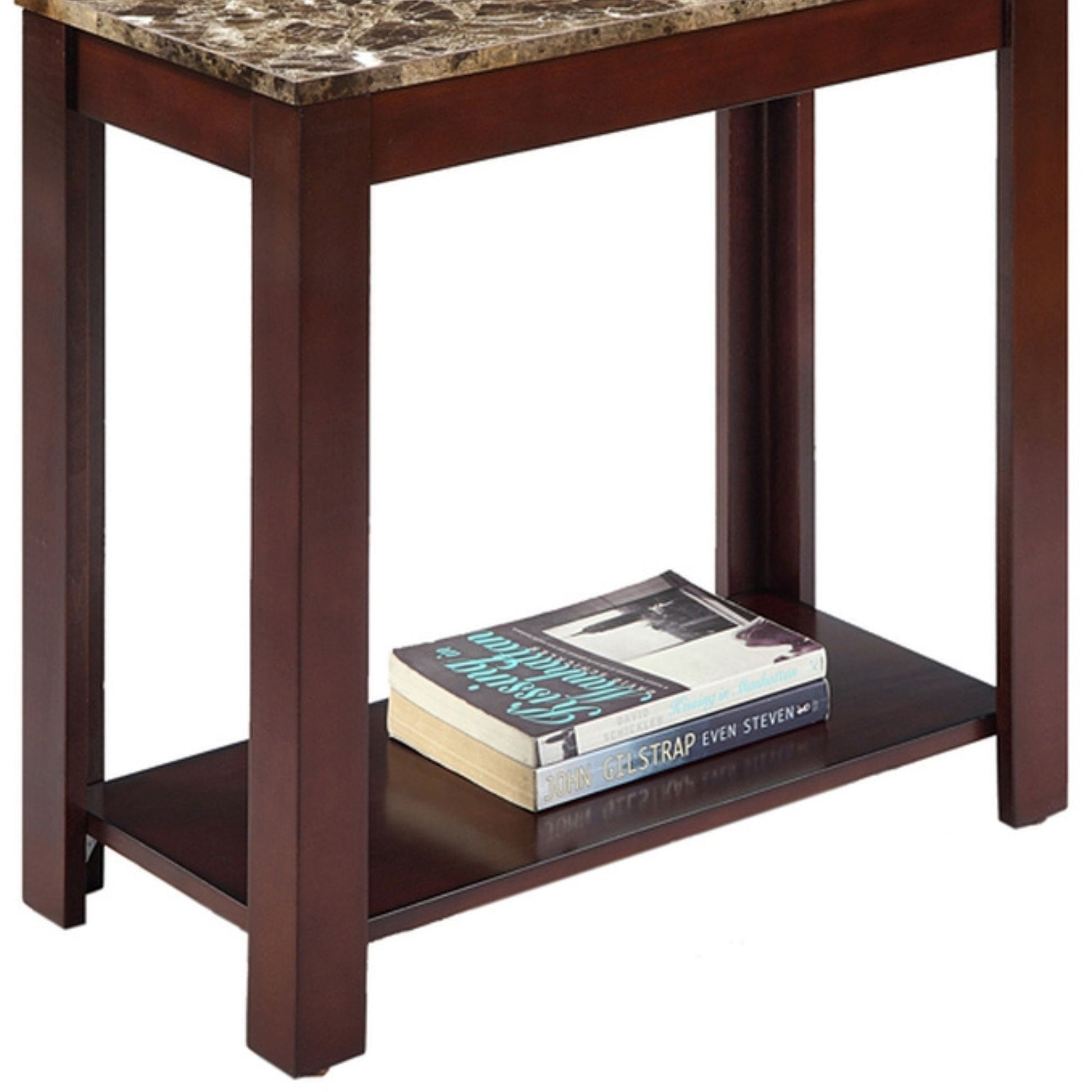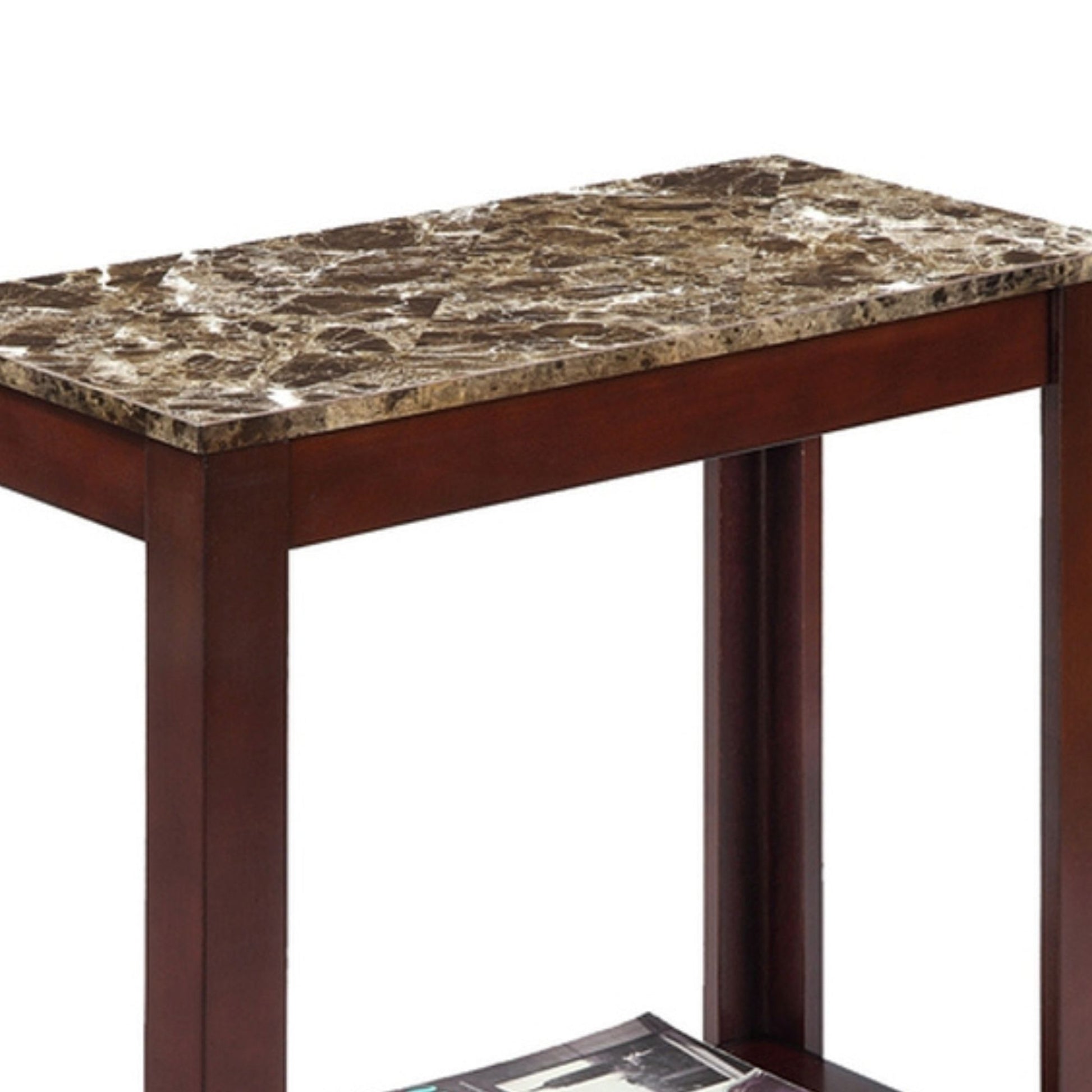 24" Tall Wooden End Table With Dark Cherry Finish And Marble Print Top Multicolor Wood