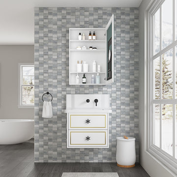 24'' W X 36'' H Bathroom Mirror Medicine Cabinet Wooden Door Medicine Cabinets For Bathroom, Wall Mounted Recessed Or Surface, Bathroom Mirror With Storage, Right Opening Door White Engineered Wood