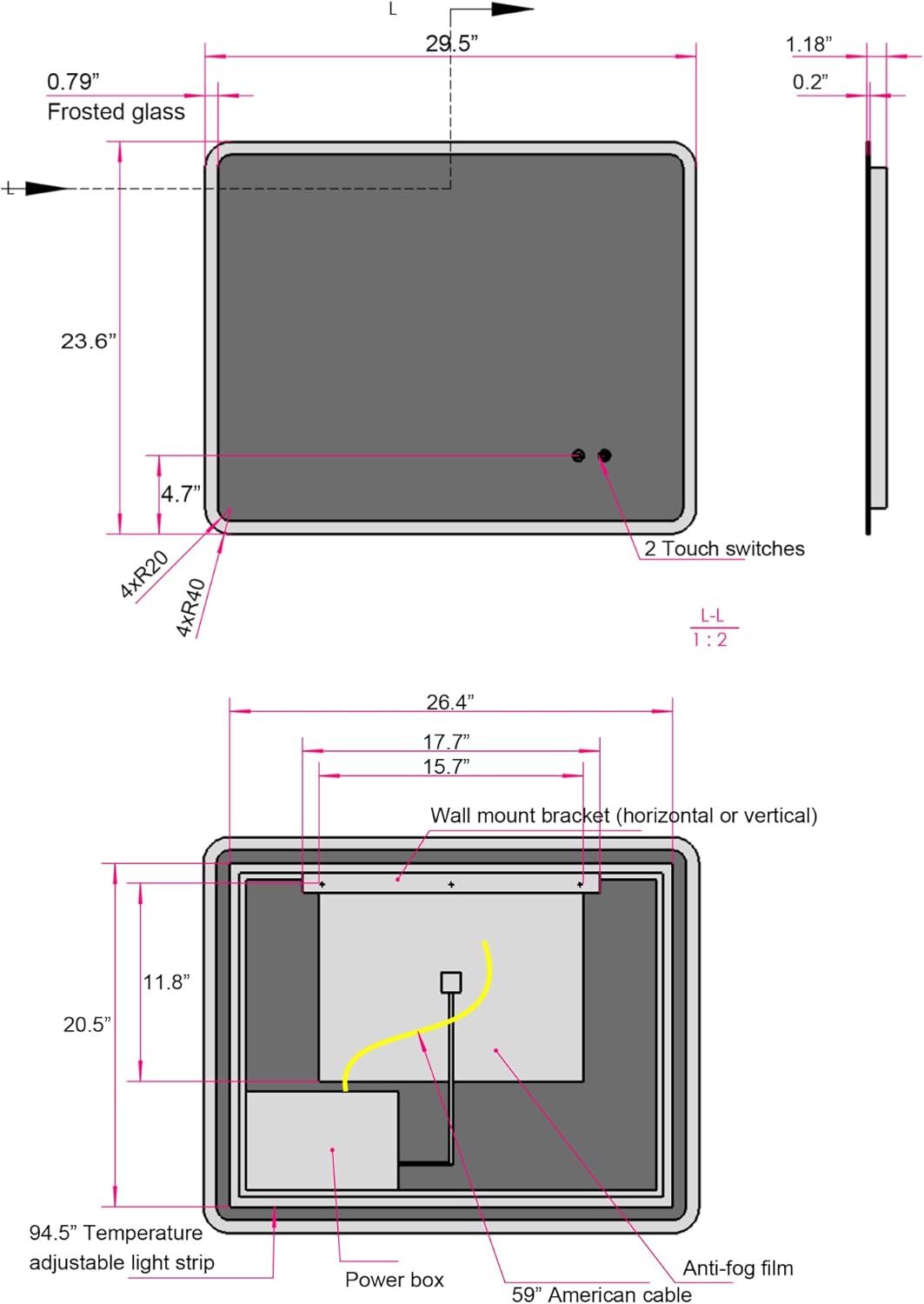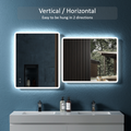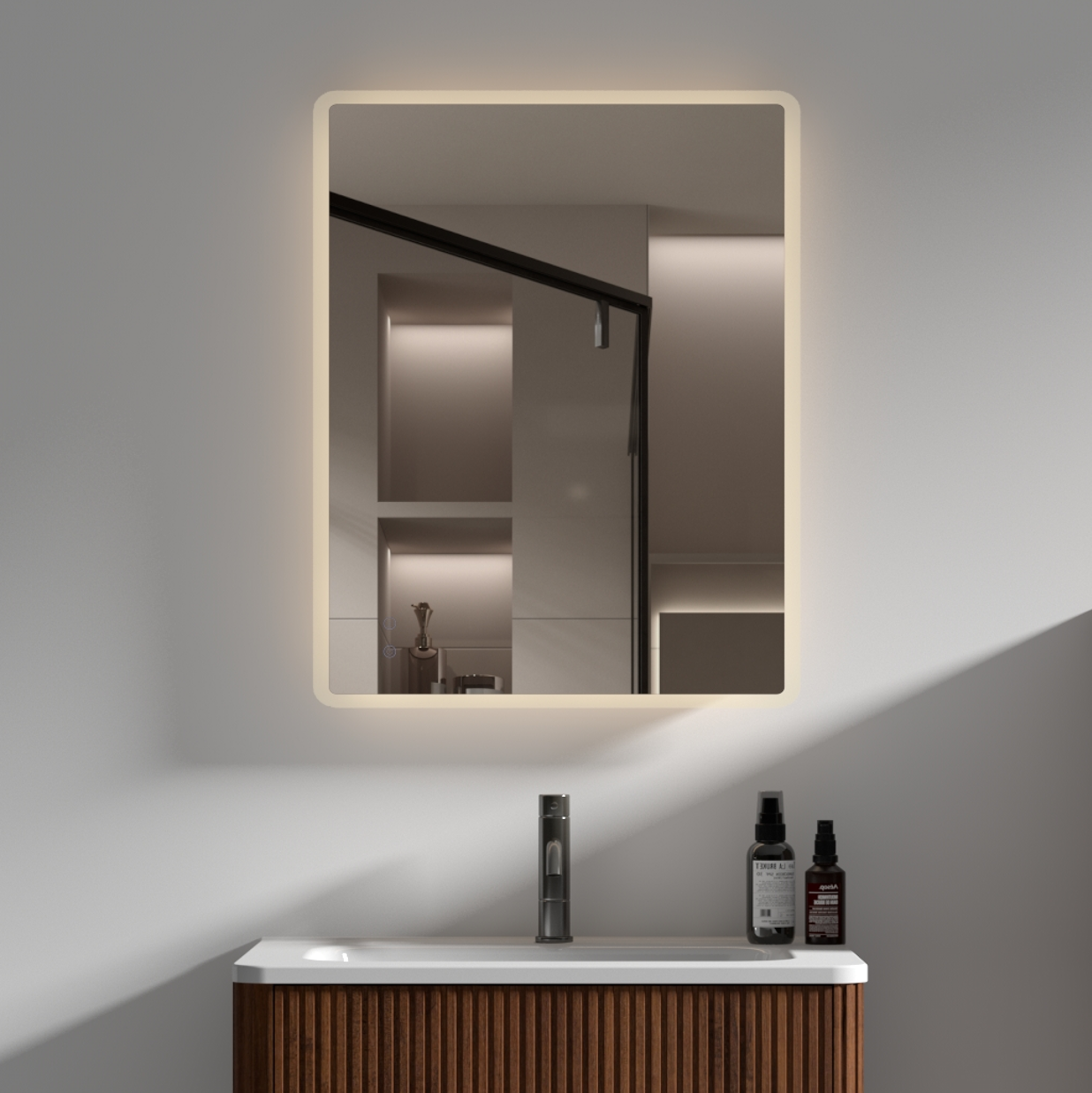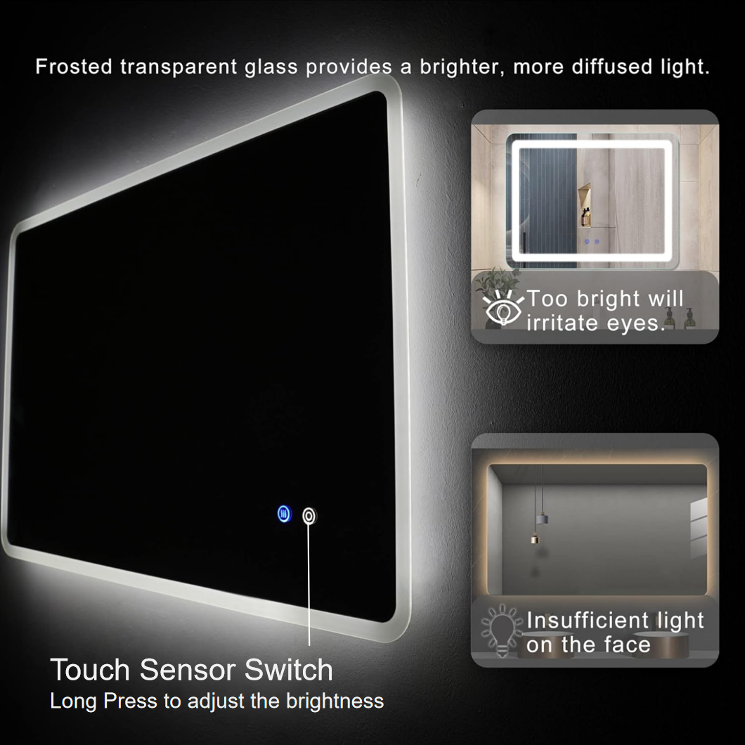 24" W X30 " H Modern Wall Mounted Led Backlit Anti Fog Rounded Rectangular Bathroom Mirror With Us Standard Plug, Temperature Adjustable And Memory Function Touch Switch White Glass