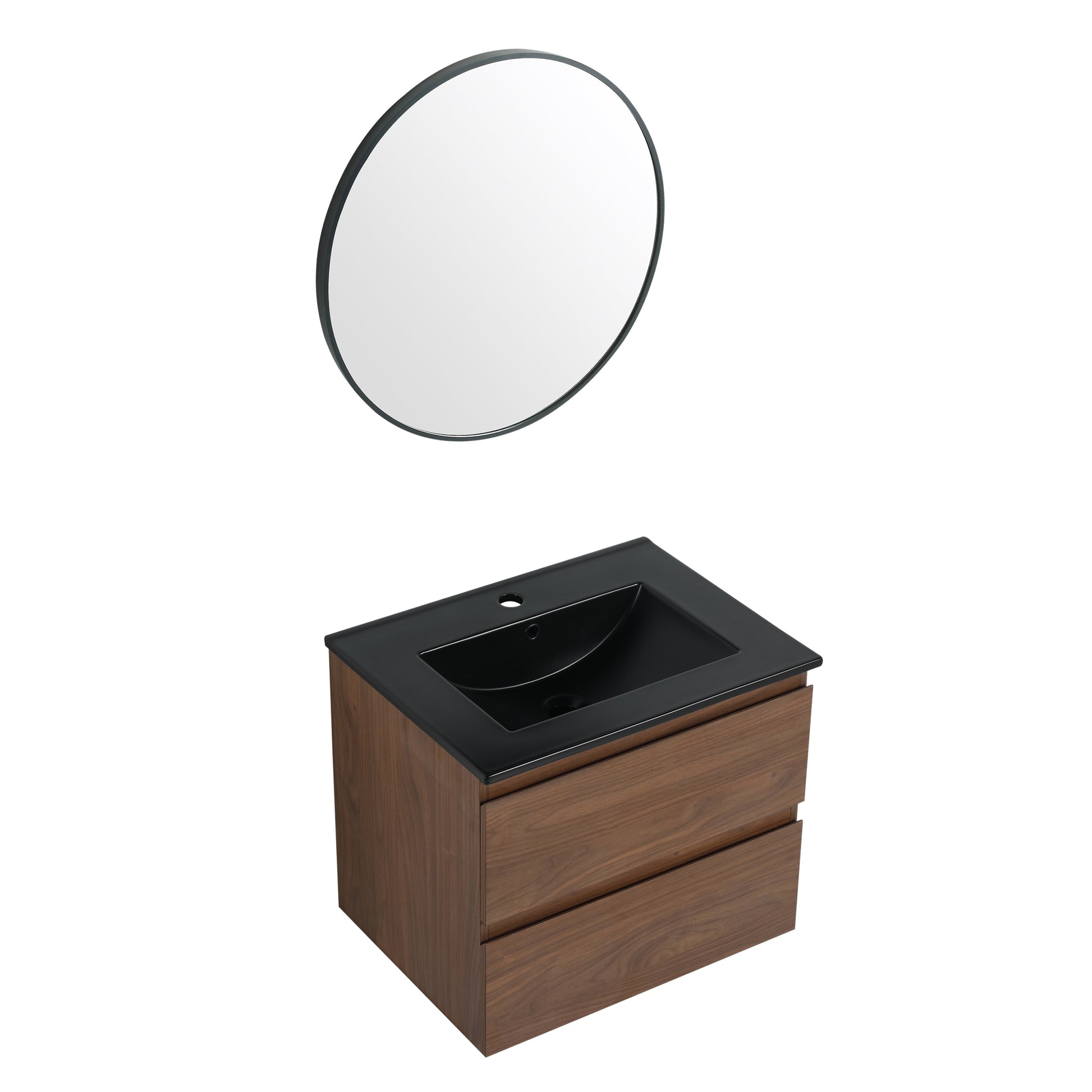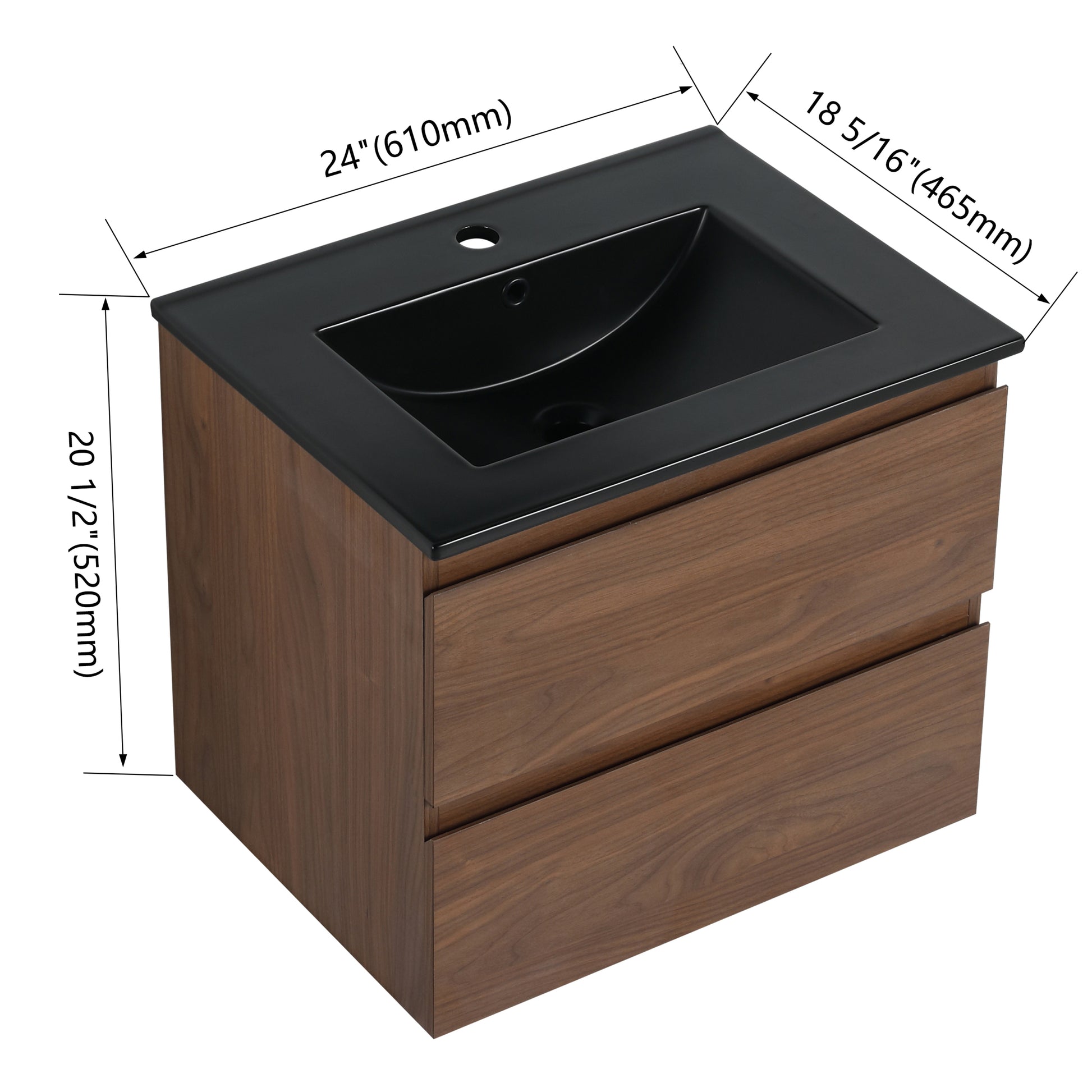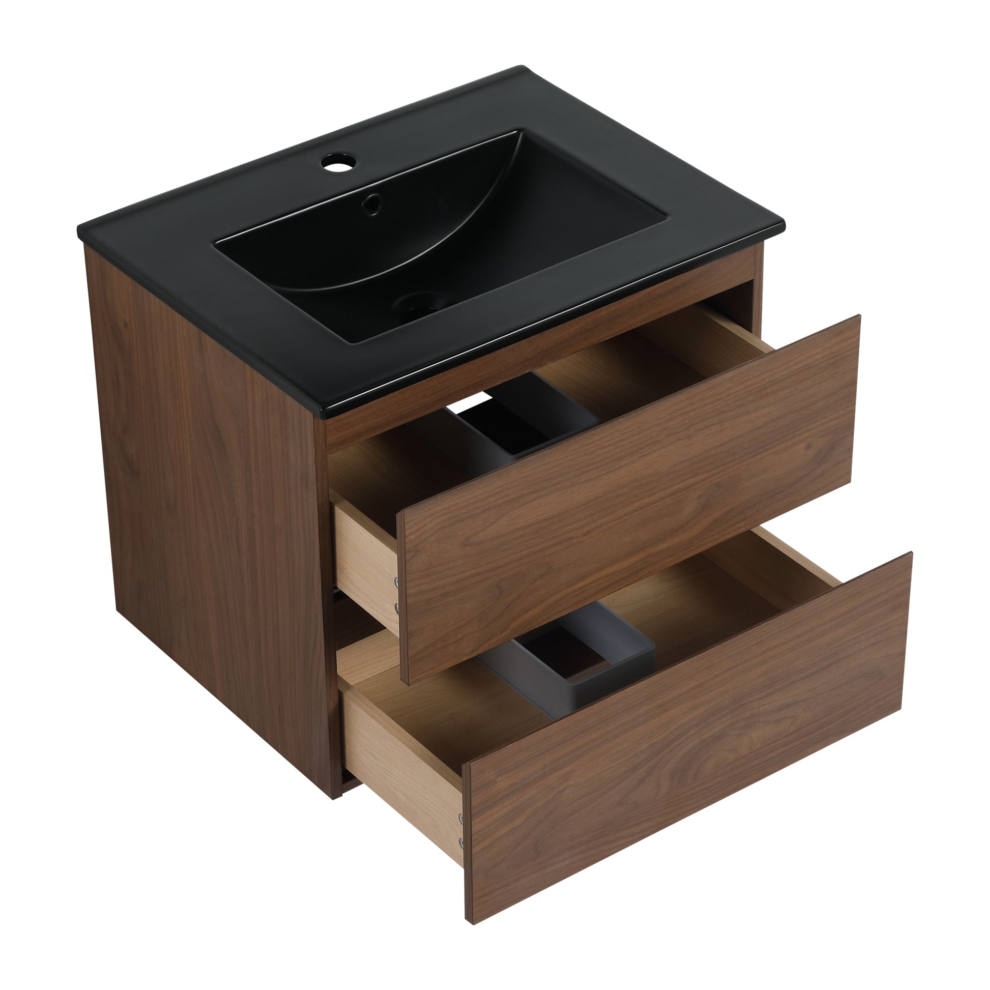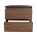 24" Wall Mounted Bathroom Vanity With Black Ceramic Sink, 2 Soft Close Drawers, Kd Package 2 Brown Oak Bathroom Wall Mounted Modern Plywood